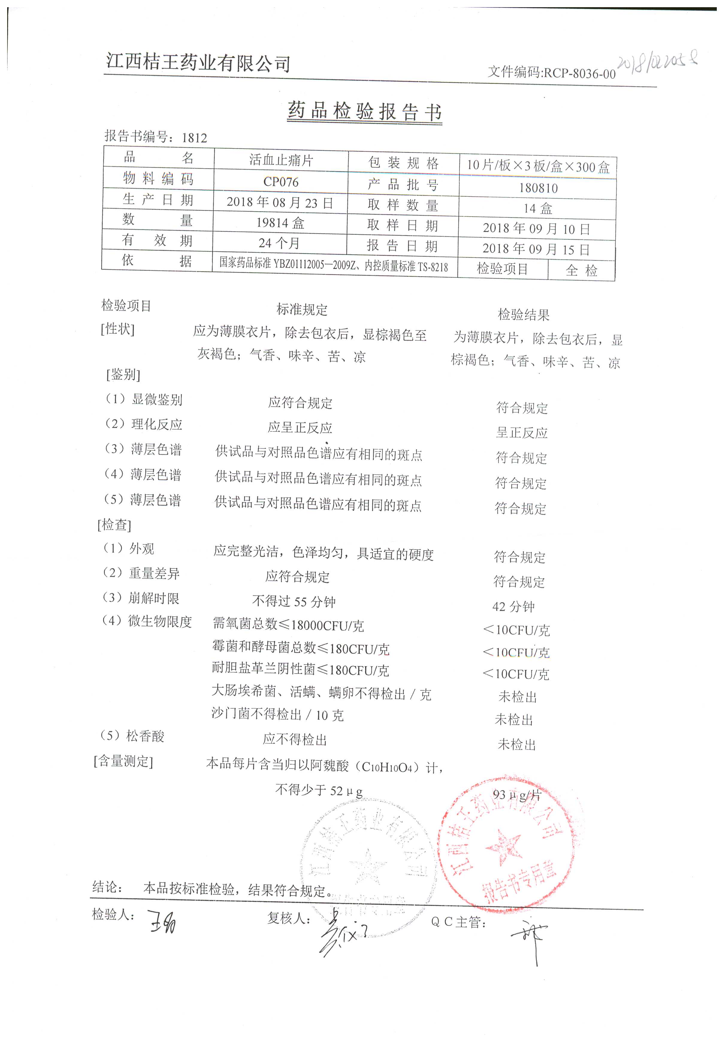 | 活血止痛片 | 10s*3板 | 181208 | 查看詳情 |
