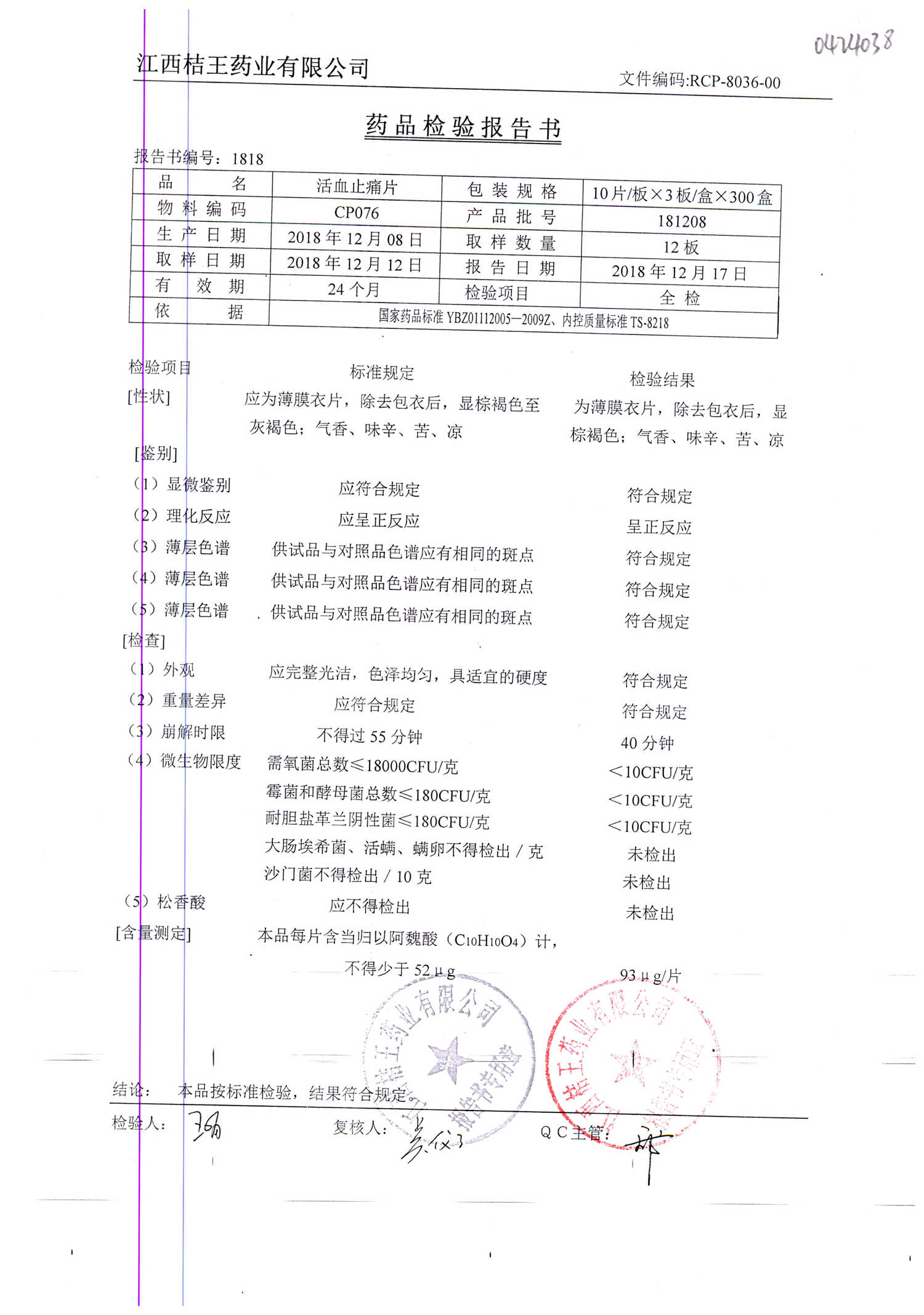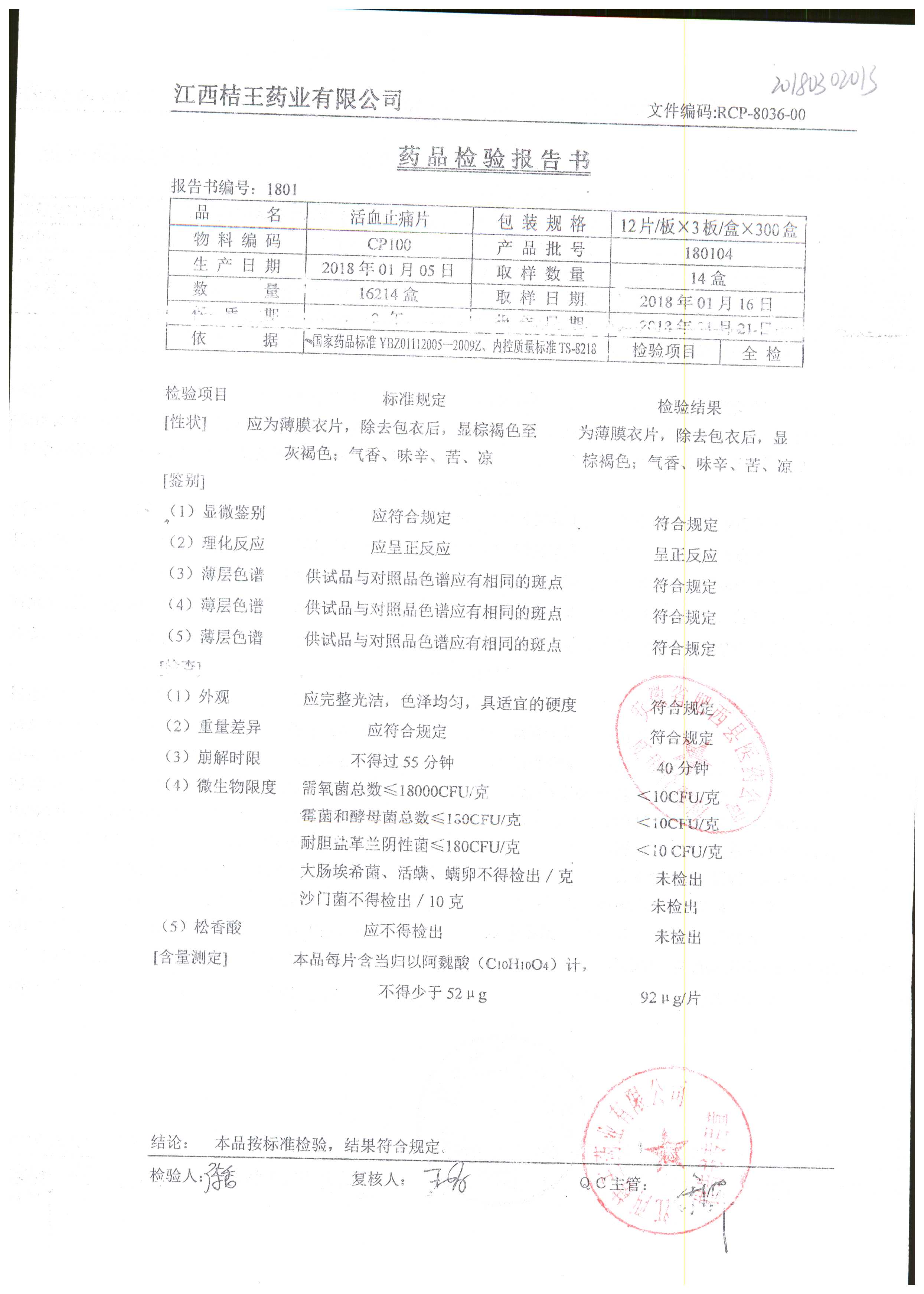 | 名稱 | 規(guī)格 | 批號 | 藥檢報告 |