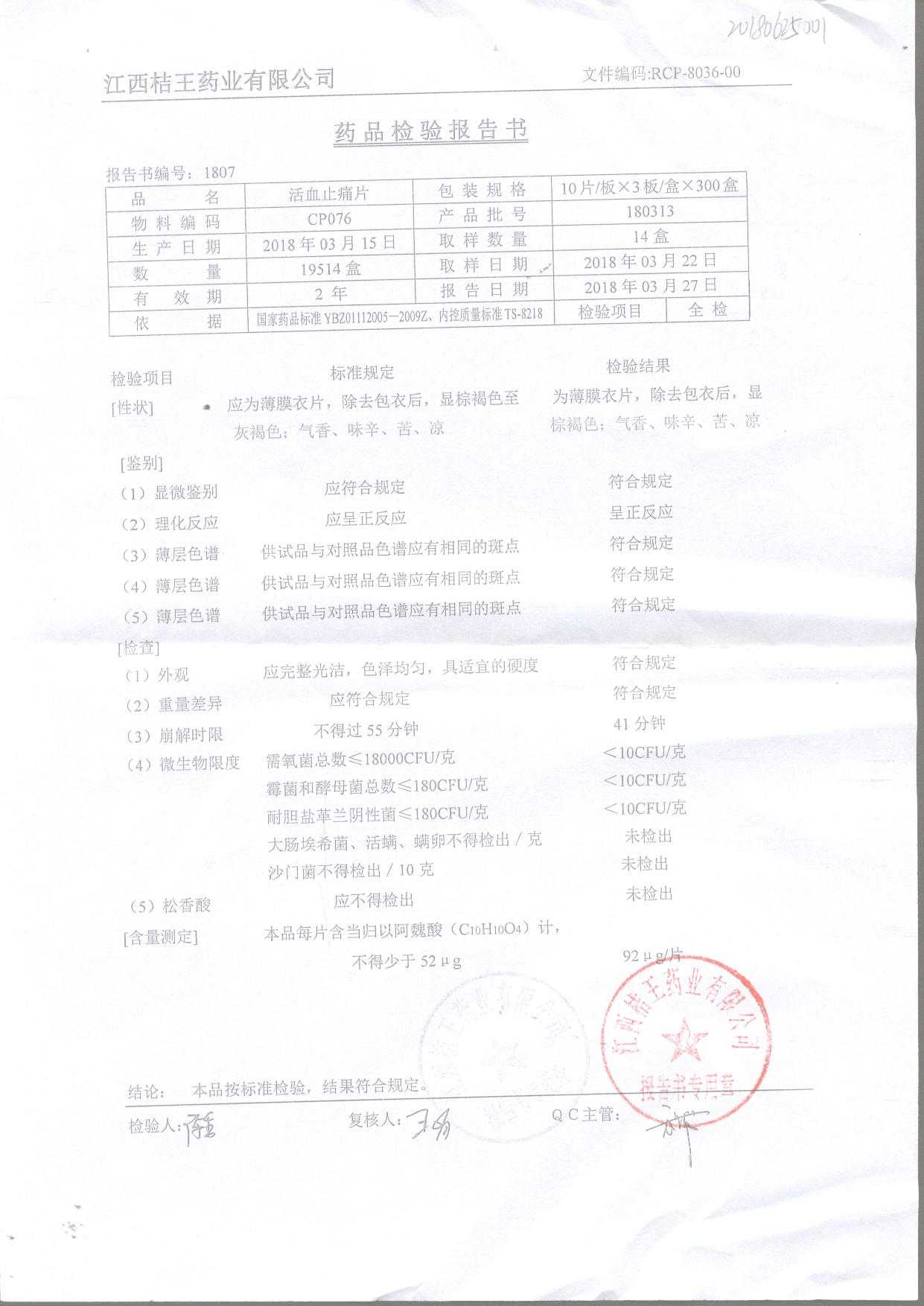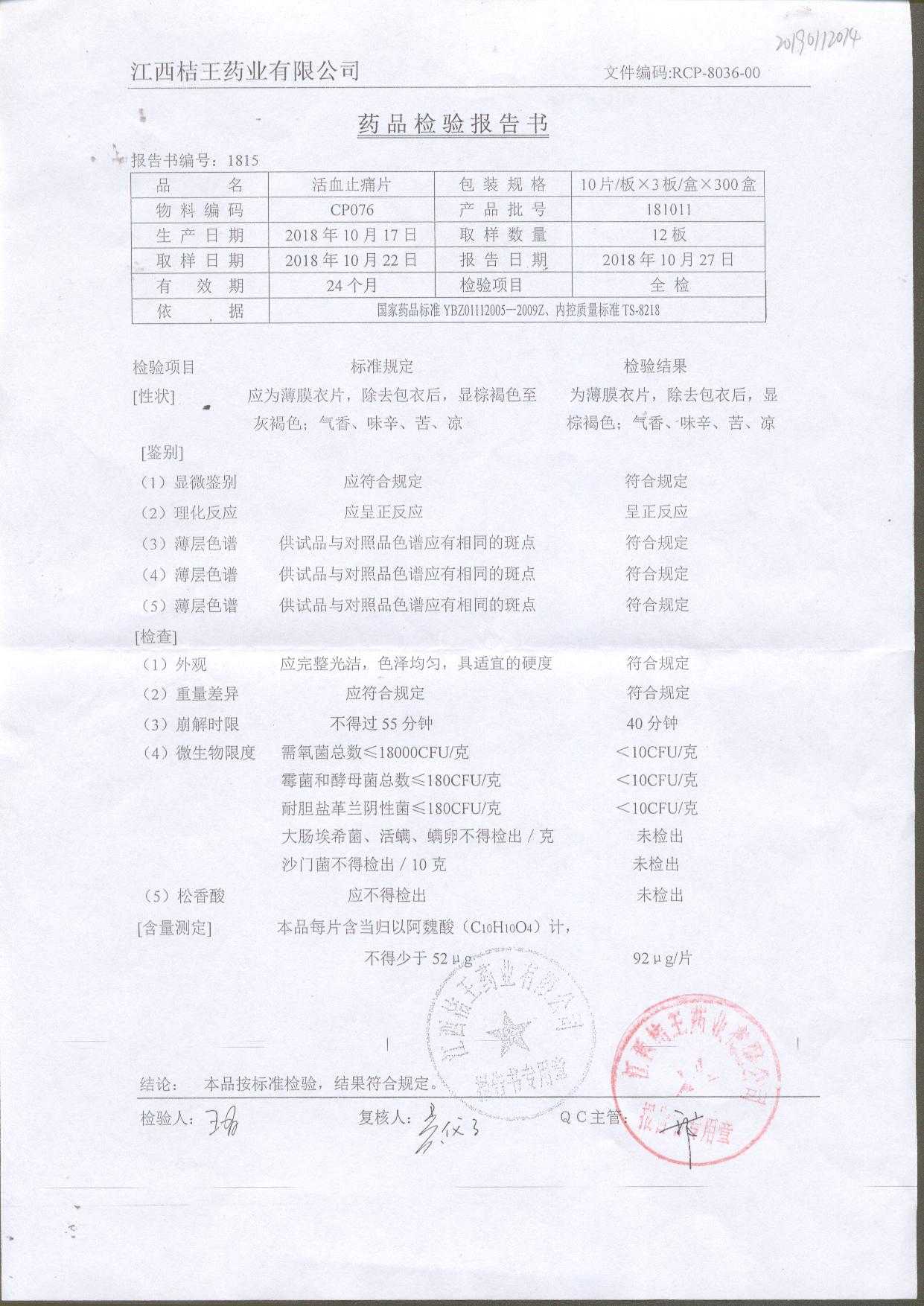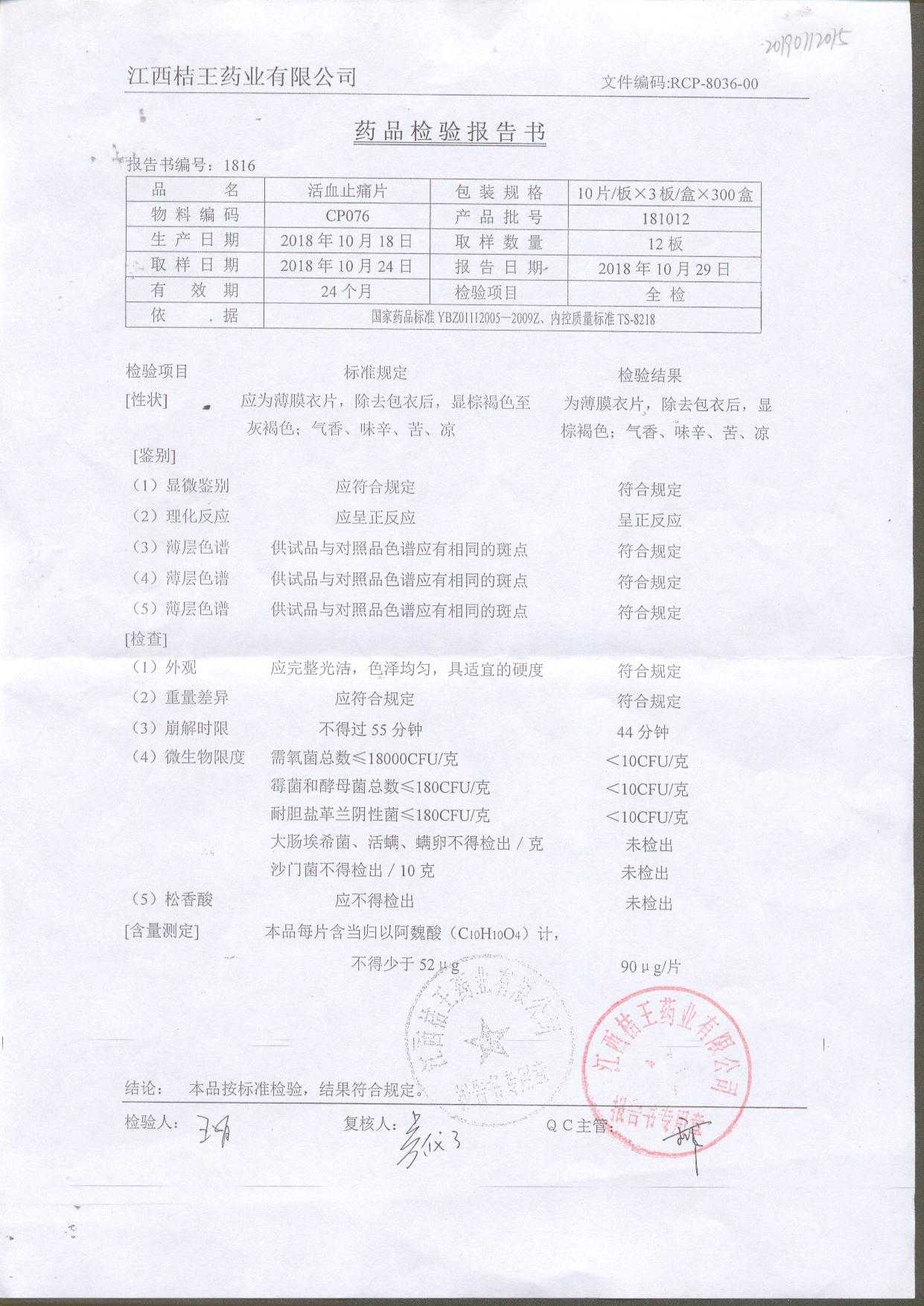 | 活血止痛片 | 10s*3板 | 191101 | 查看詳情 |