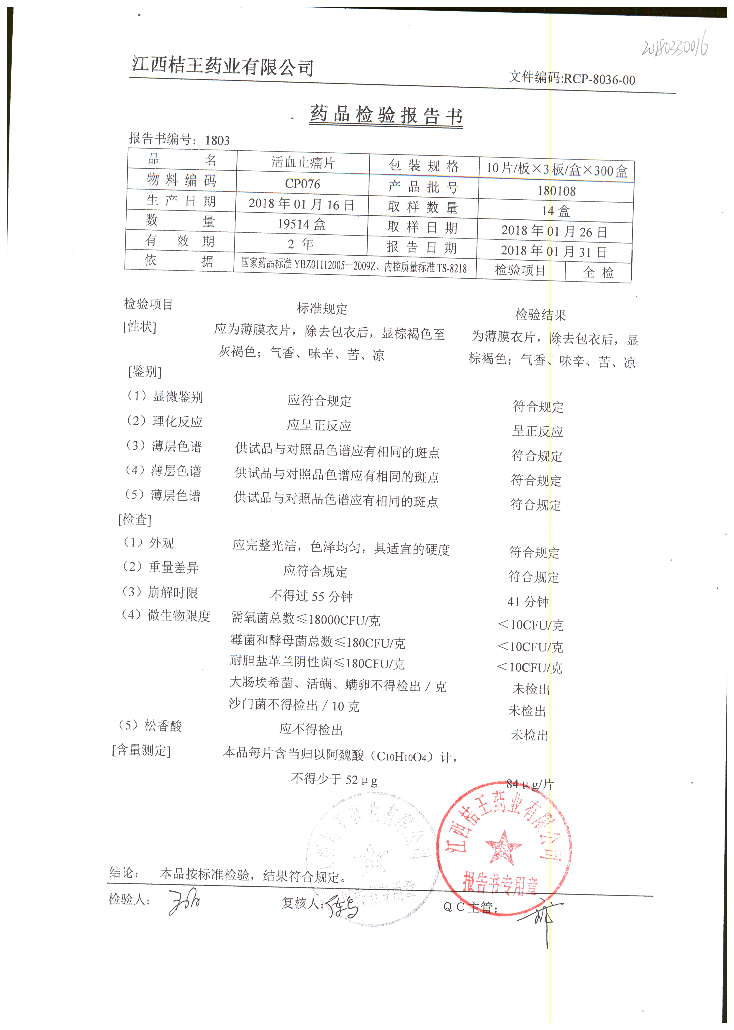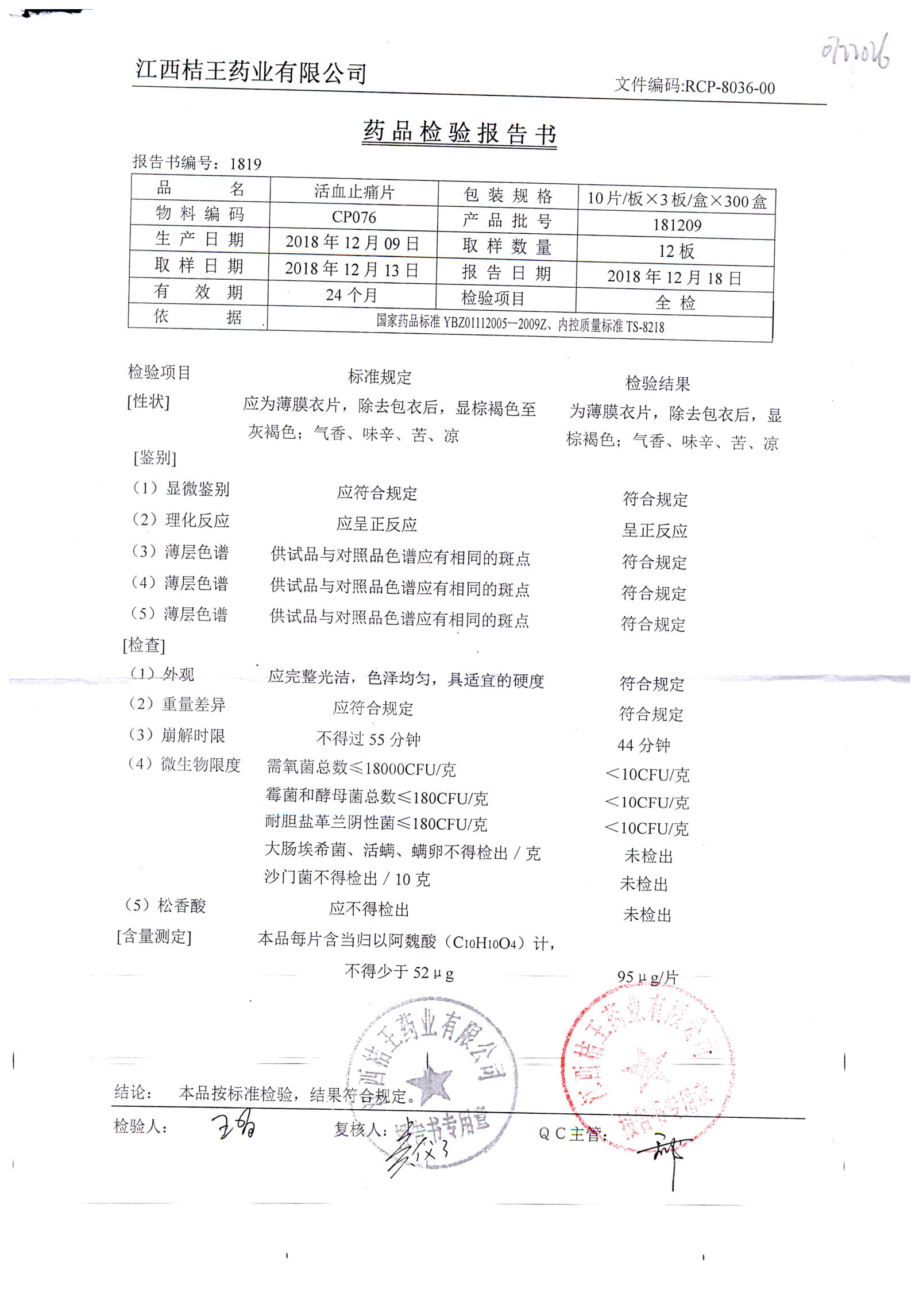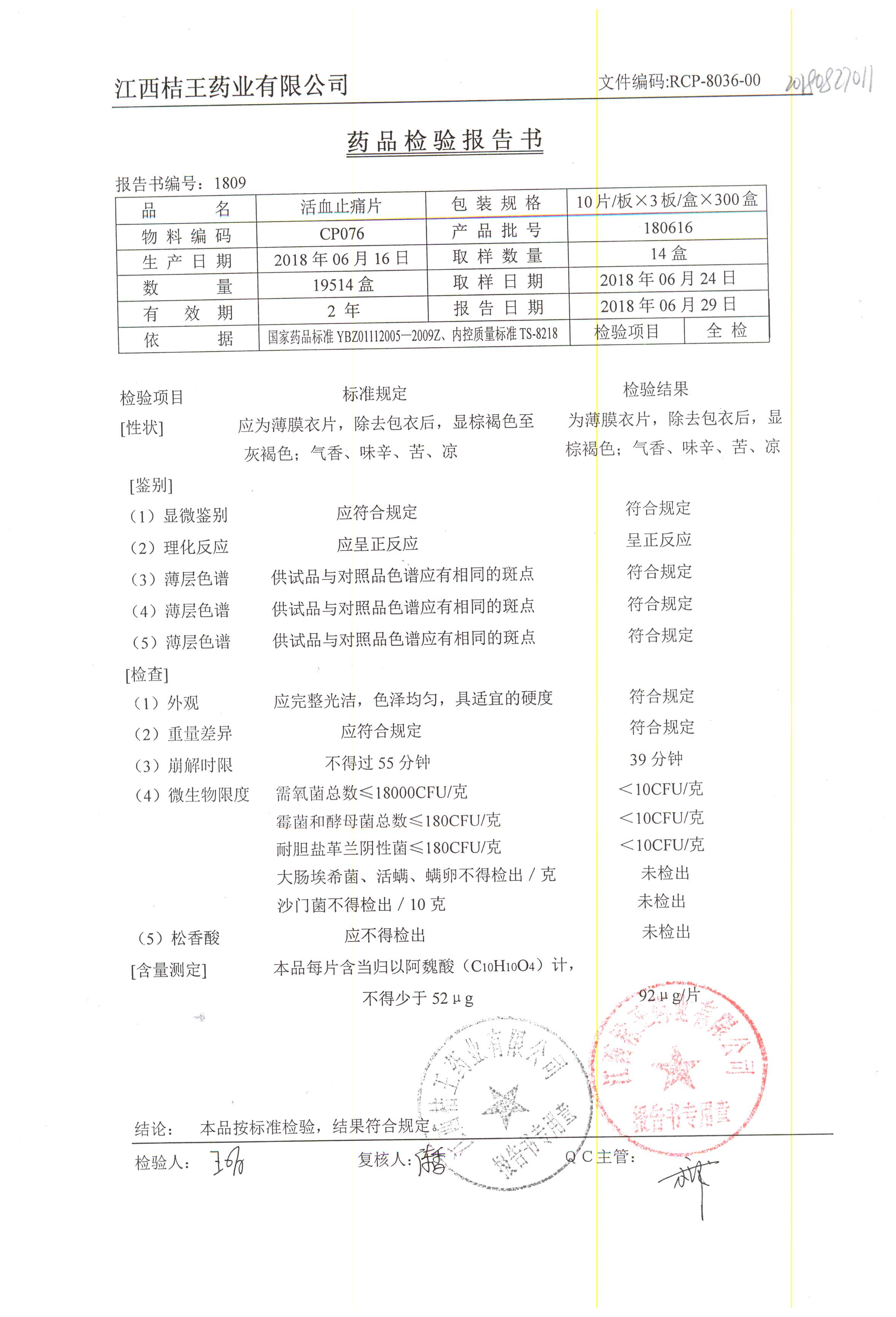 | 活血止痛片 | 10s*3板 | 191101 | 查看詳情 |