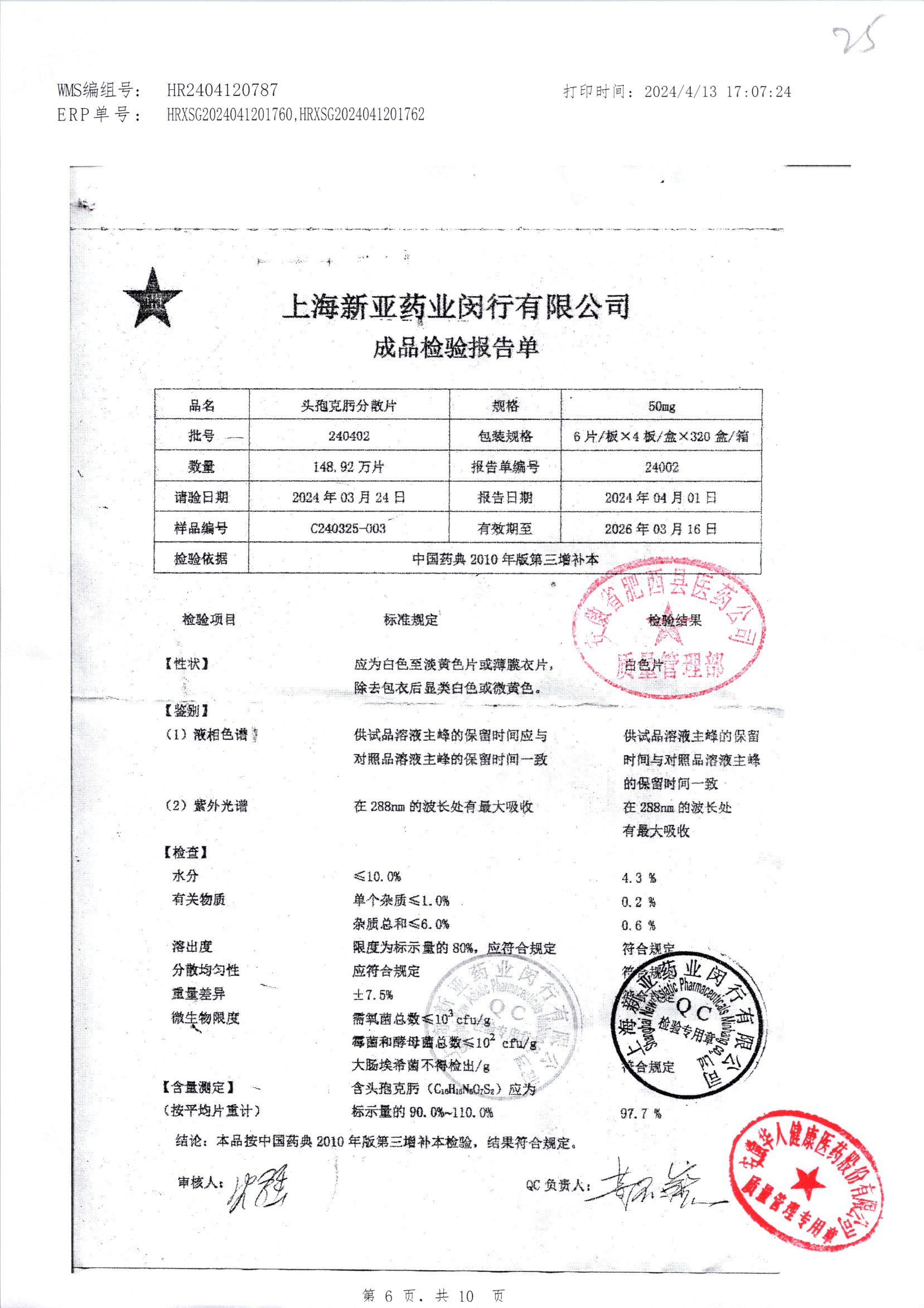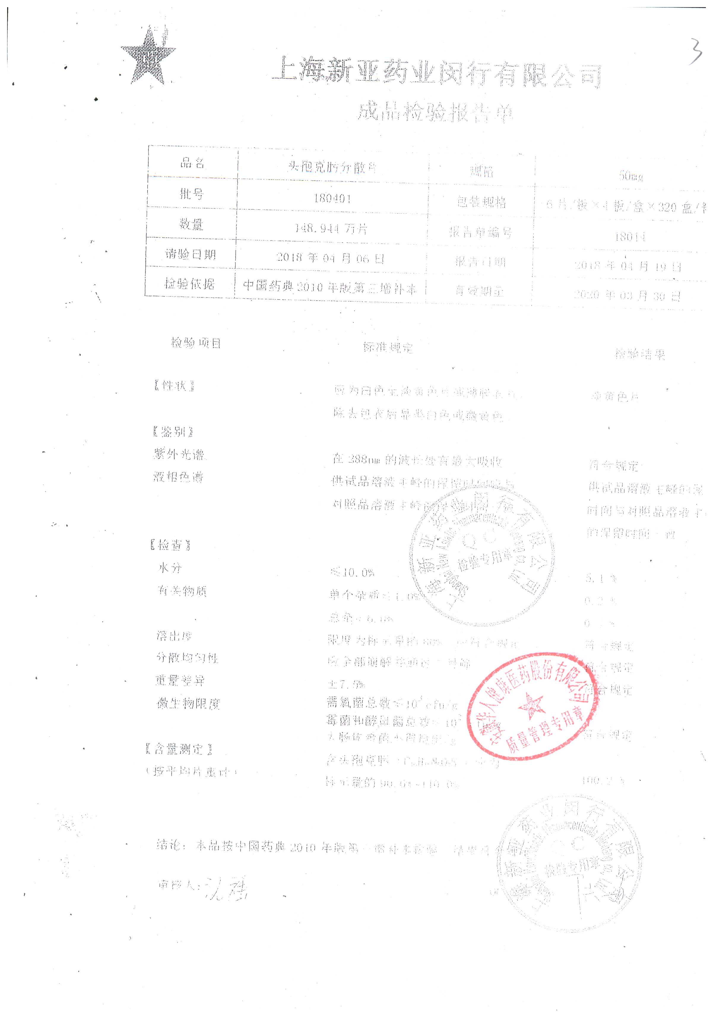 | 頭孢克肟分散片 | 50mg*24s | 180401 | 查看詳情 |