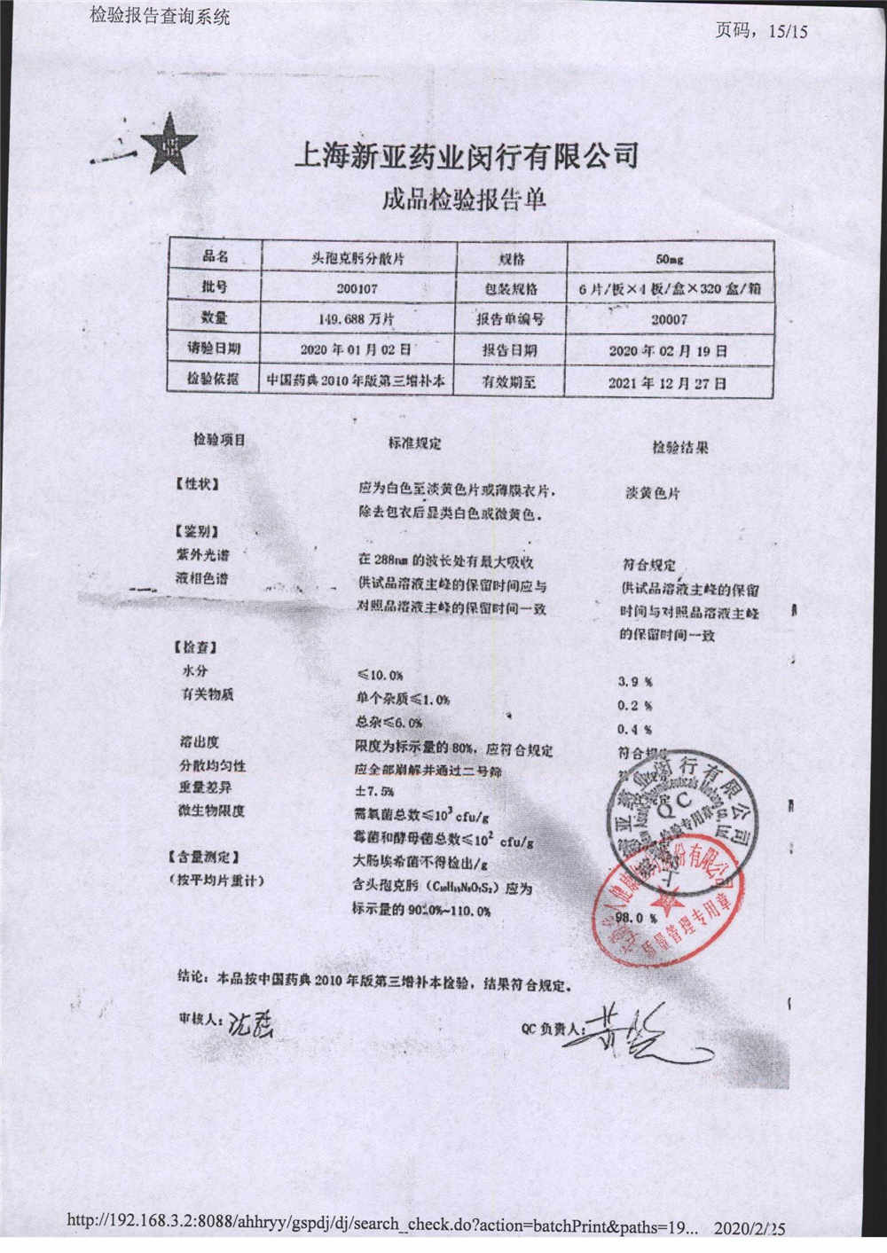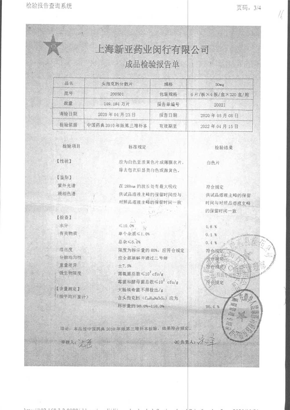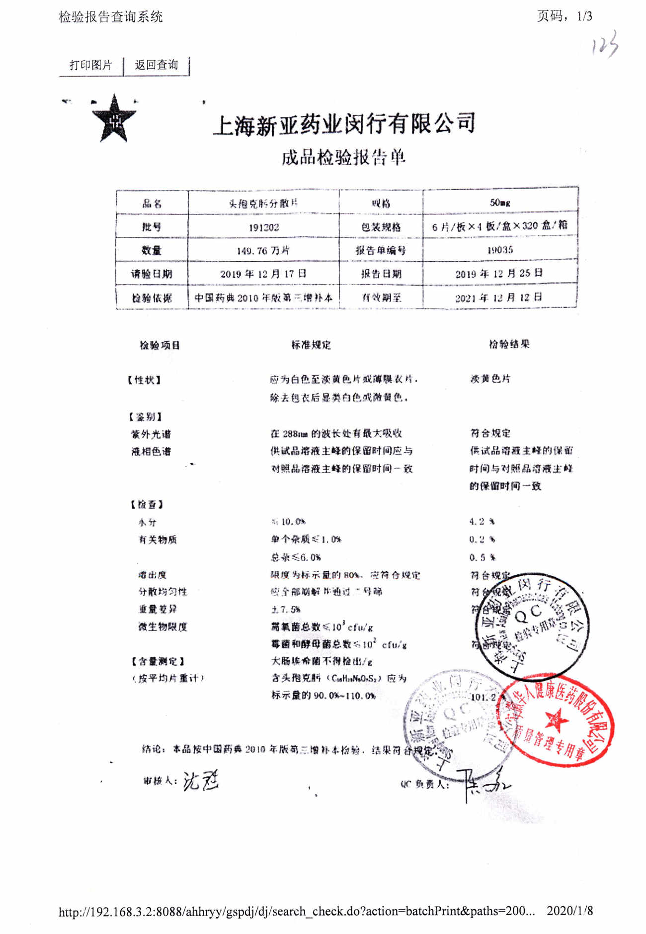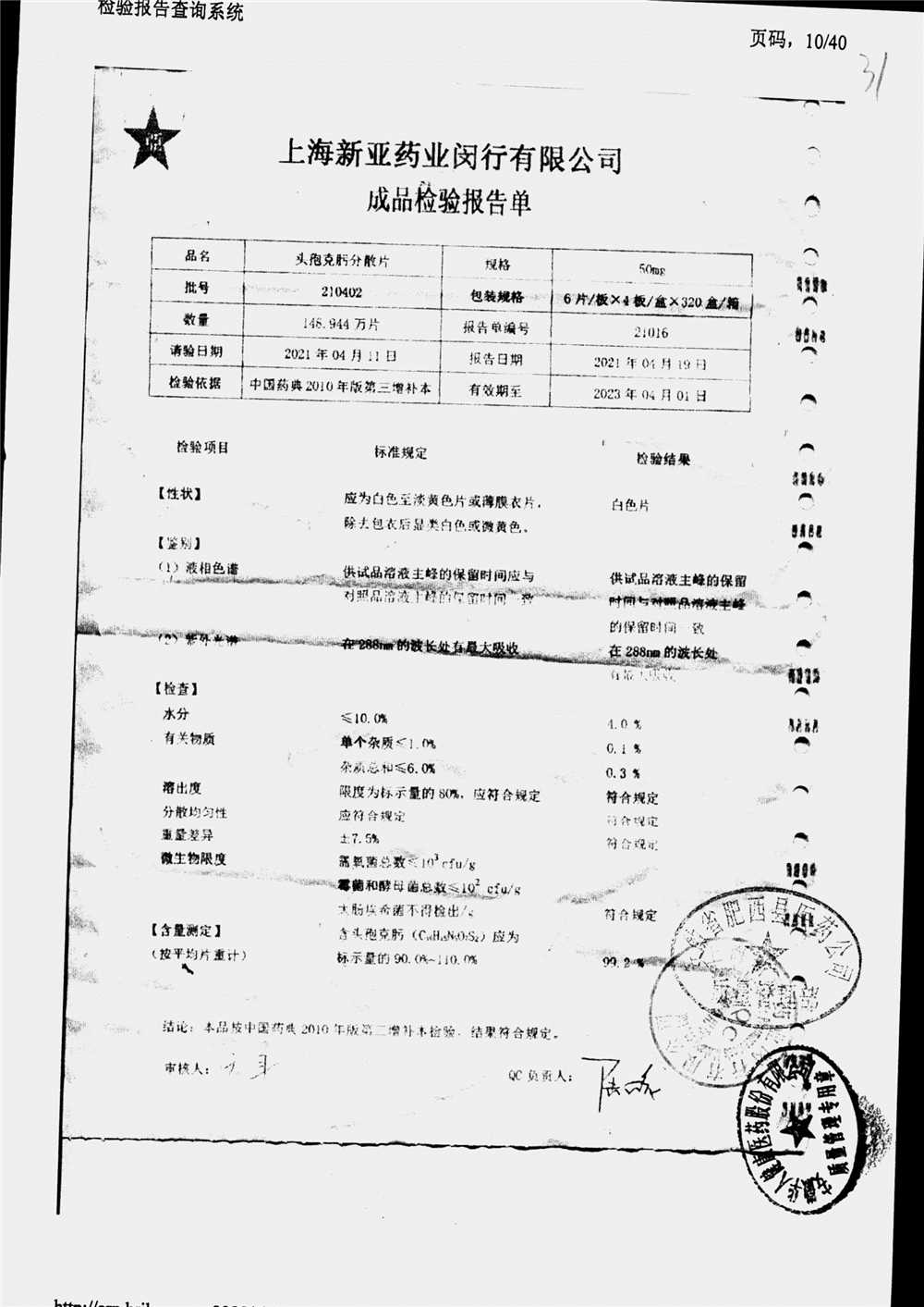 | 頭孢克肟分散片 | 50mg*24s | 210303 | 查看詳情 |