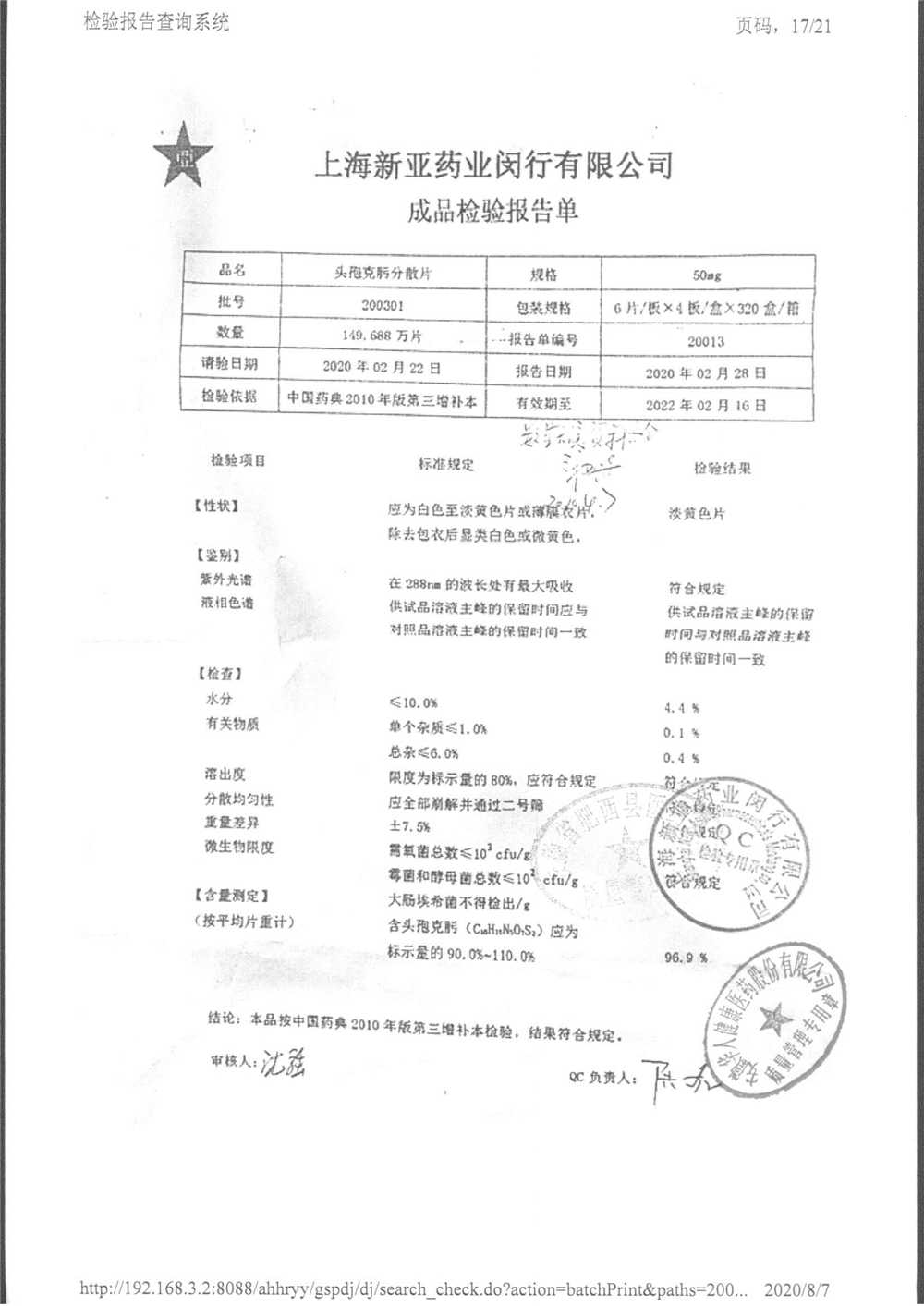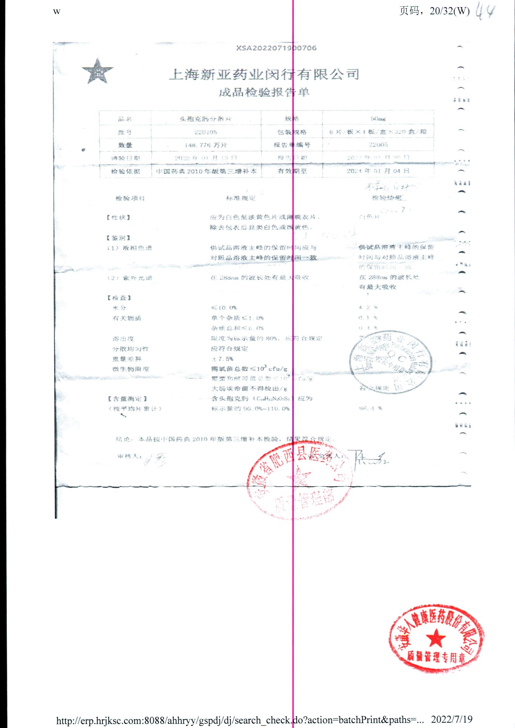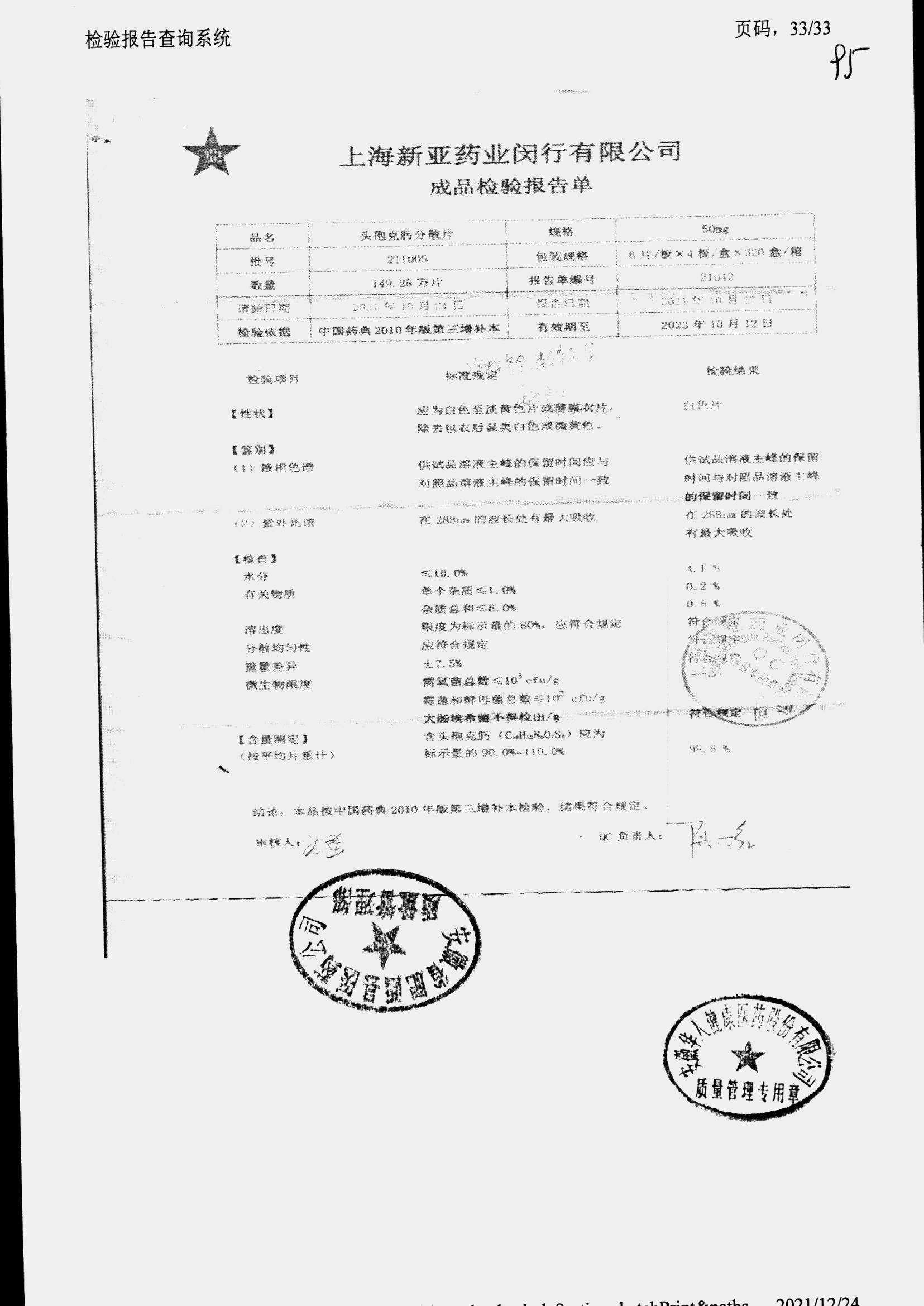 | 頭孢克肟分散片 | 50mg*24s | 210801 | 查看詳情 |