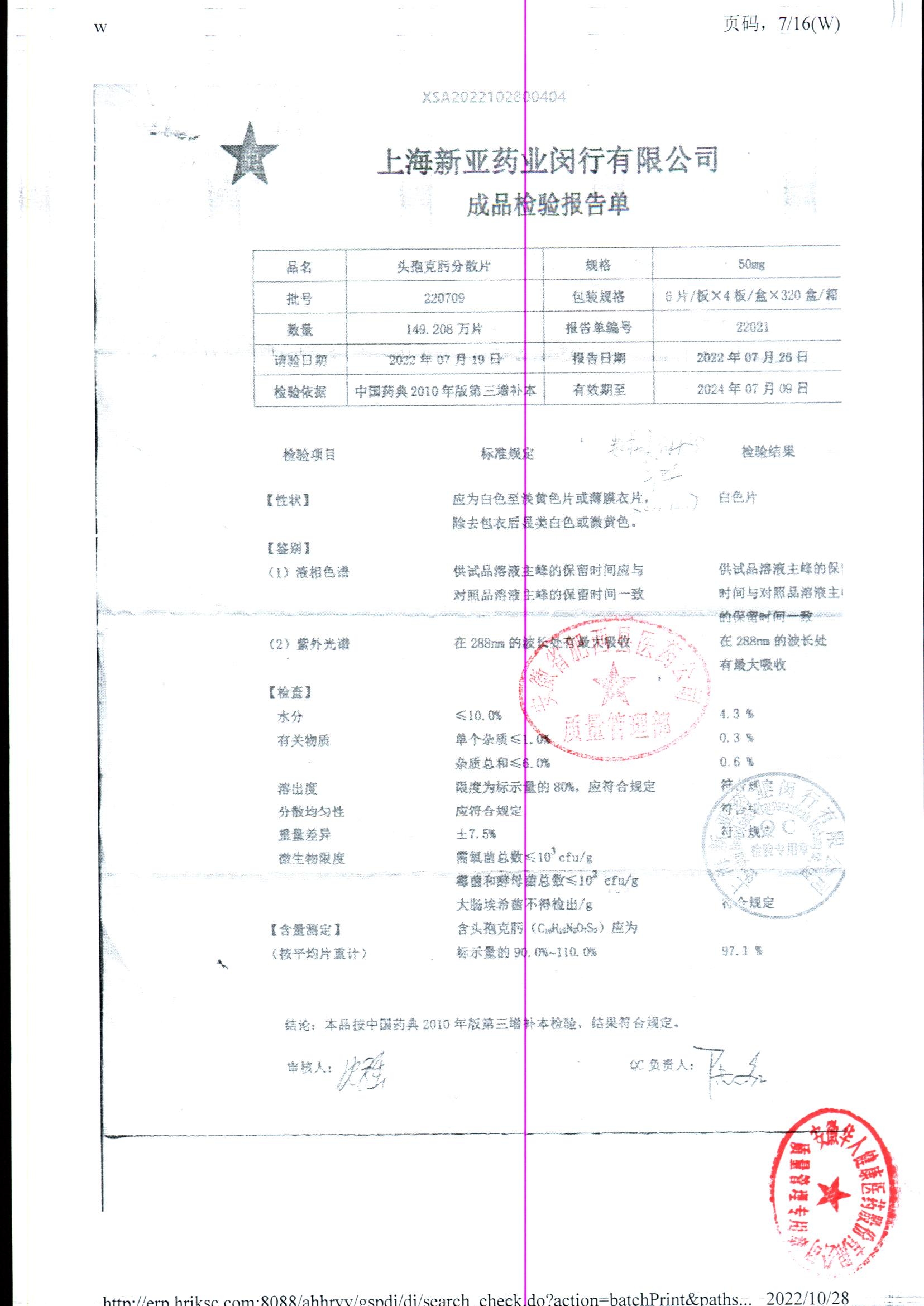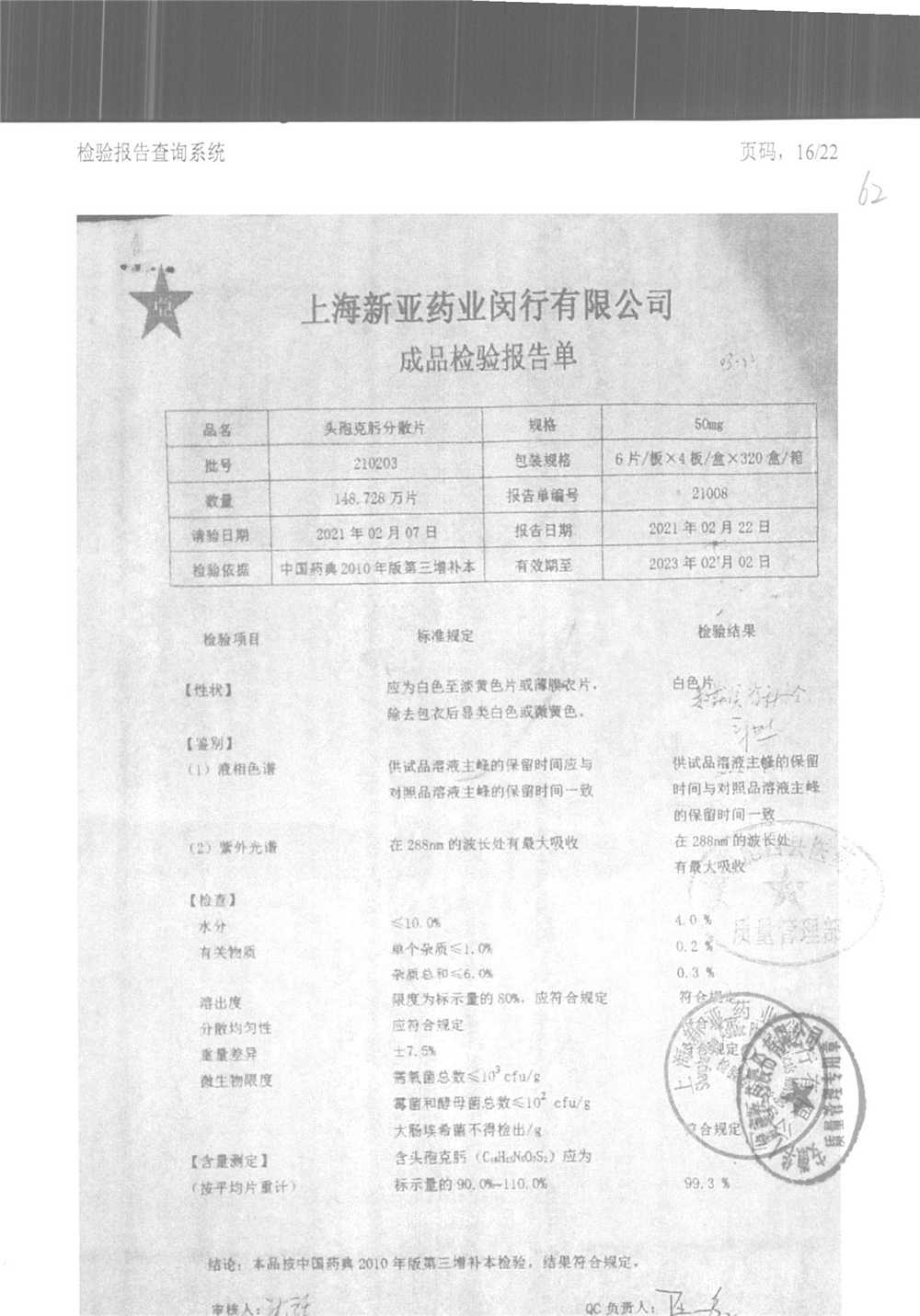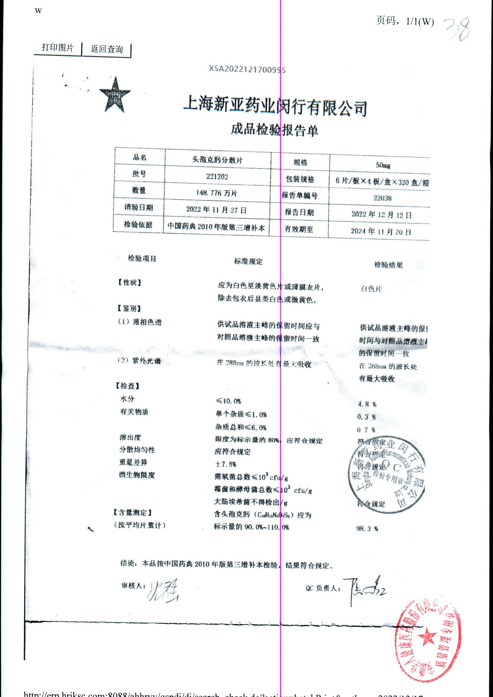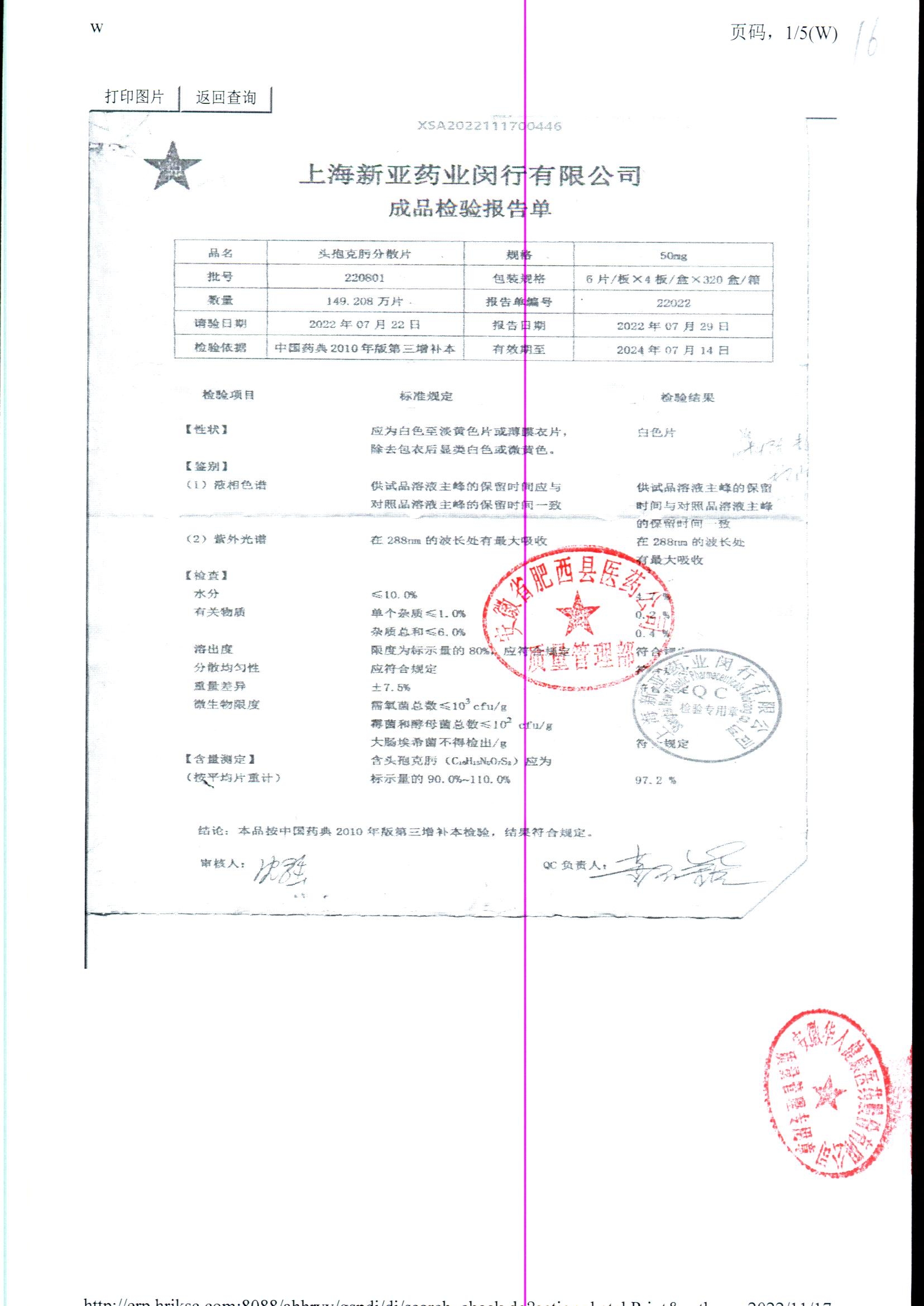 | 頭孢克肟分散片 | 50mg*24s | 220301 | 查看詳情 |