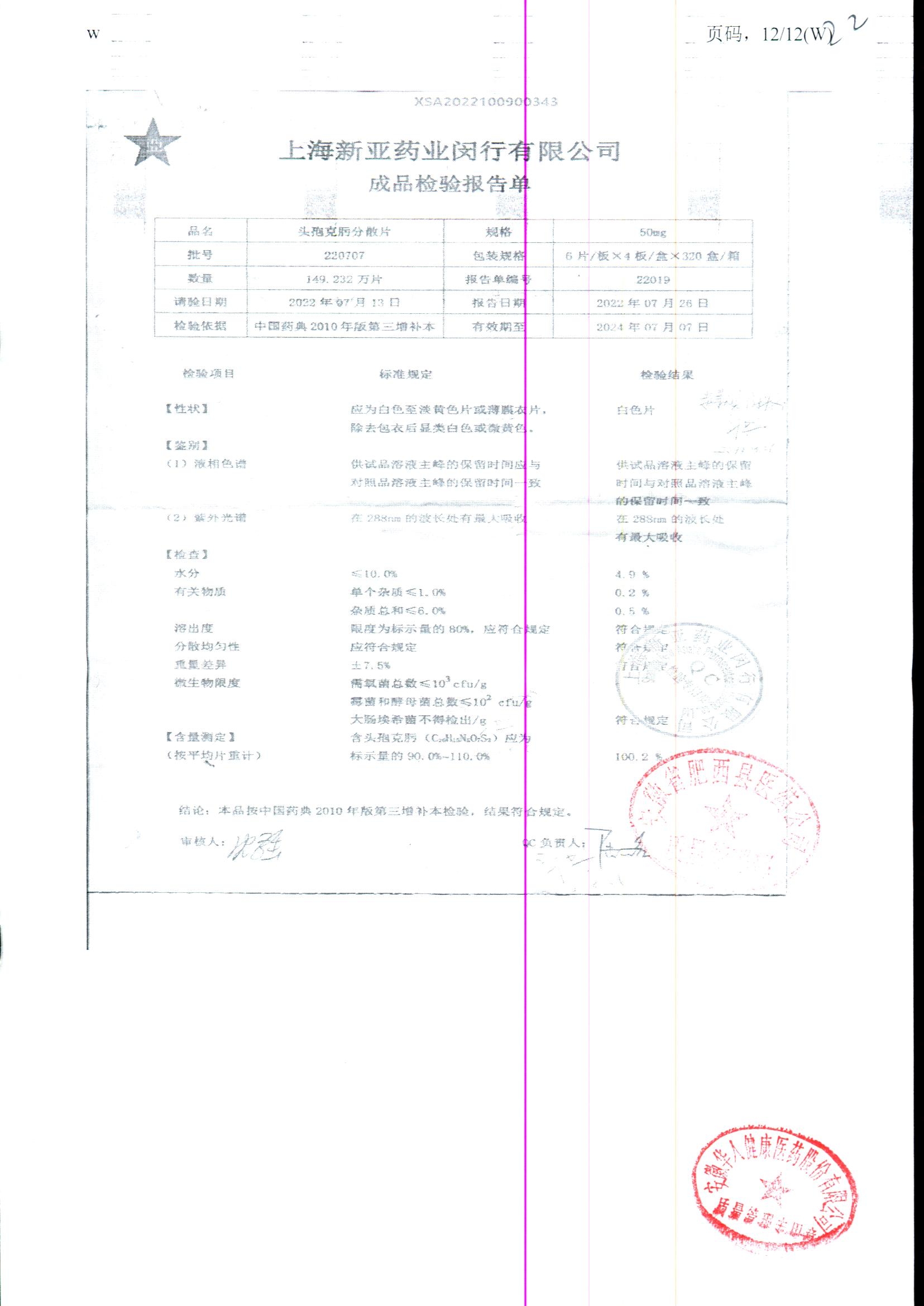 | 頭孢克肟分散片 | 50mg*24s | 201102 | 查看詳情 |