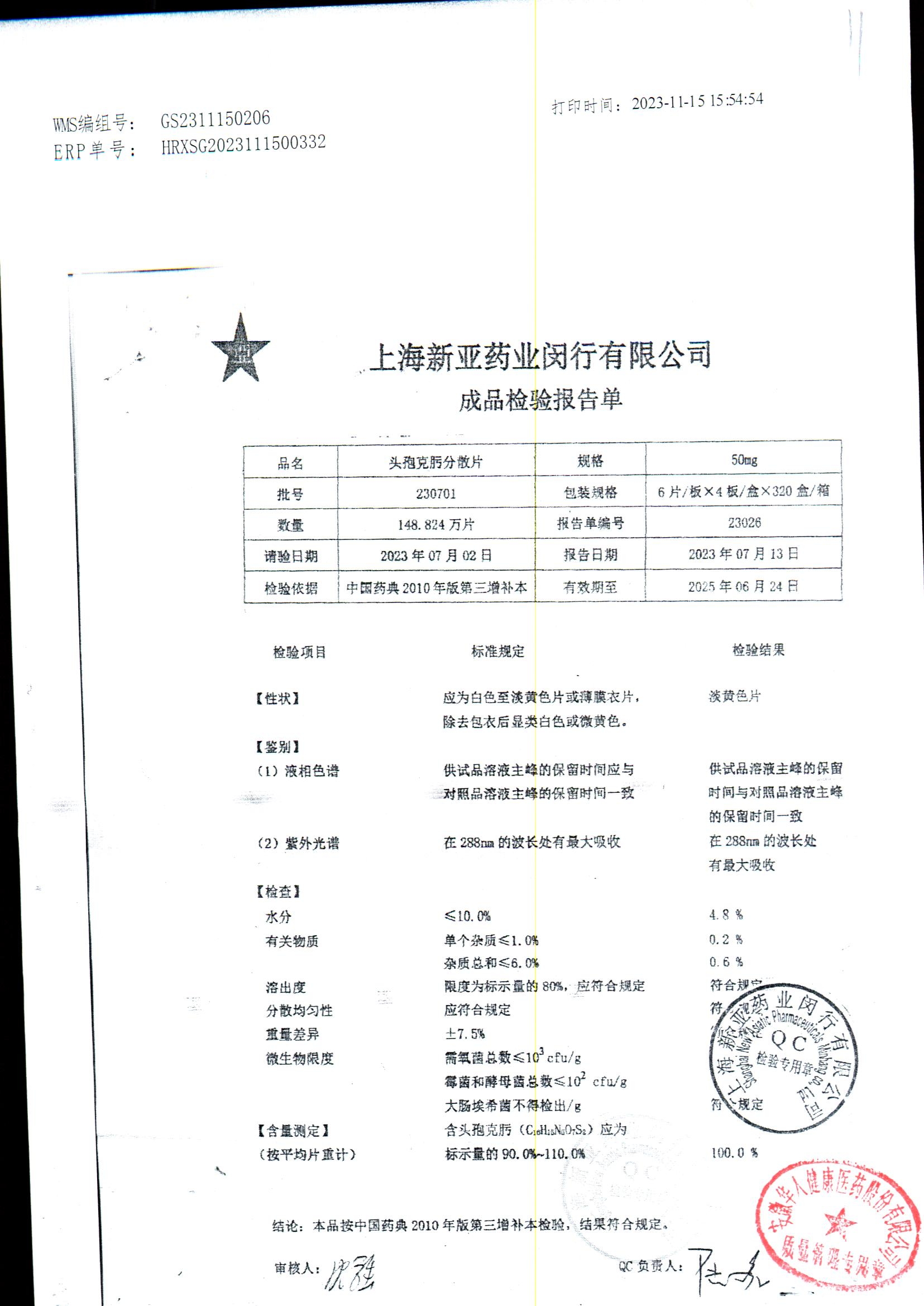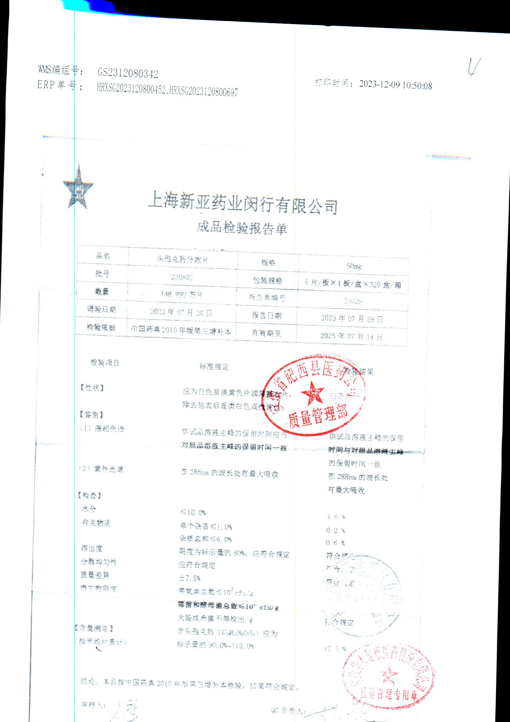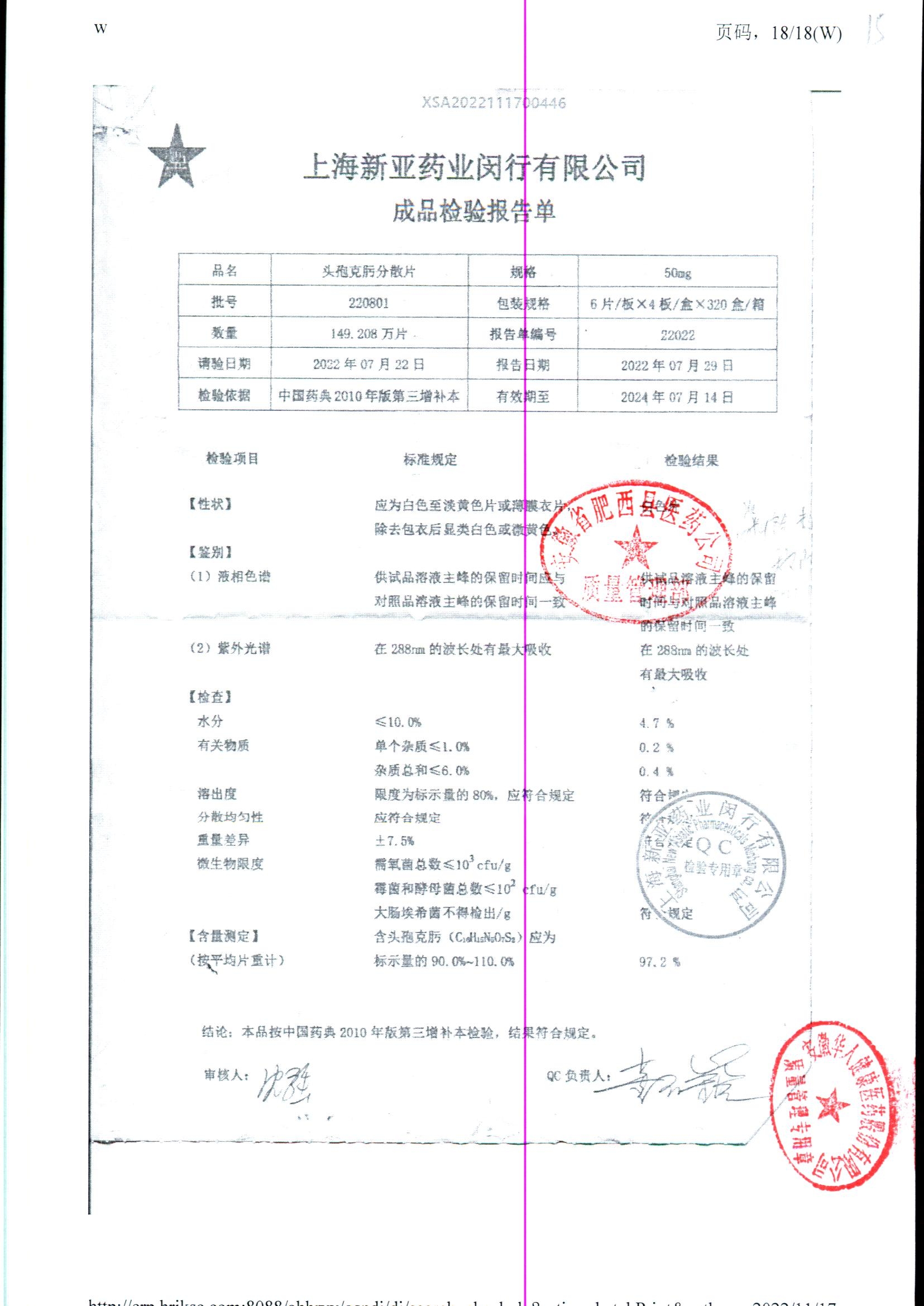 | 頭孢克肟分散片 | 50mg*24s | 230801 | 查看詳情 |