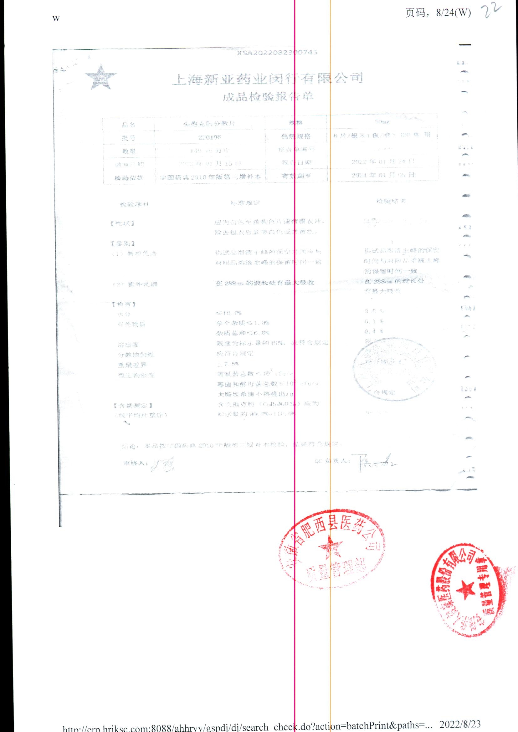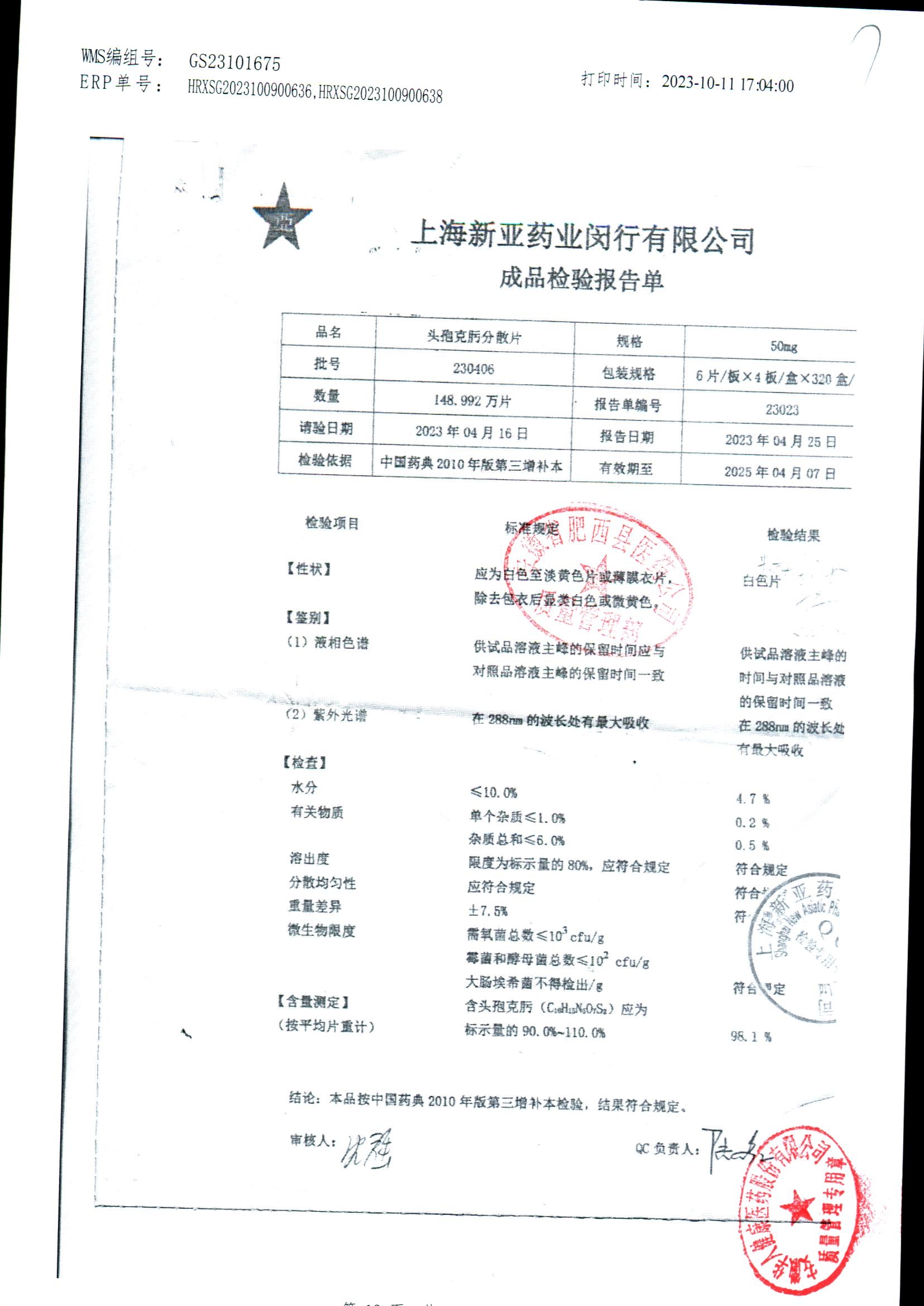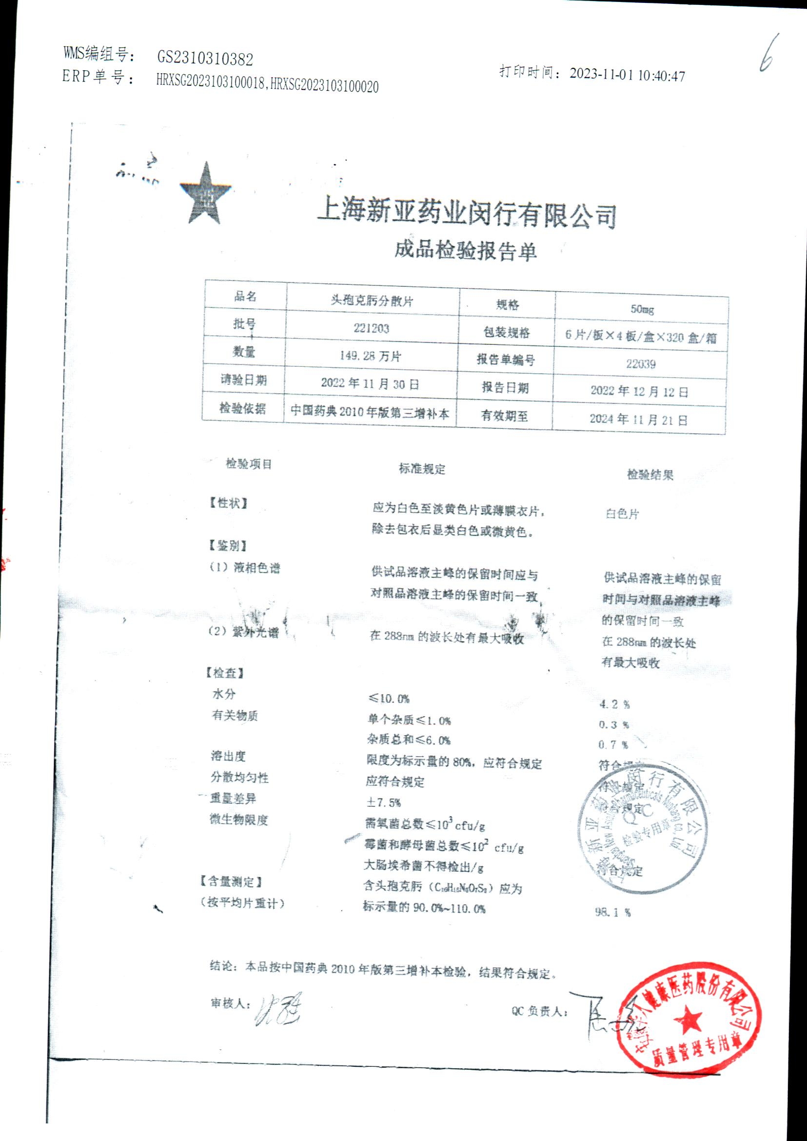 | 頭孢克肟分散片 | 50mg*24s | 230801 | 查看詳情 |