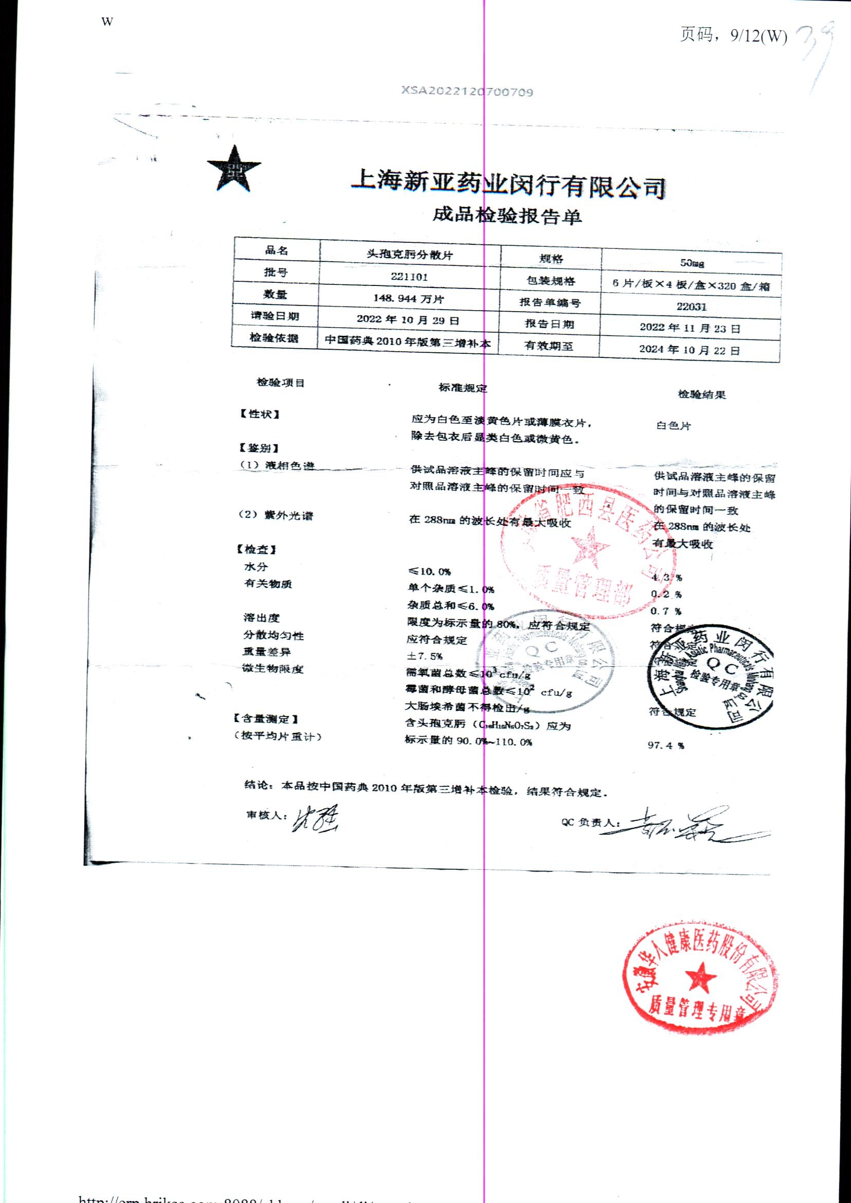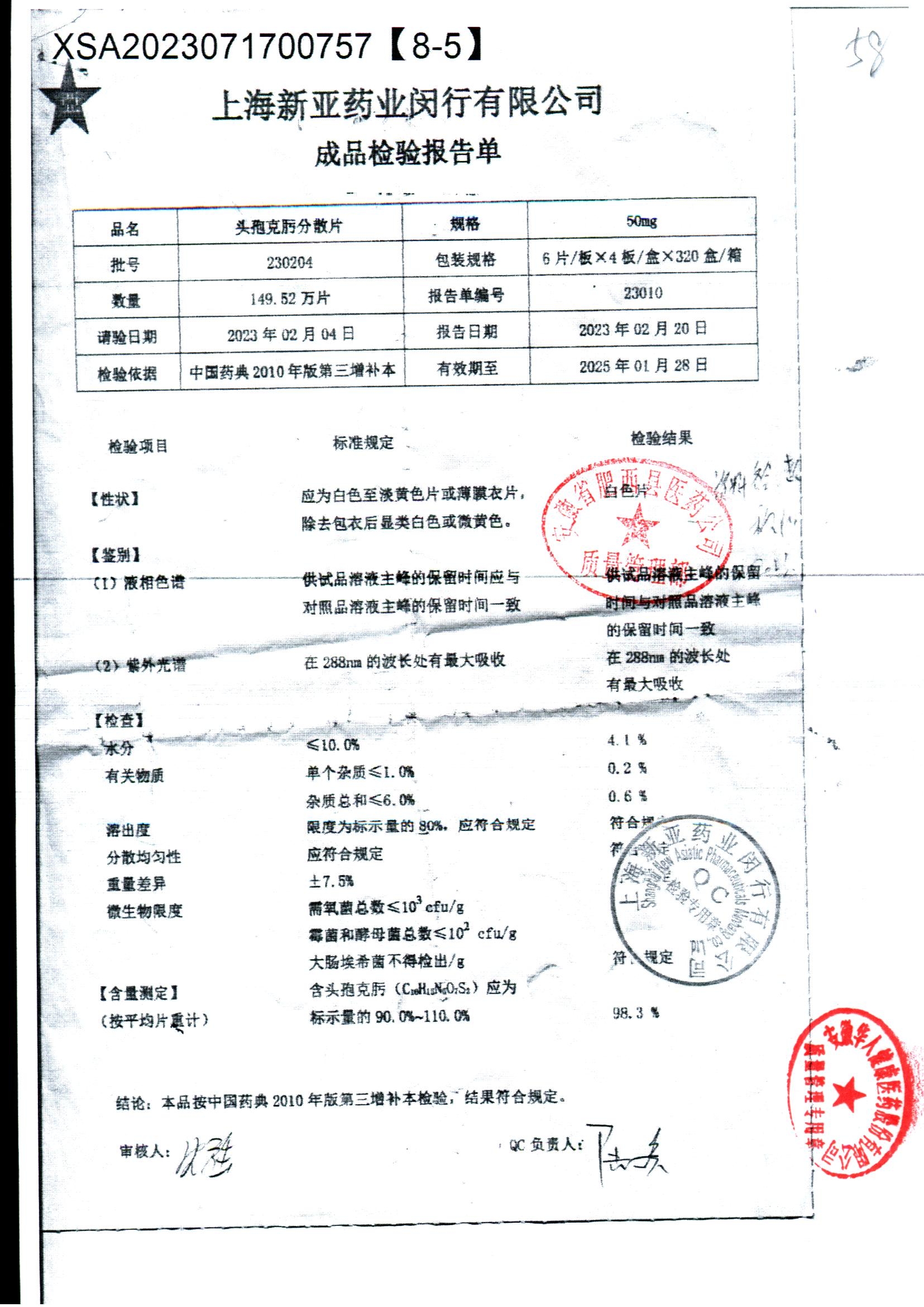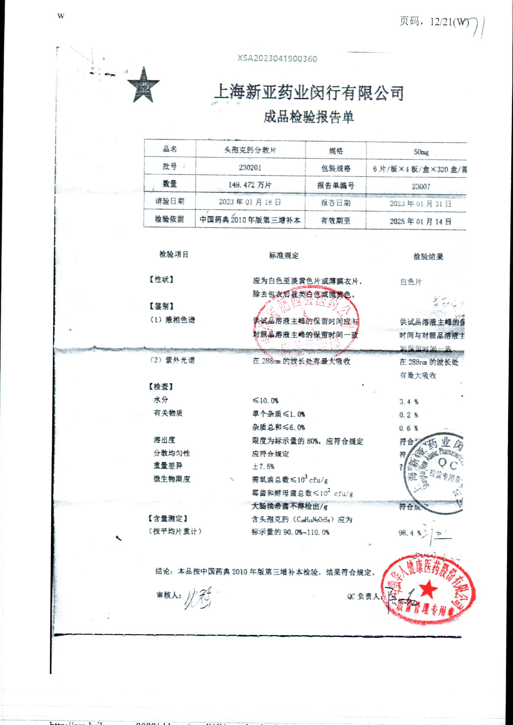 | 頭孢克肟分散片 | 50mg*24s | 230404 | 查看詳情 |