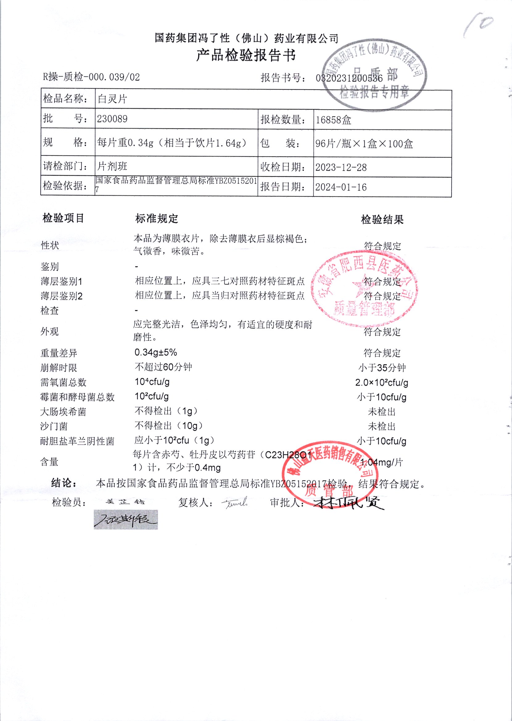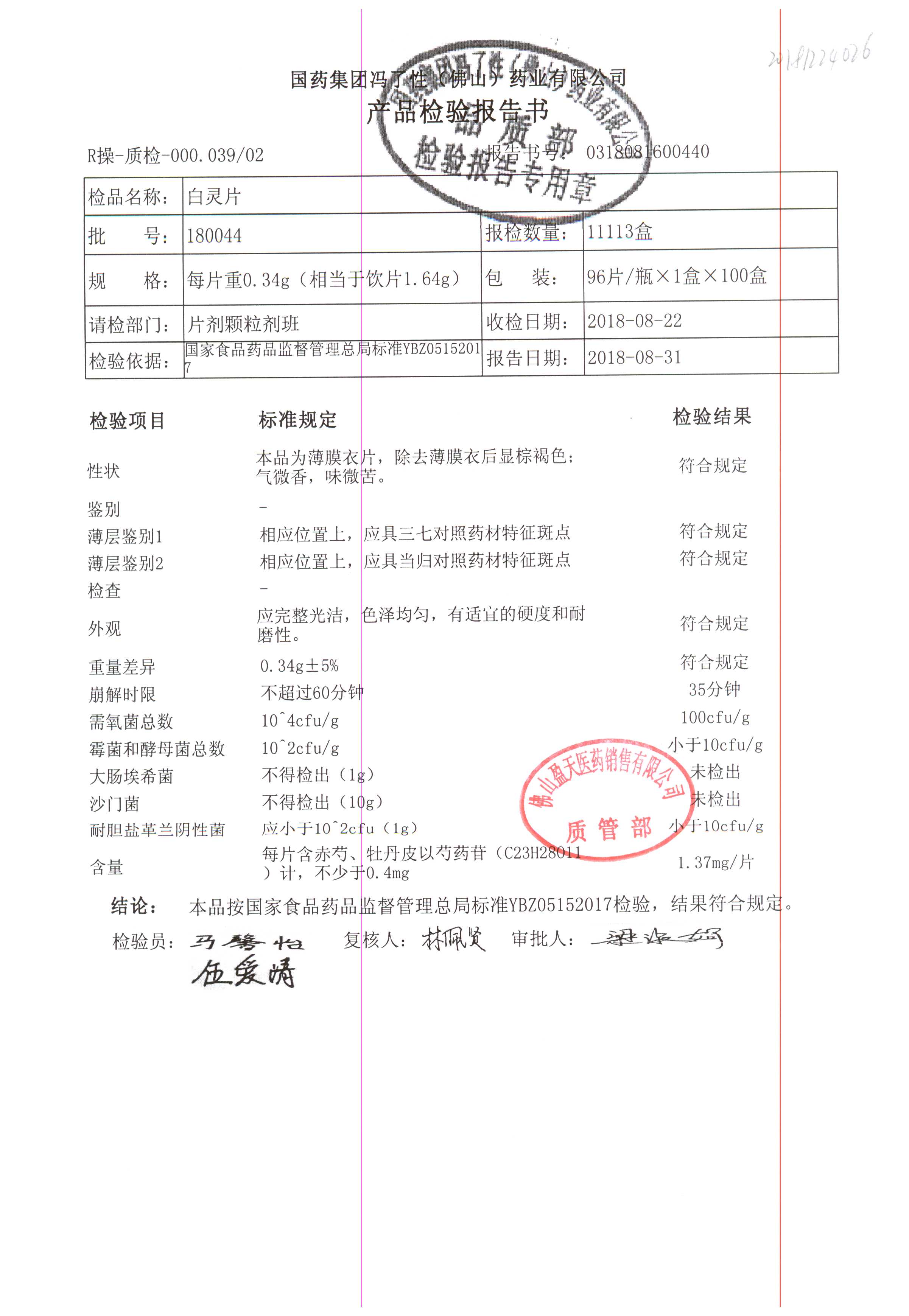 | 名稱 | 規(guī)格 | 批號(hào) | 藥檢報(bào)告 |