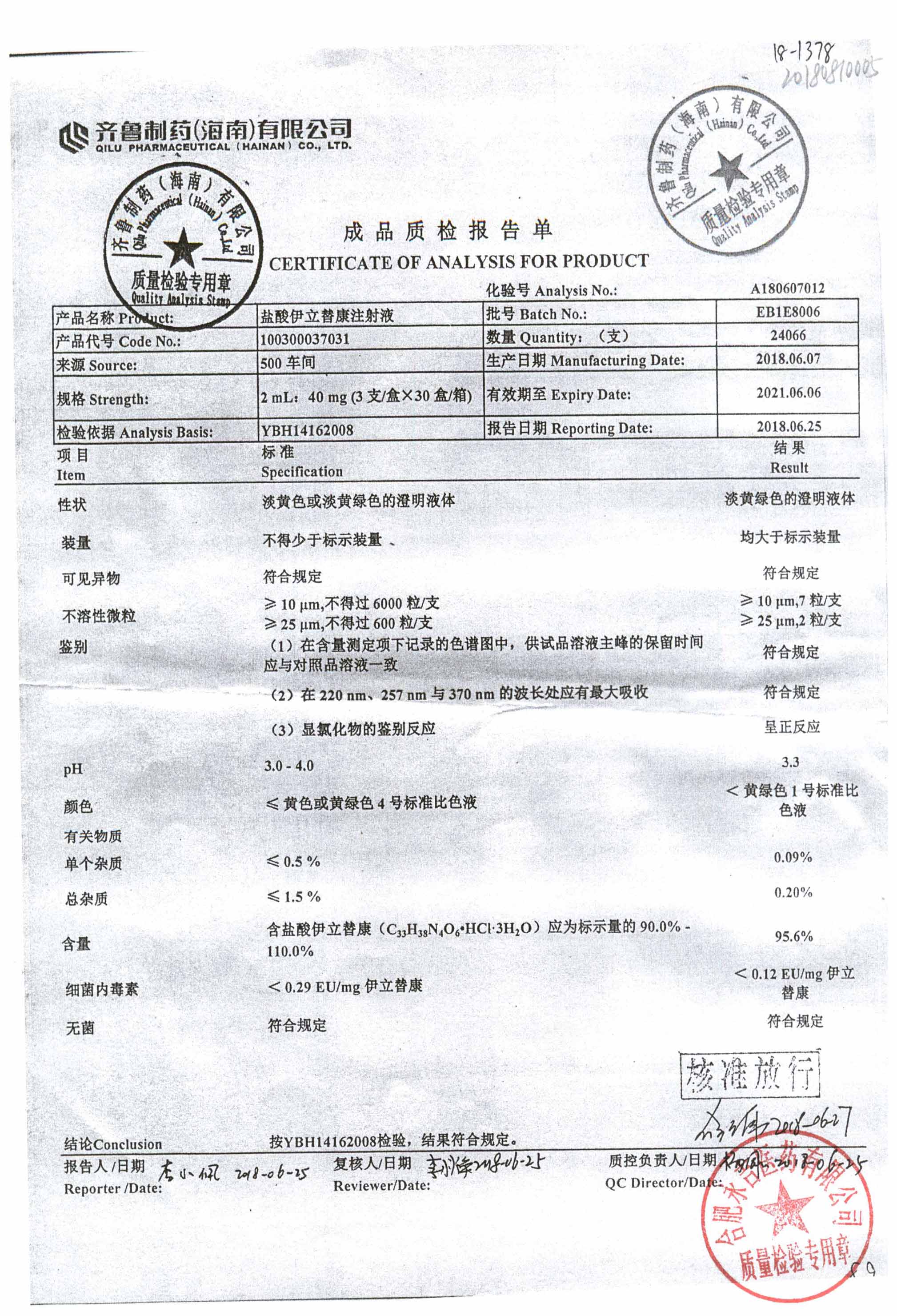 鹽酸伊立替康注射液 2ml:40mg EB1E8006 查看詳情
