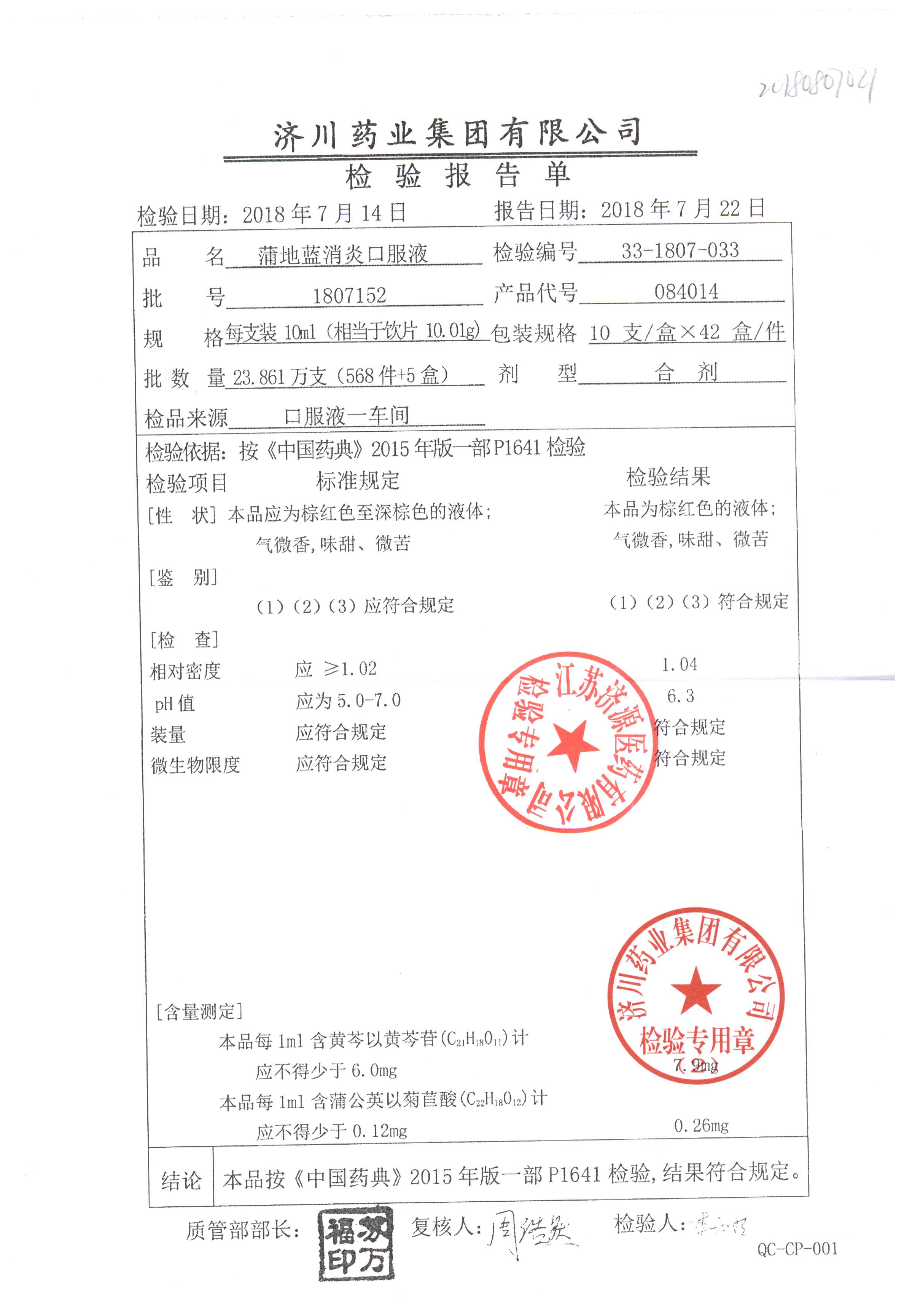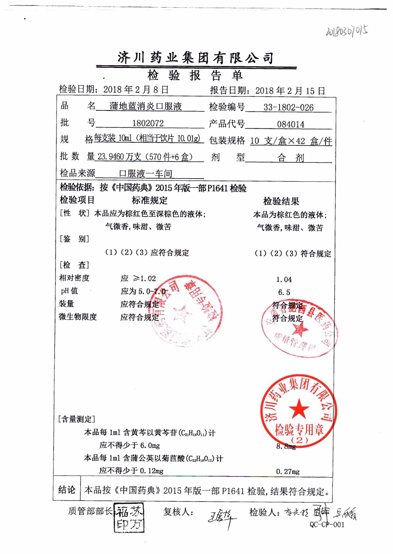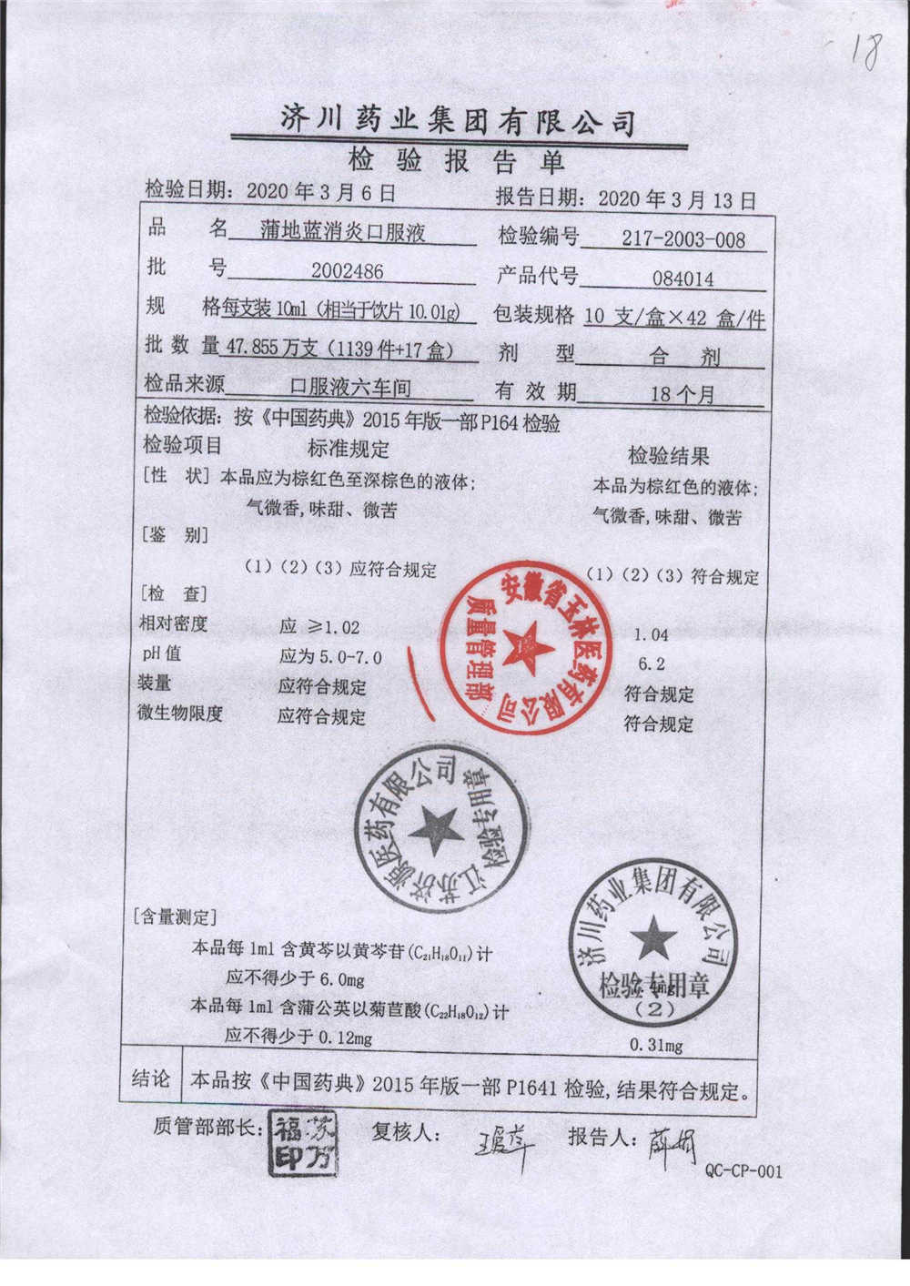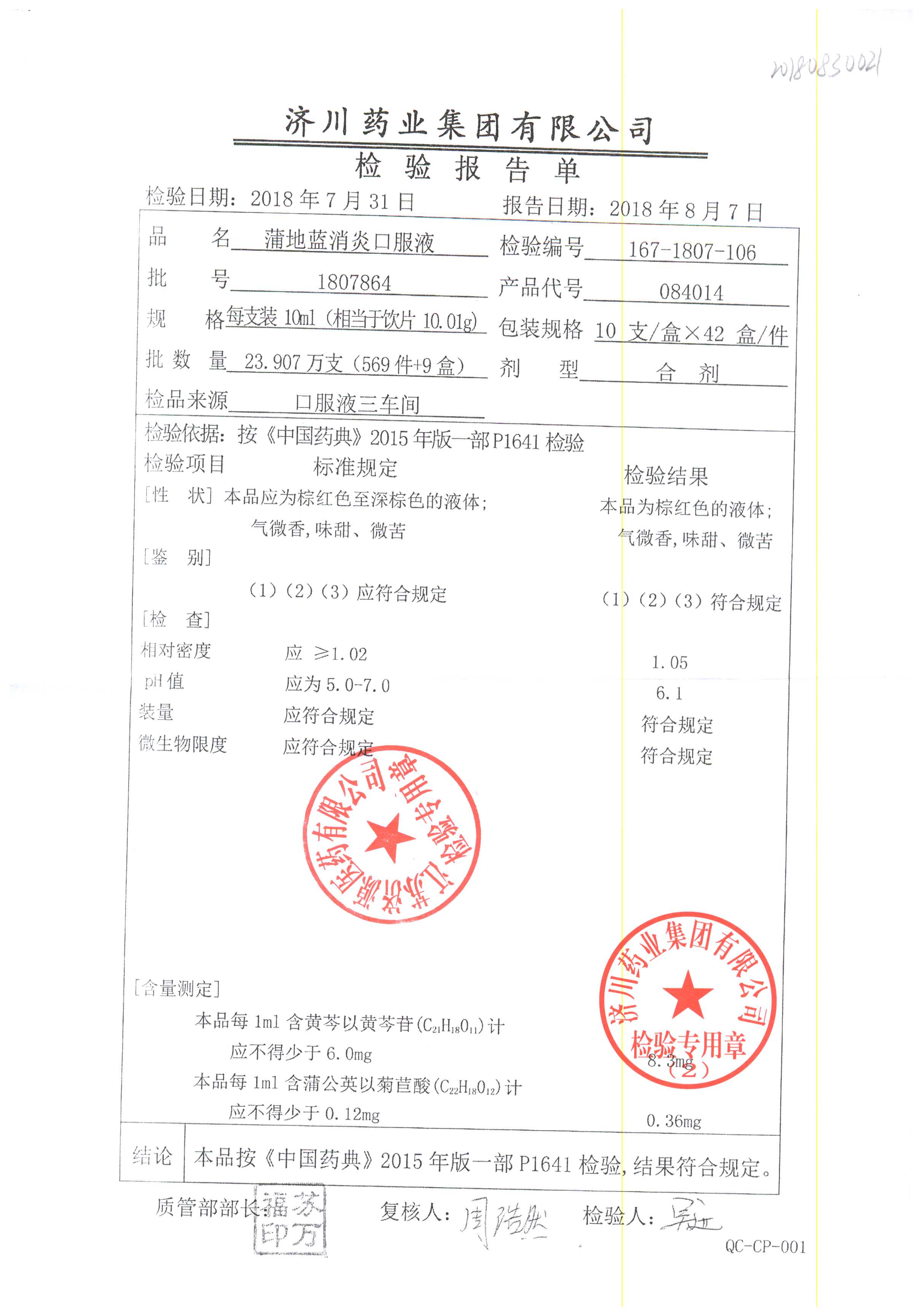 | 蒲地藍(lán)消炎口服液 | 10ml*10支 | 1805A74 | 查看詳情 |