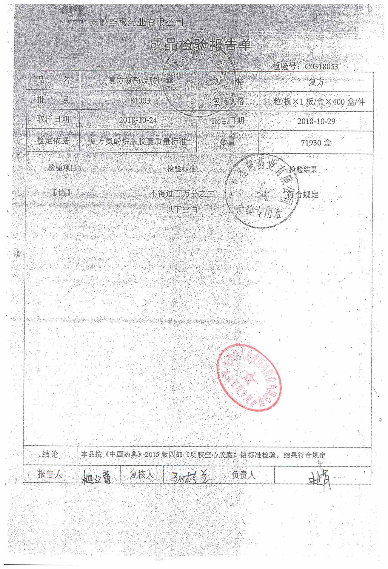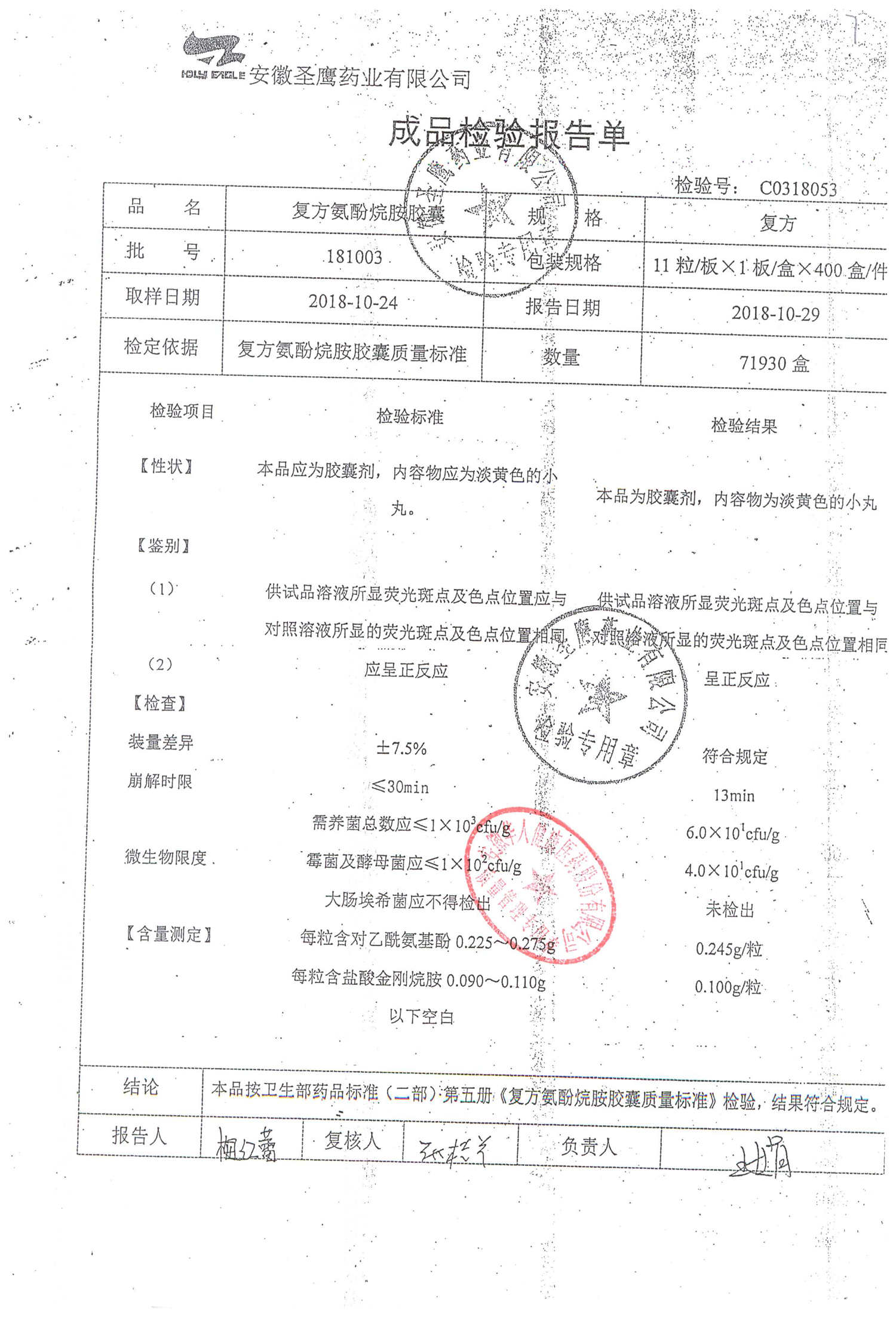 | 復方氨酚烷胺膠囊 | 11s*1 | 181003(1/2) | 查看詳情 |