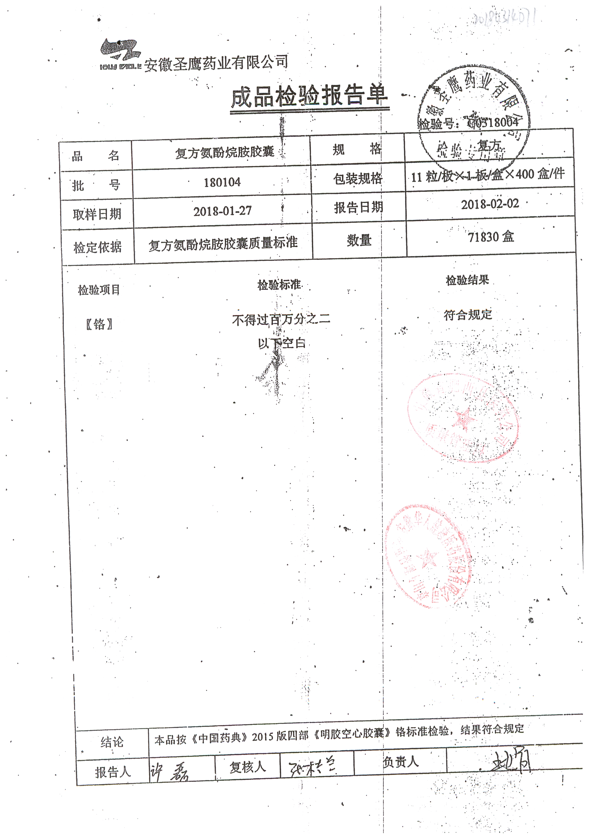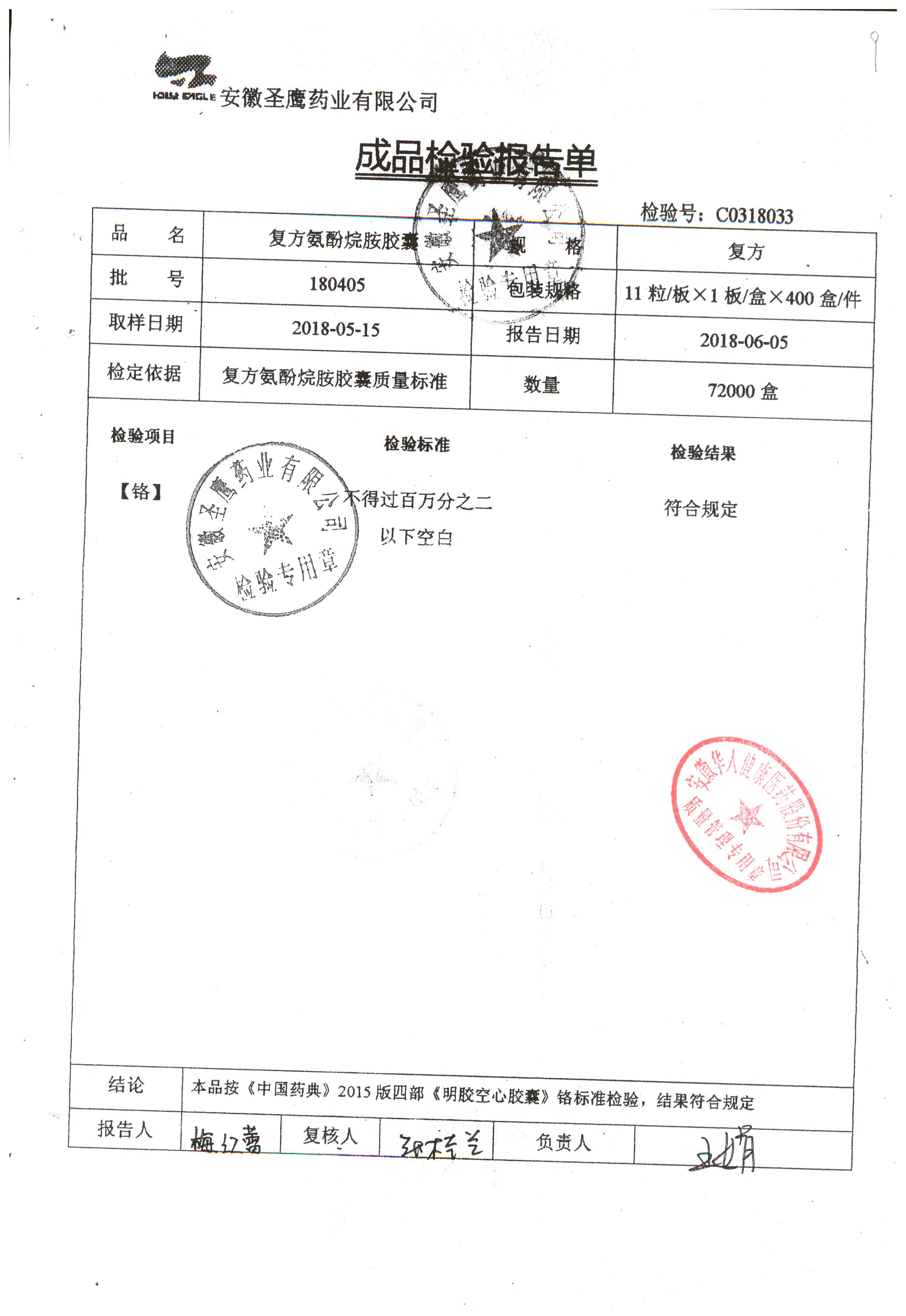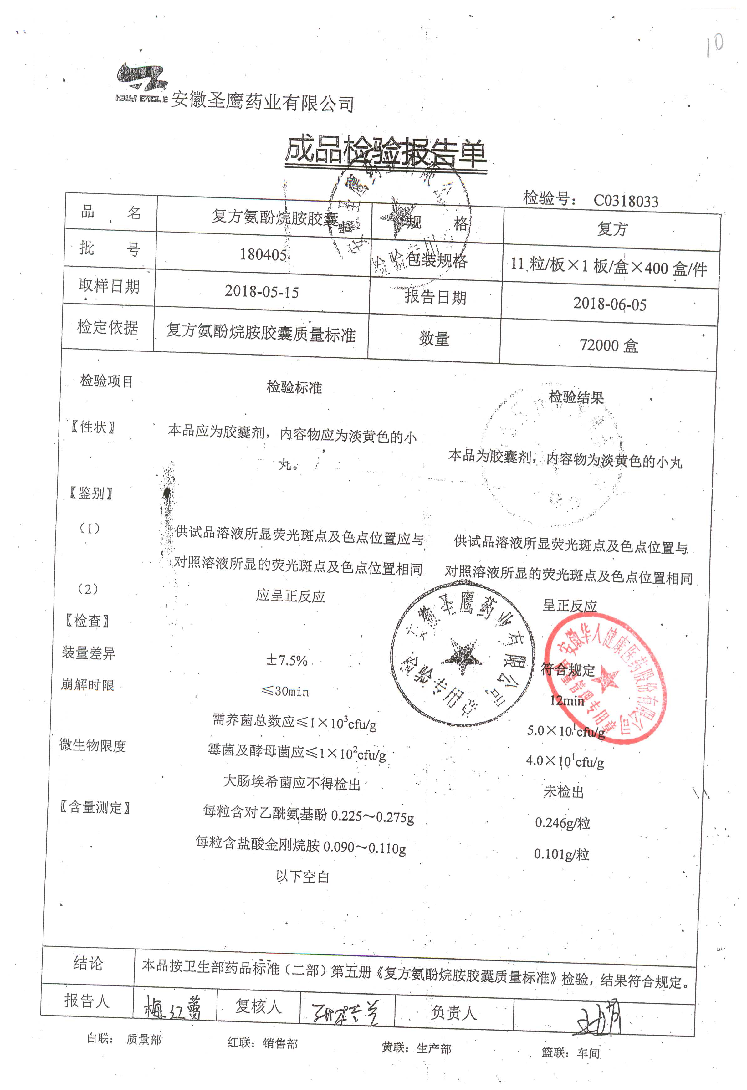 | 復方氨酚烷胺膠囊 | 11s*1 | 180405(1/2) | 查看詳情 |