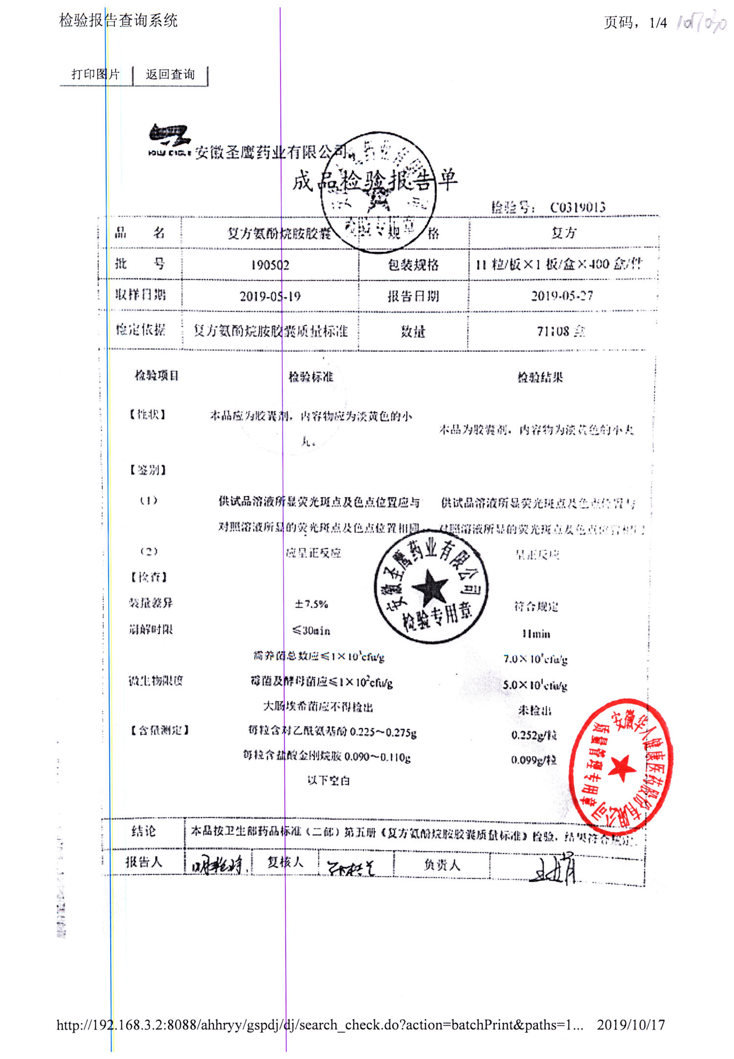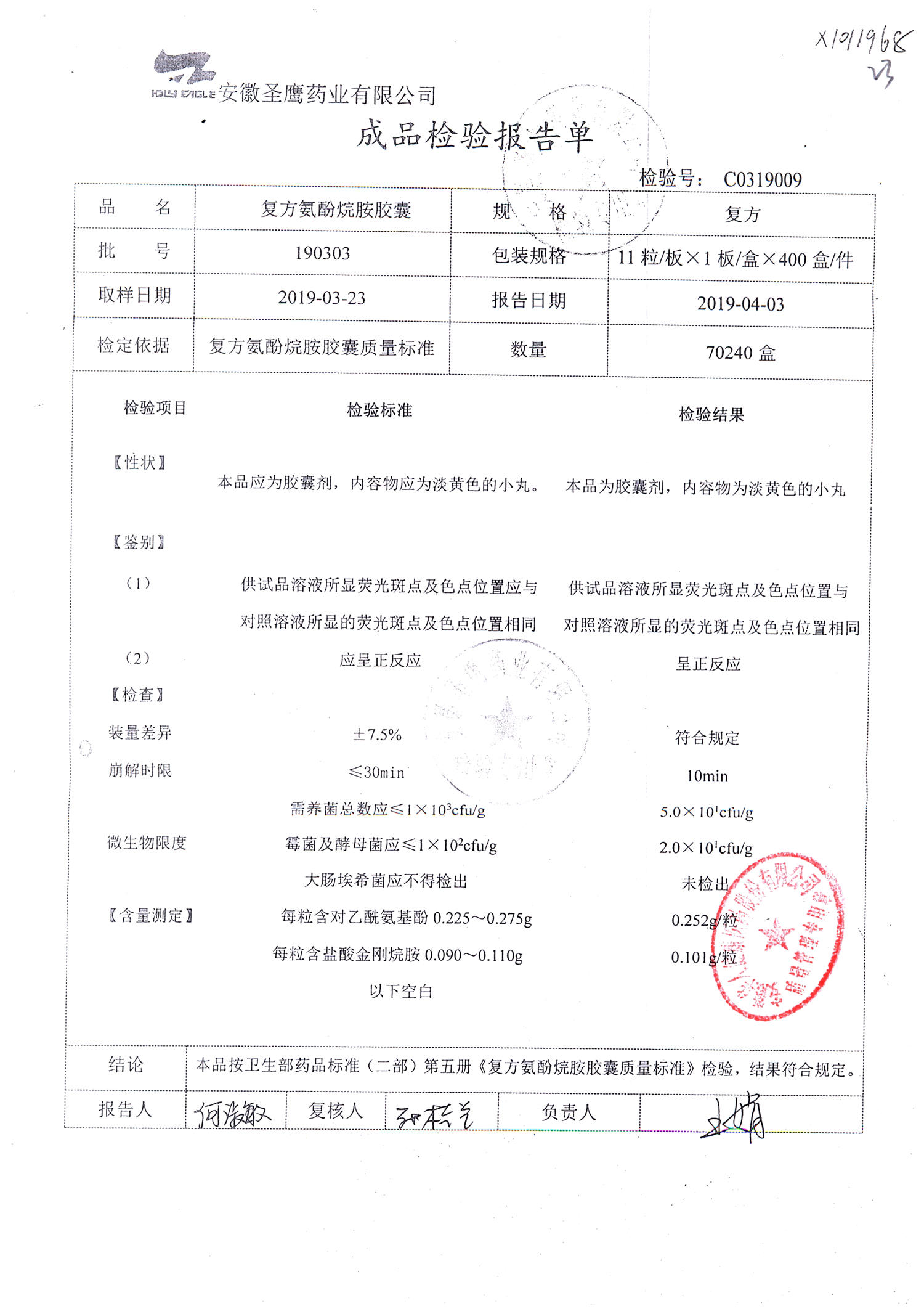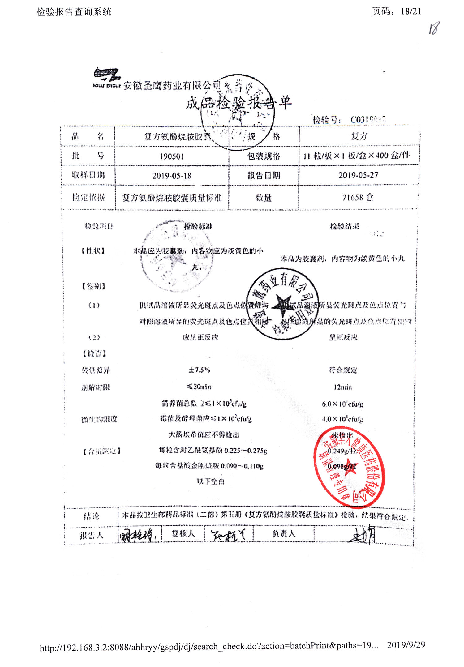 | 復方氨酚烷胺膠囊 | 11s*1 | 190501 | 查看詳情 |