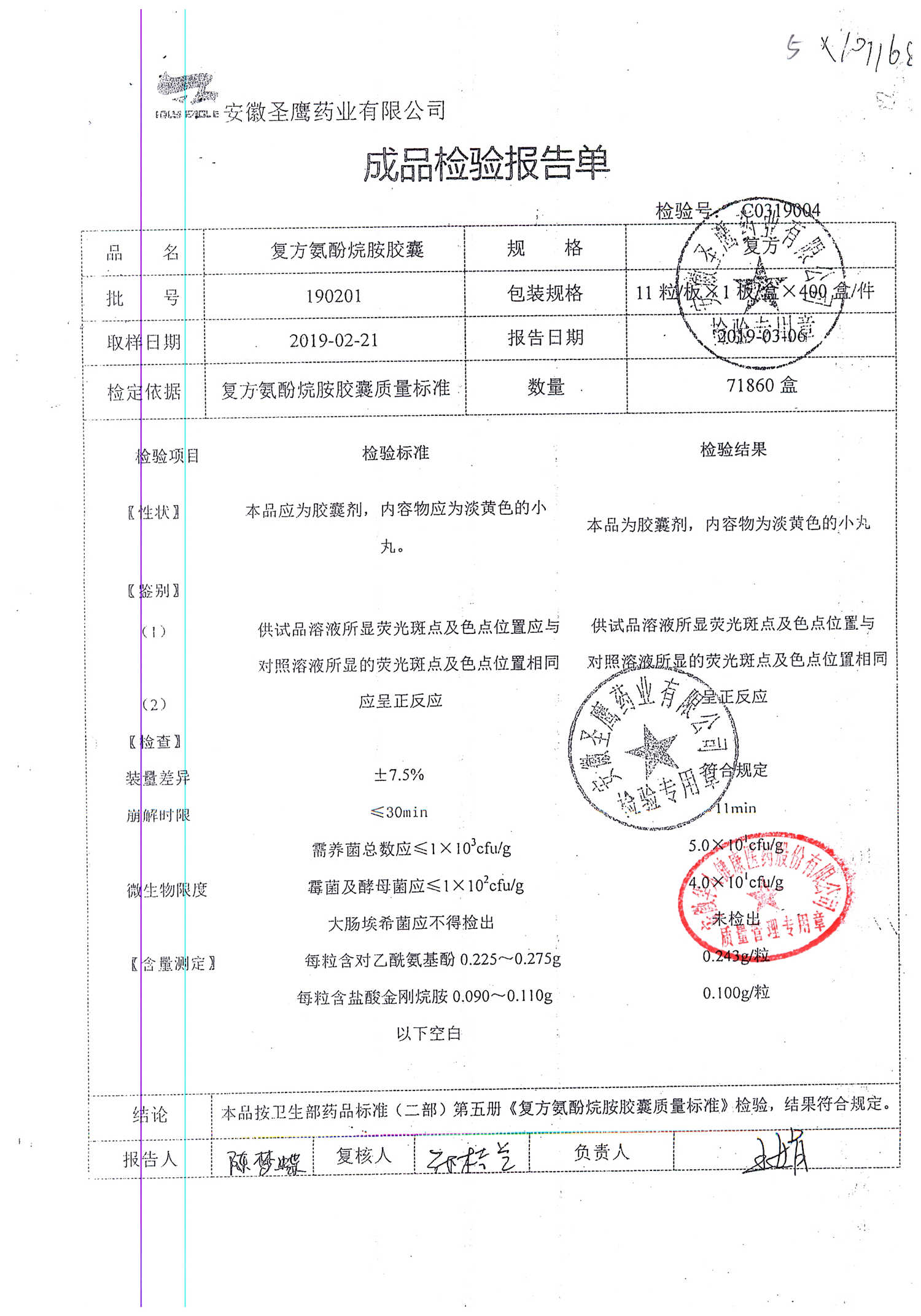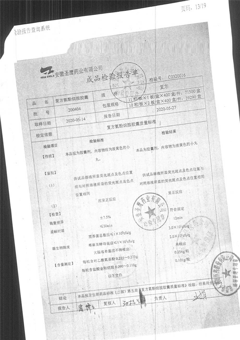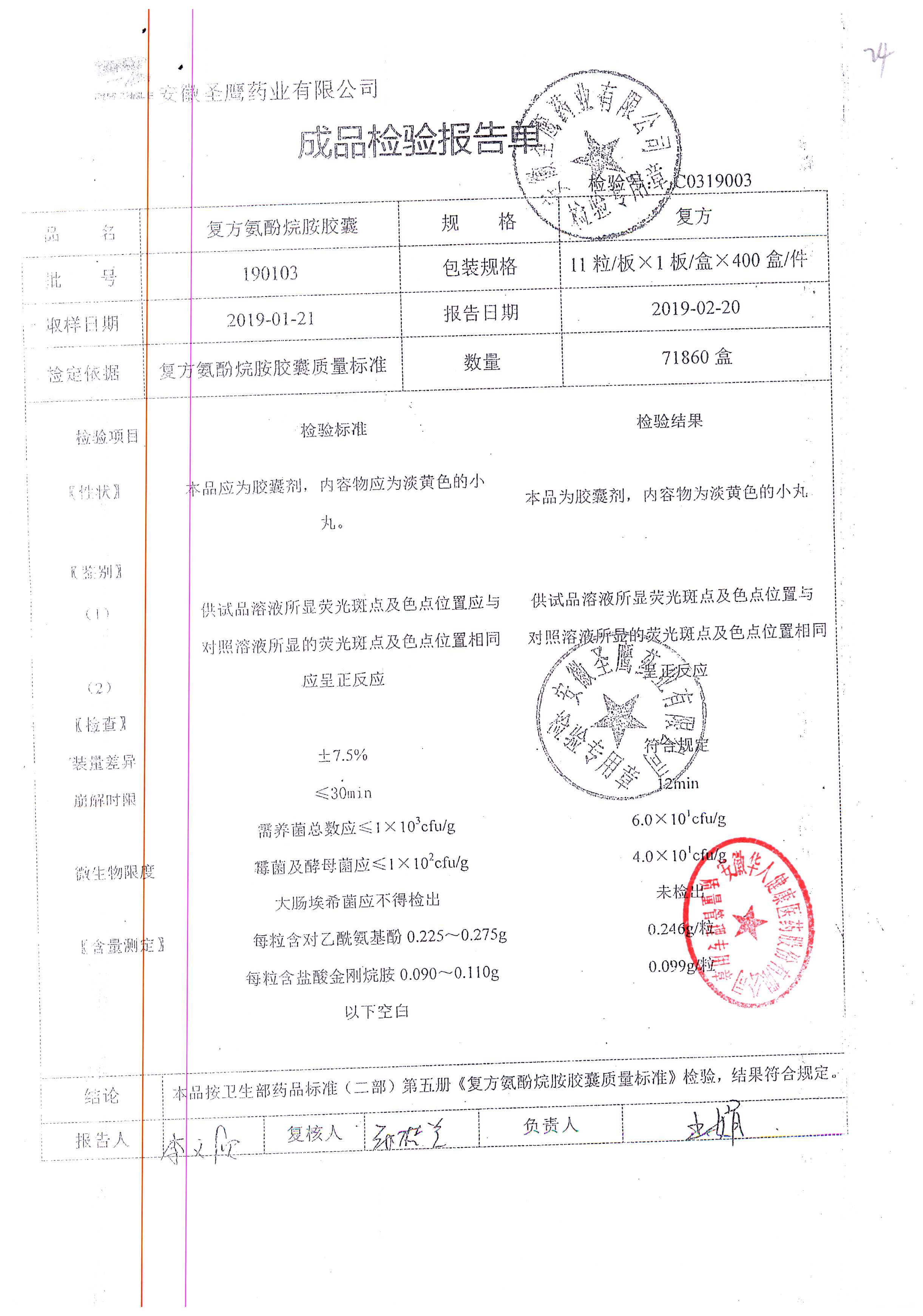| 復方氨酚烷胺膠囊 | 11s*1 | 190502 | 查看詳情 |