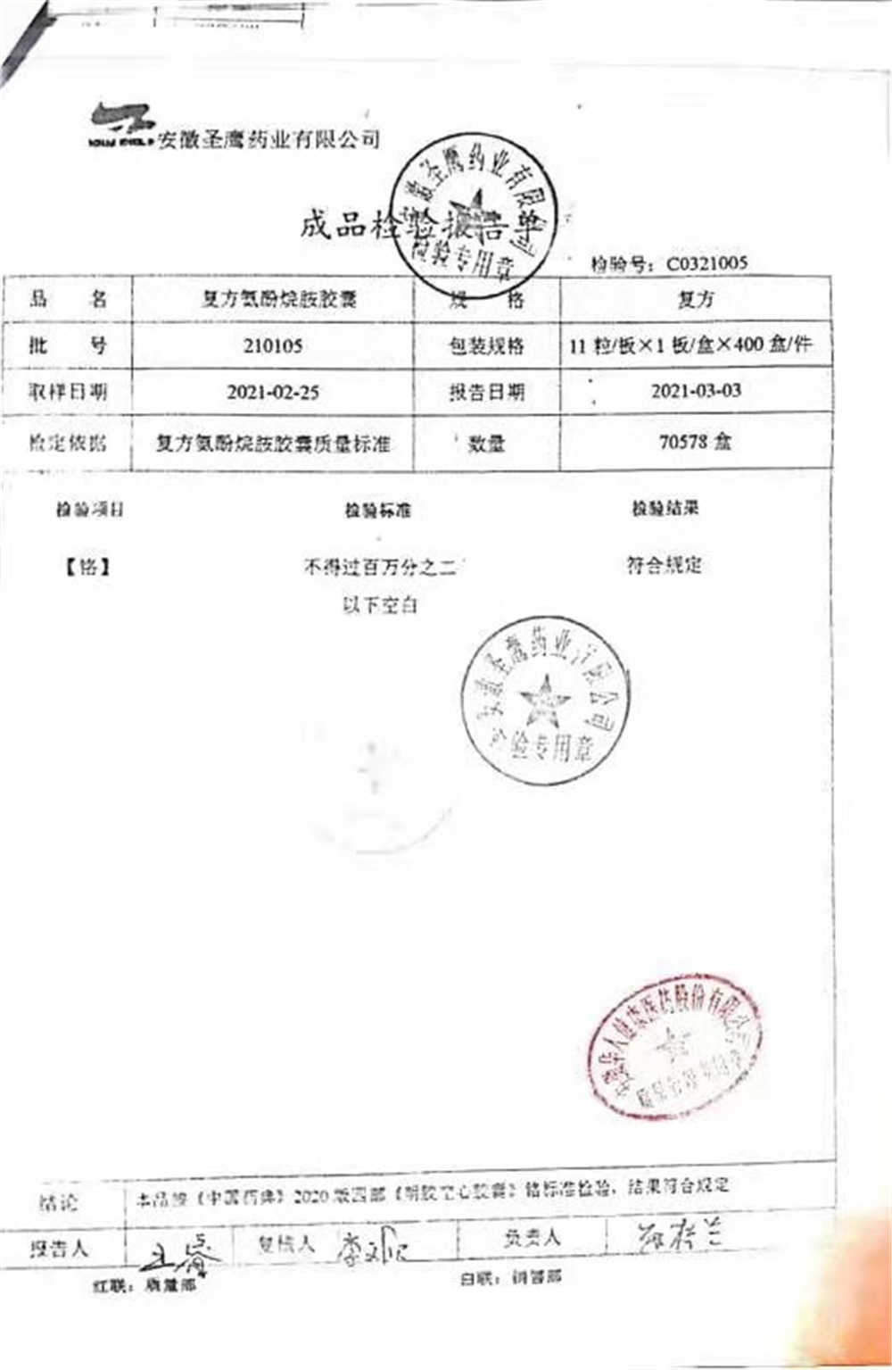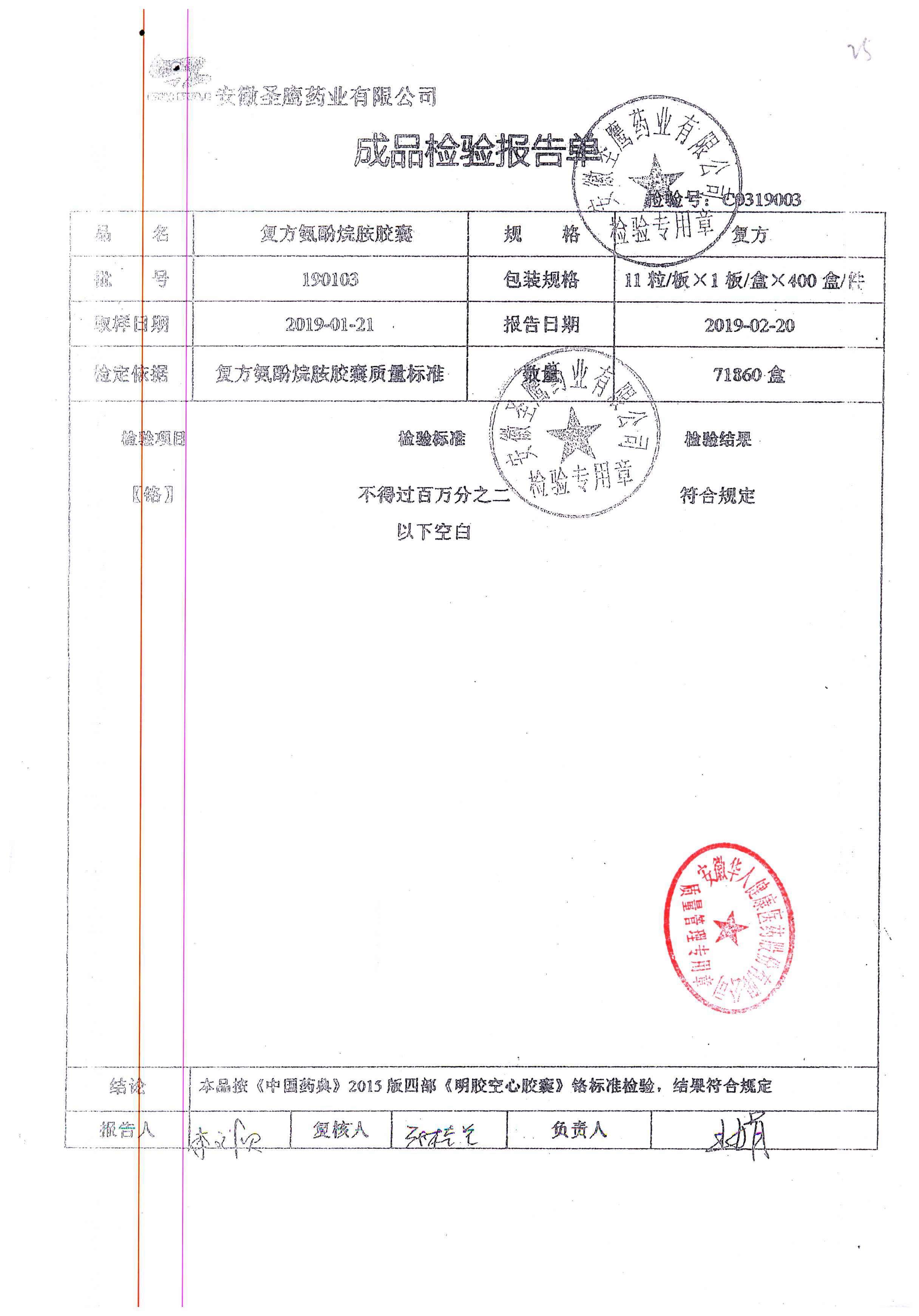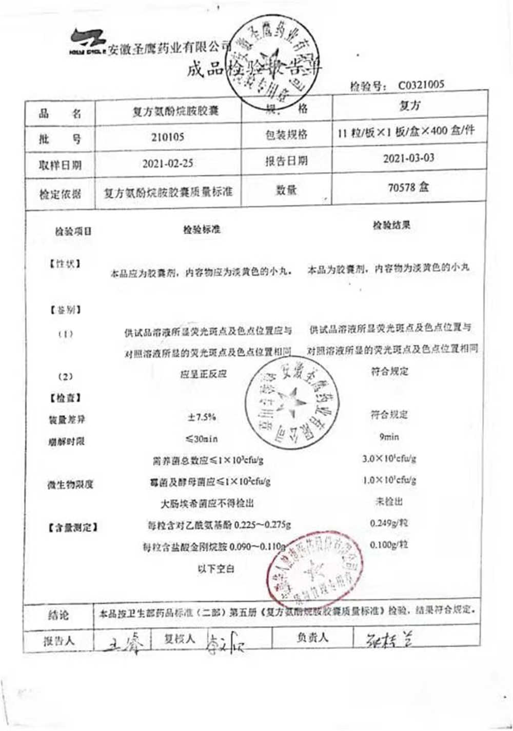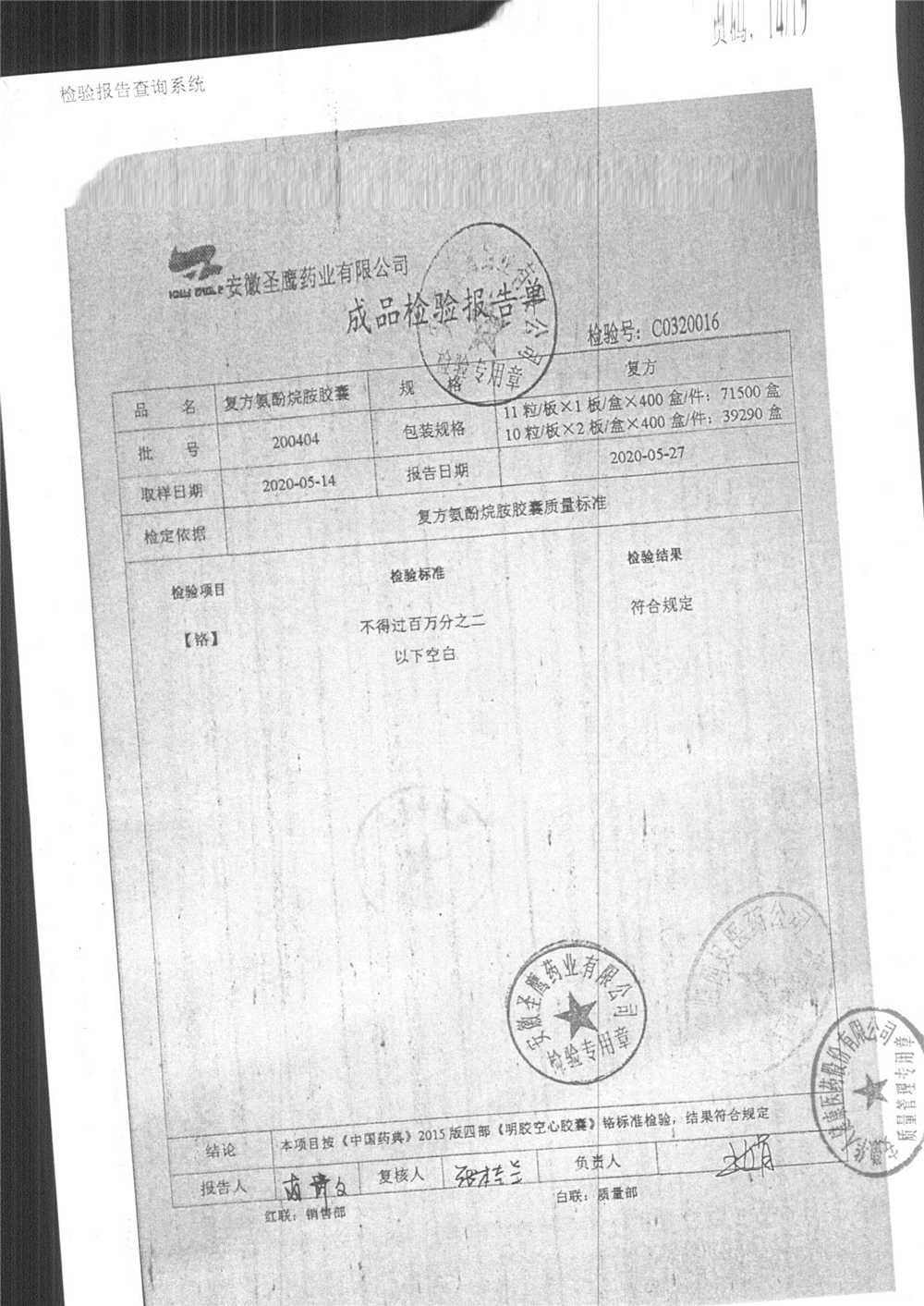 | 復方氨酚烷胺膠囊 | 11s*1 | 201005(2/2) | 查看詳情 |