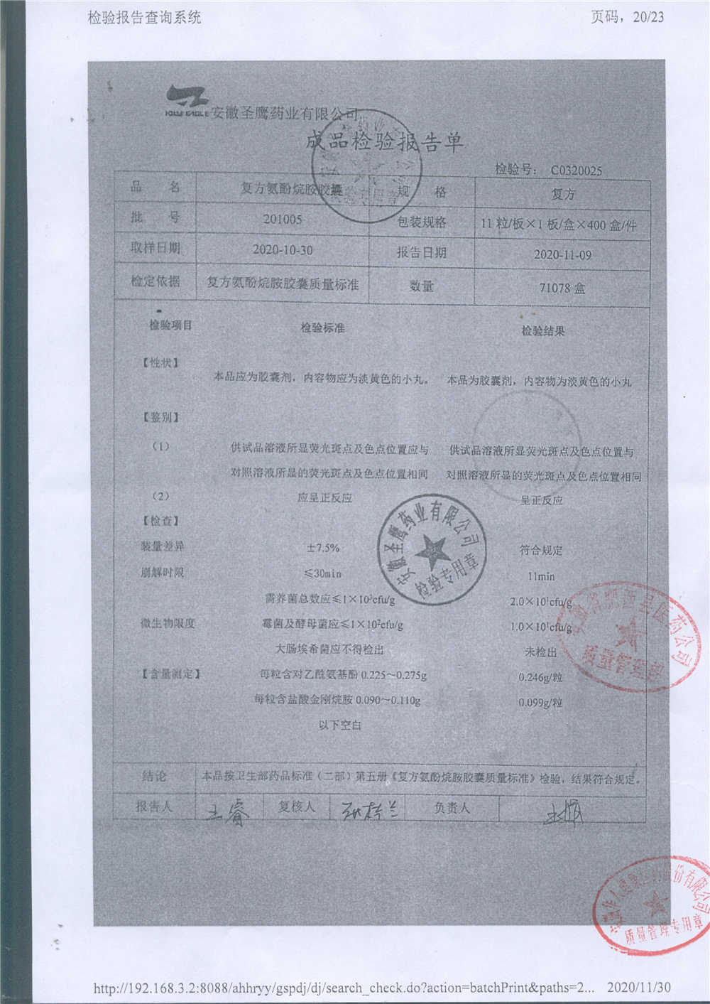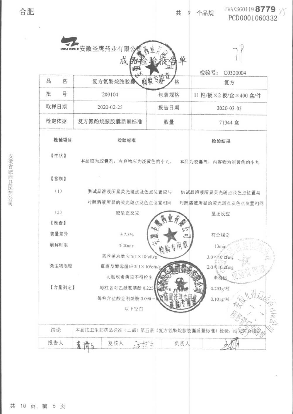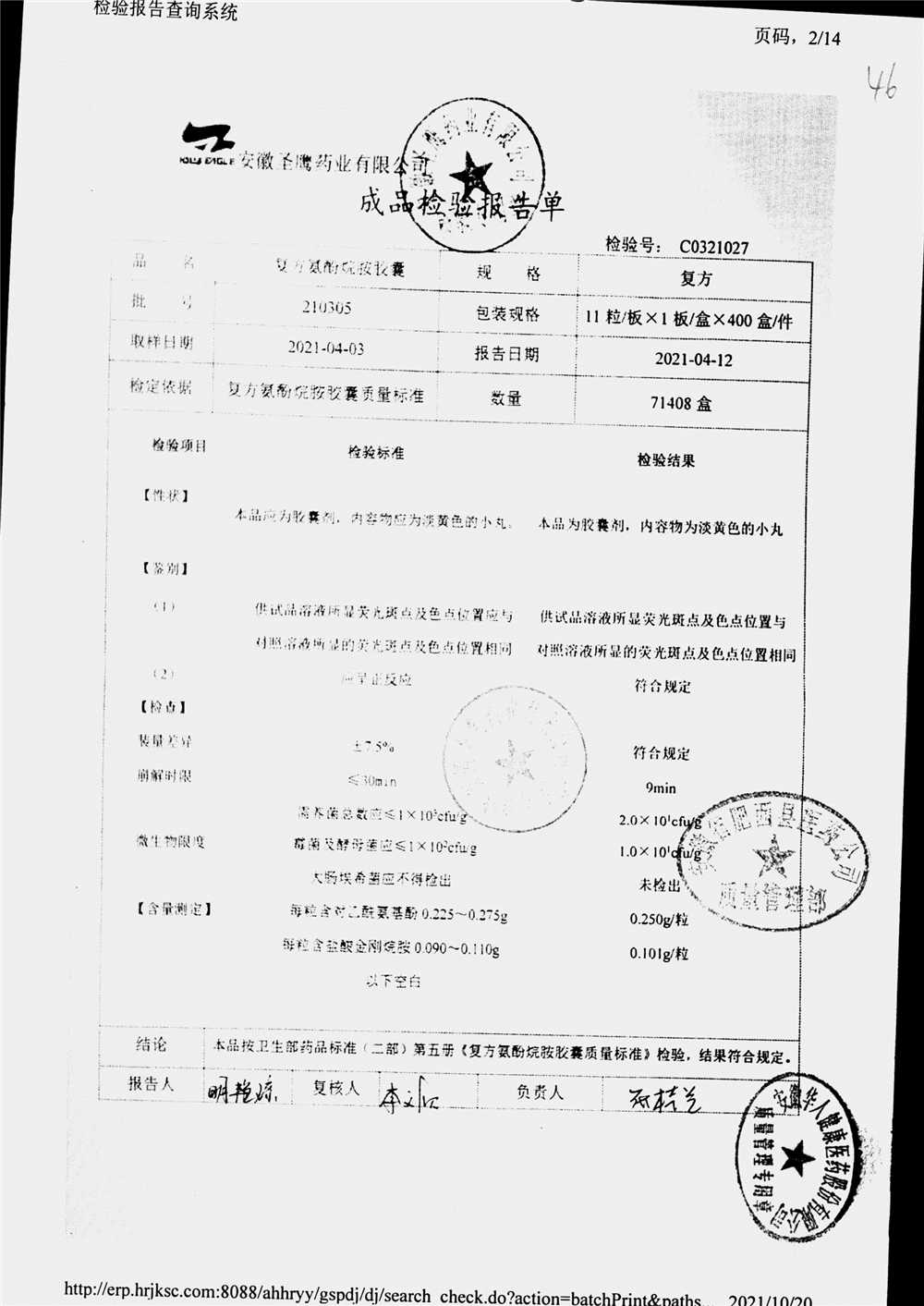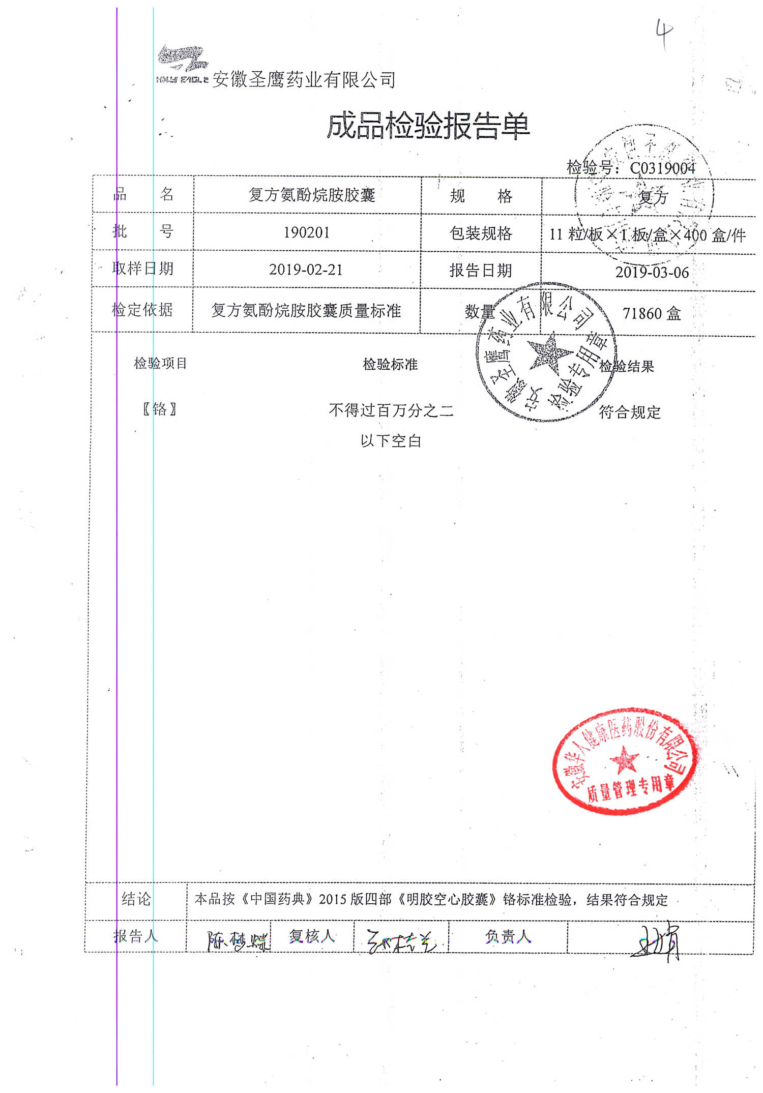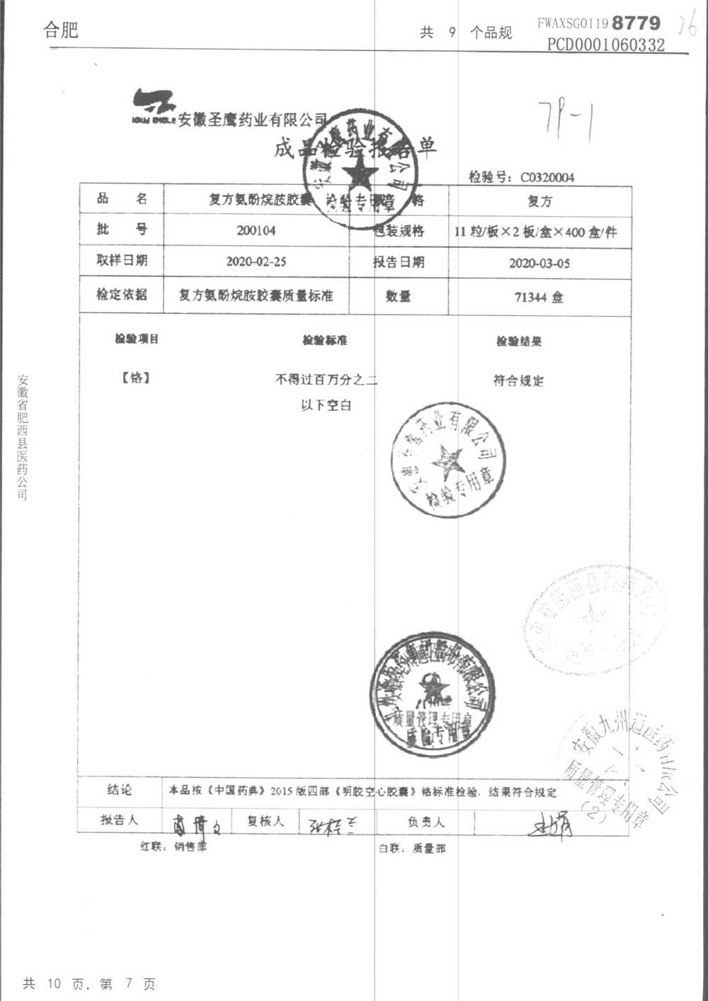 | 復方氨酚烷胺膠囊 | 11s*1 | 201005(2/2) | 查看詳情 |