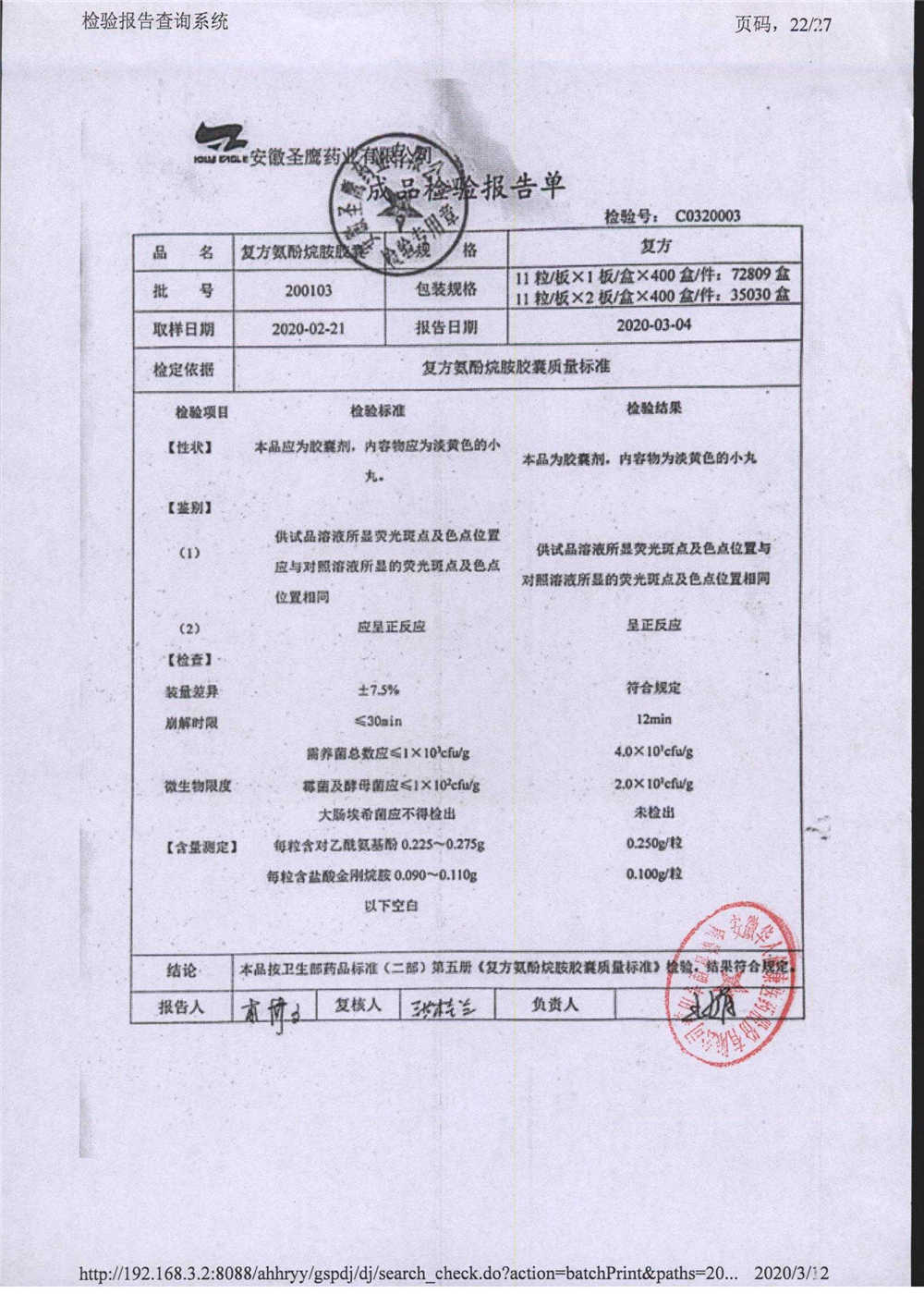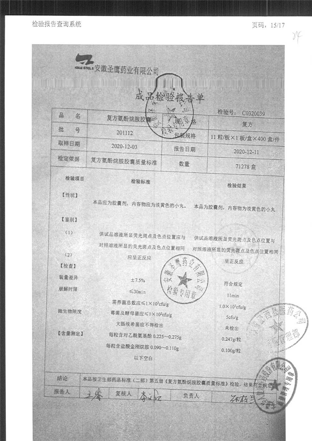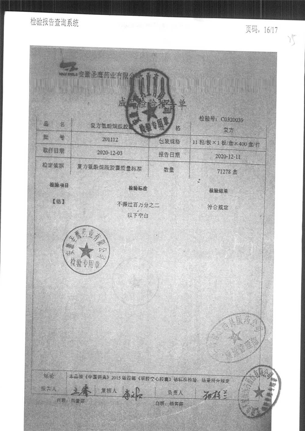 | 復方氨酚烷胺膠囊 | 11s*1 | 201202(2/2) | 查看詳情 |