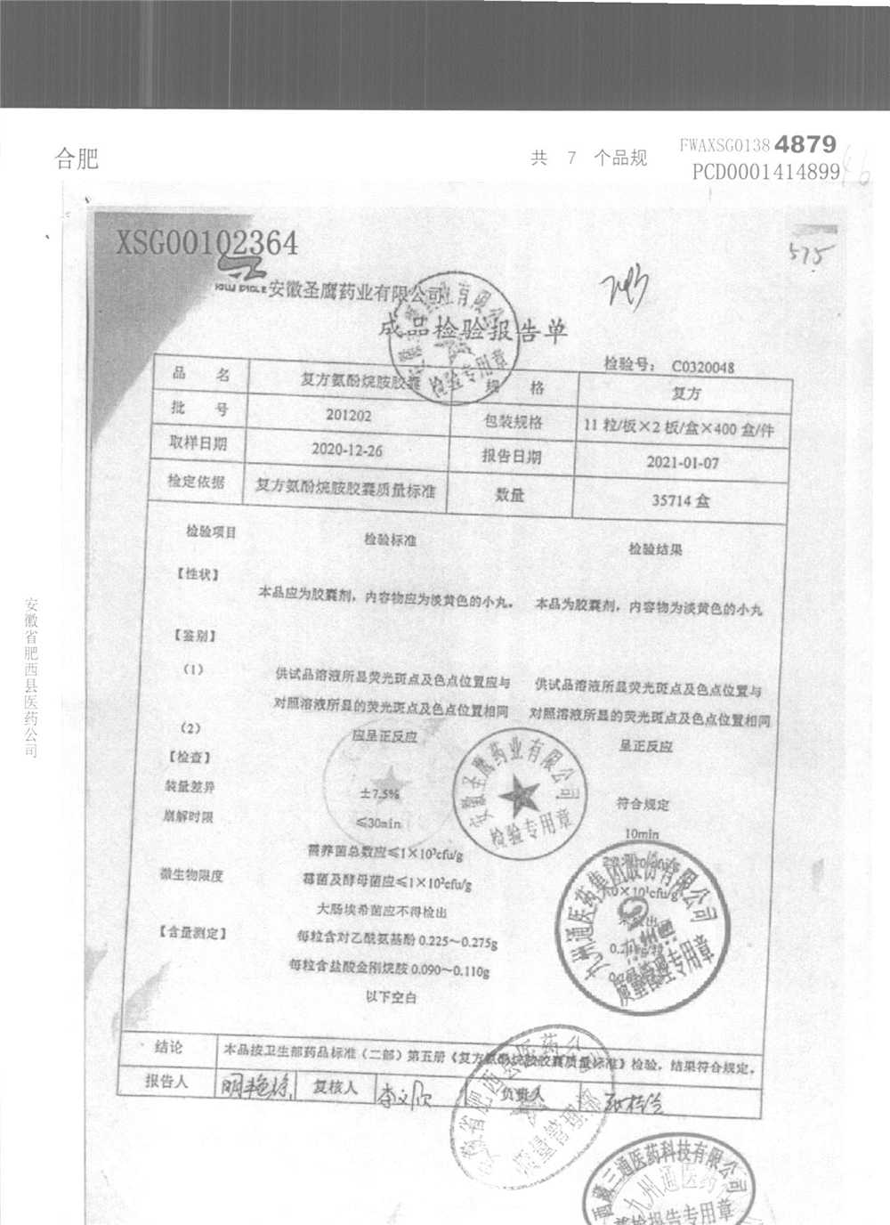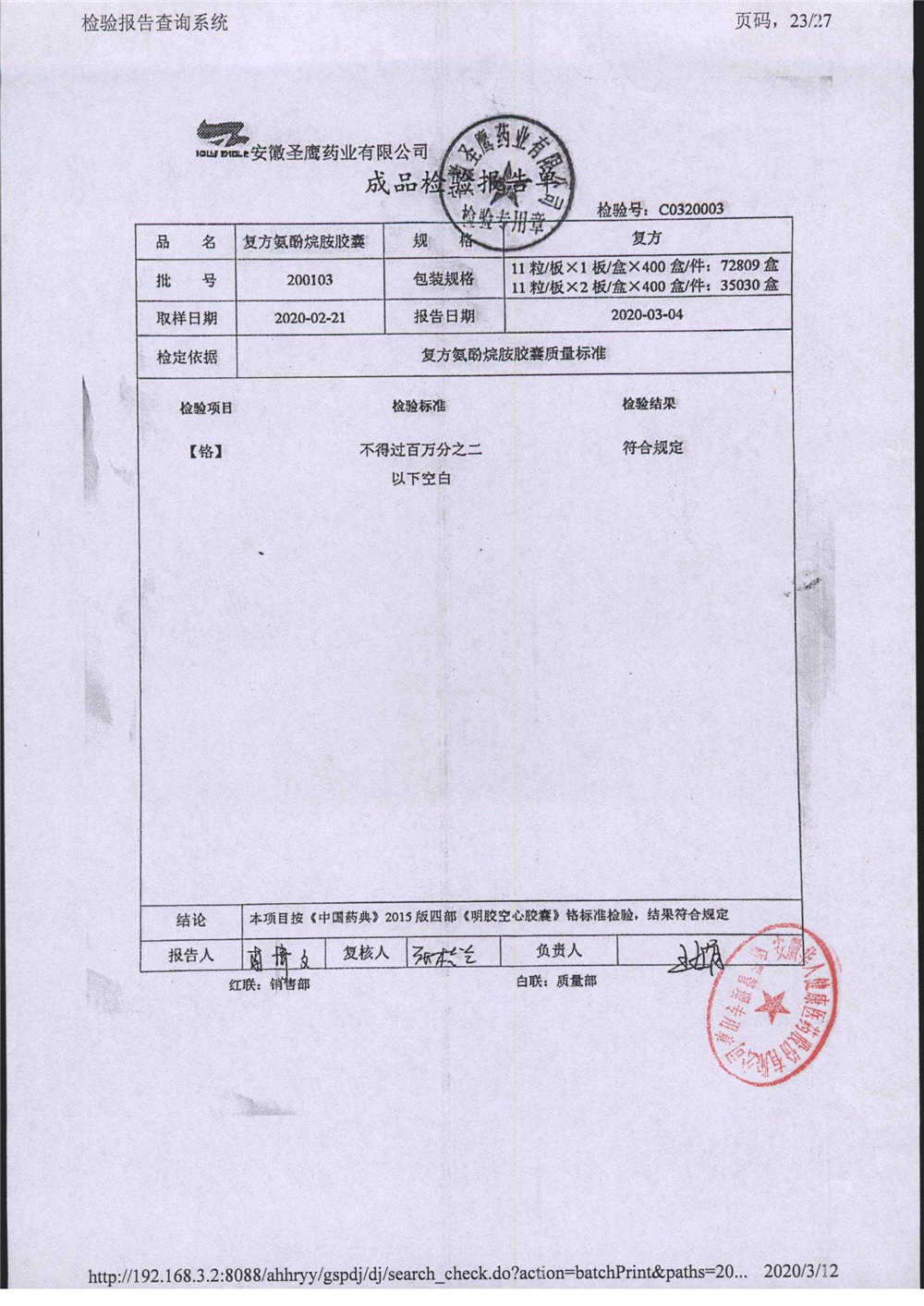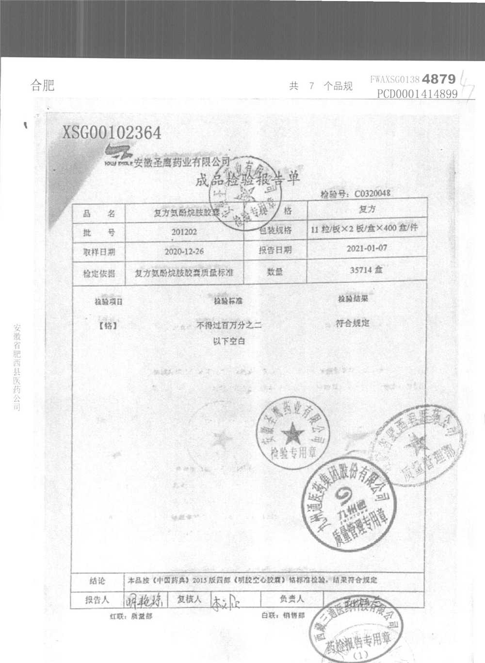 | 復方氨酚烷胺膠囊 | 11s*1 | 201202(2/2) | 查看詳情 |