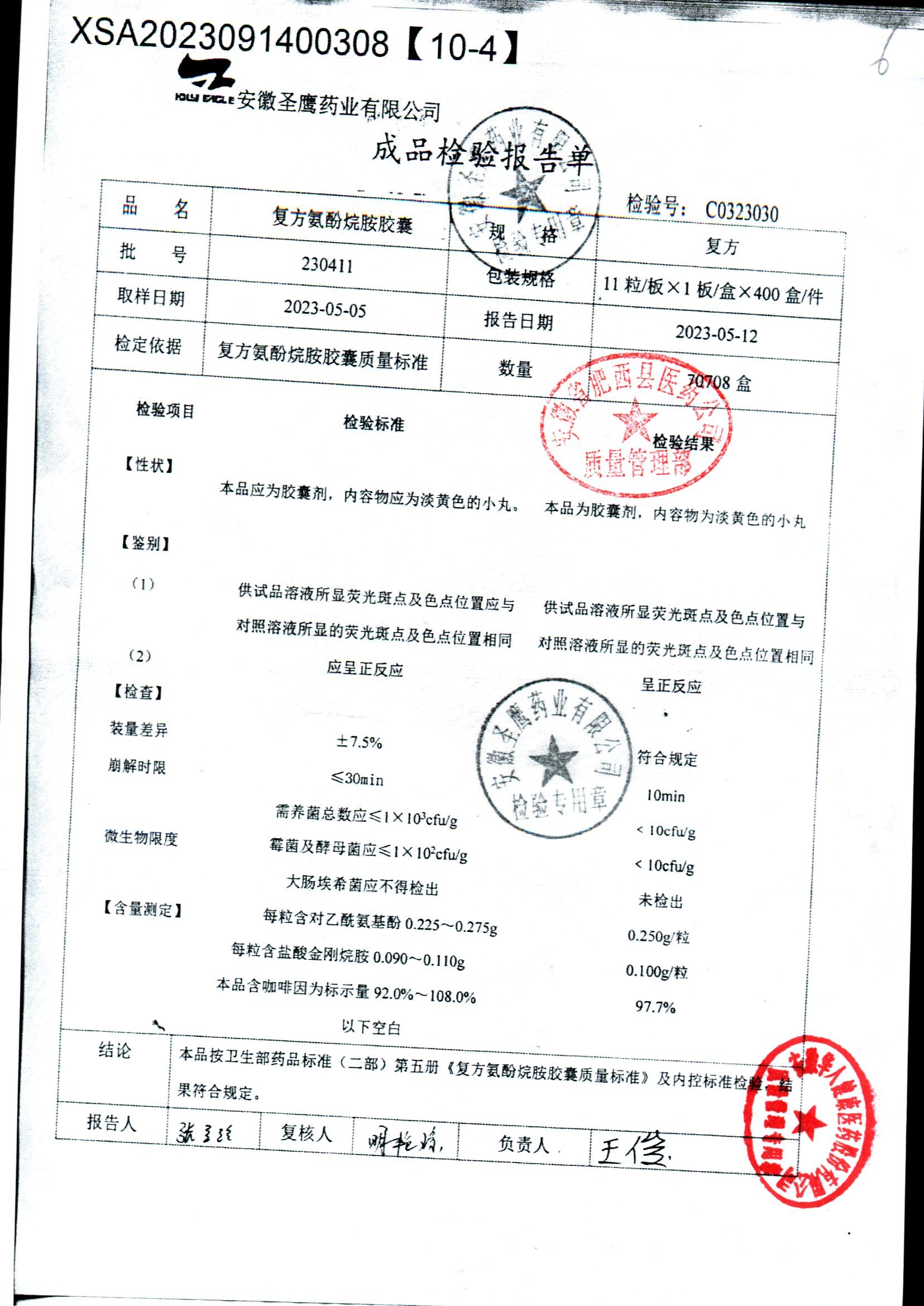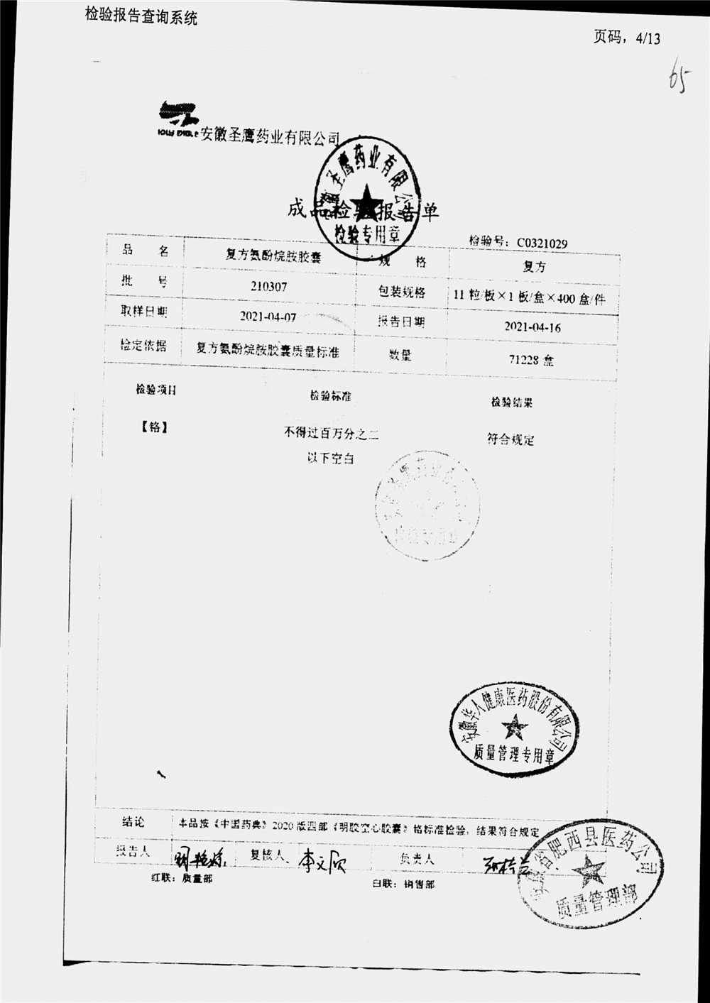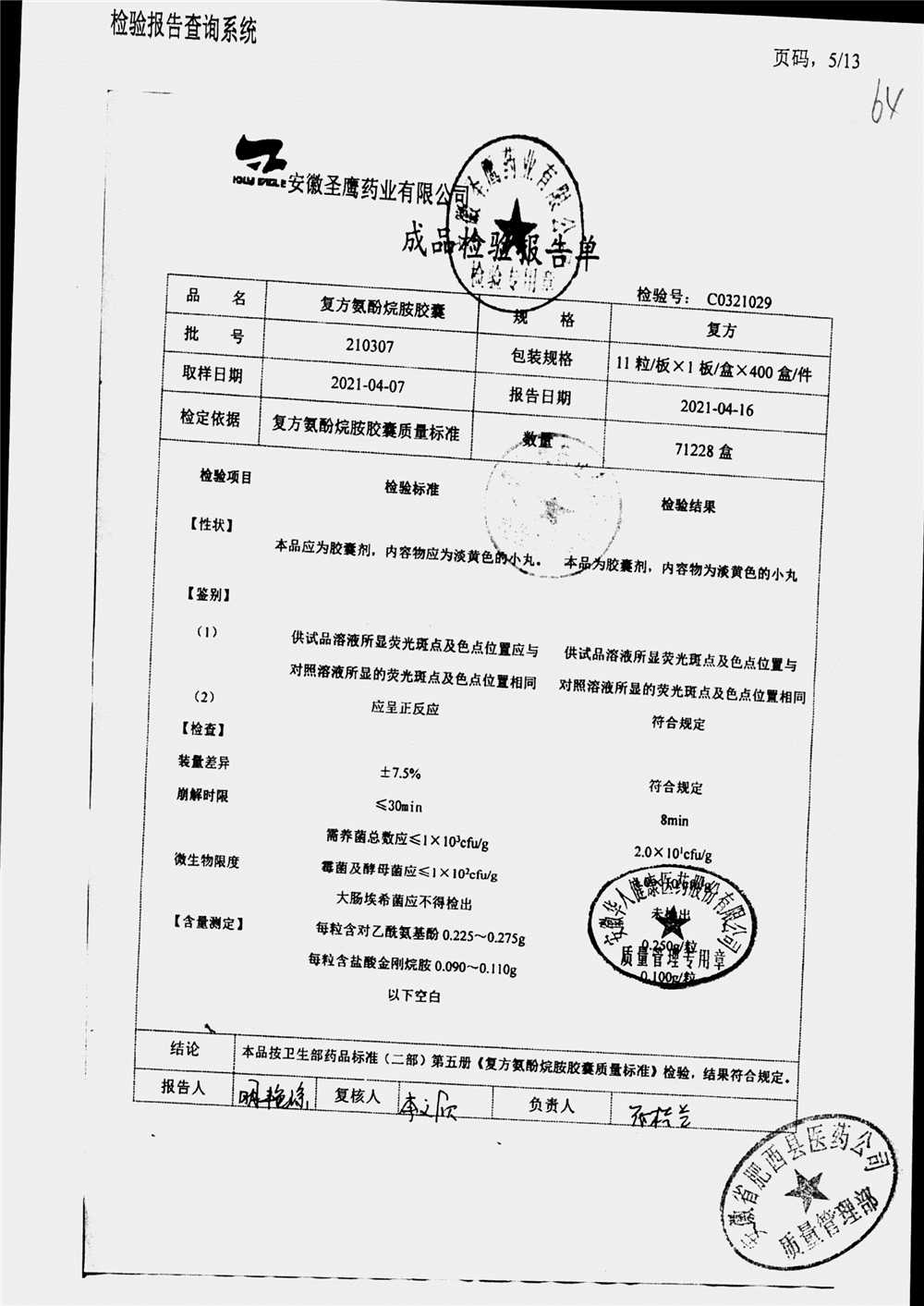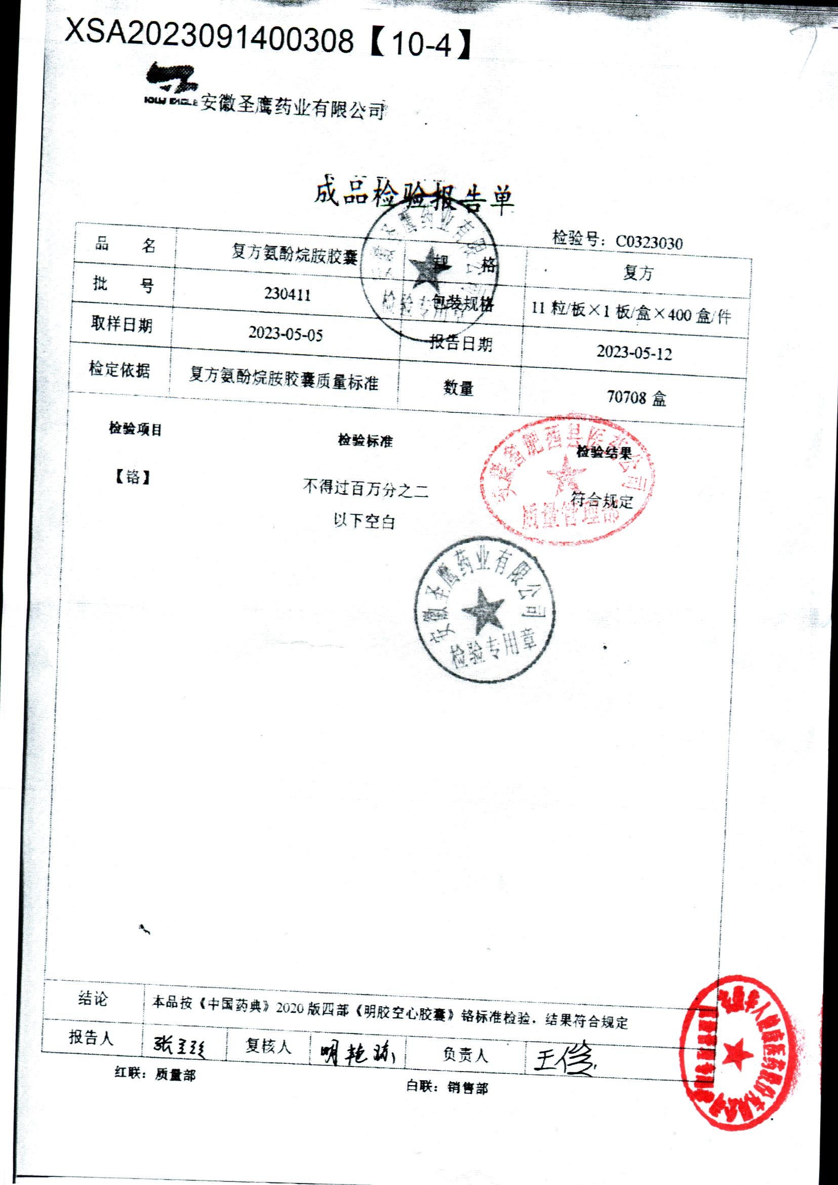 | 復方氨酚烷胺膠囊 | 11s*1 | 230411/2 | 查看詳情 |