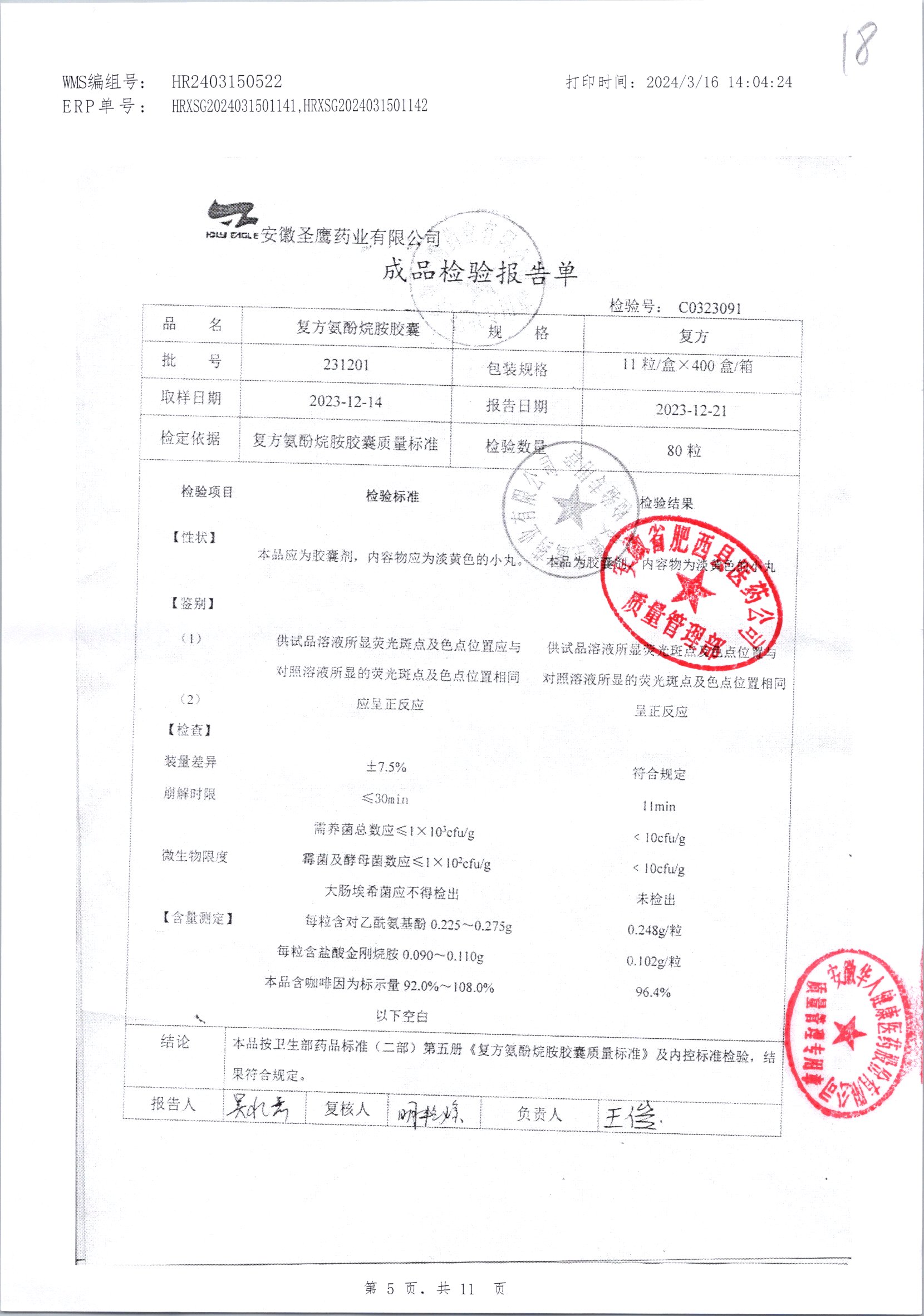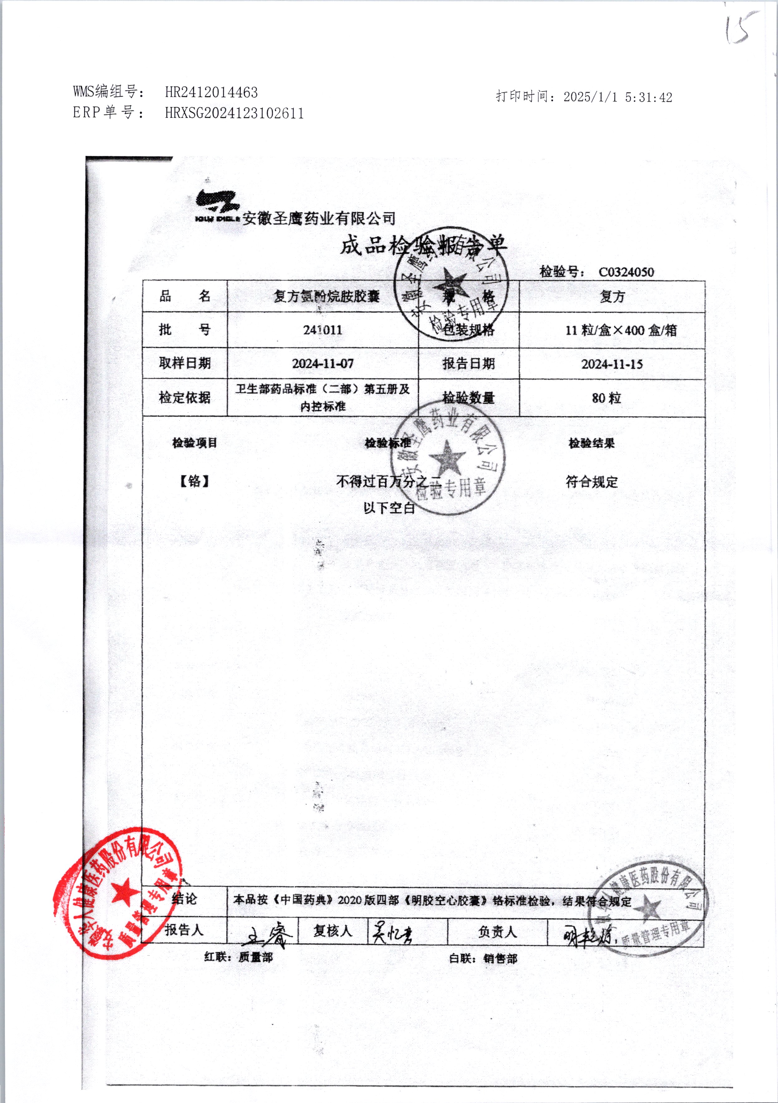 | 復方氨酚烷胺膠囊 | 11s*1 | 241011/2 | 查看詳情 |