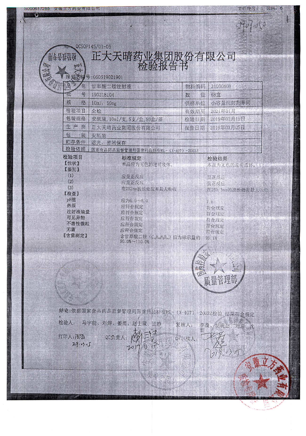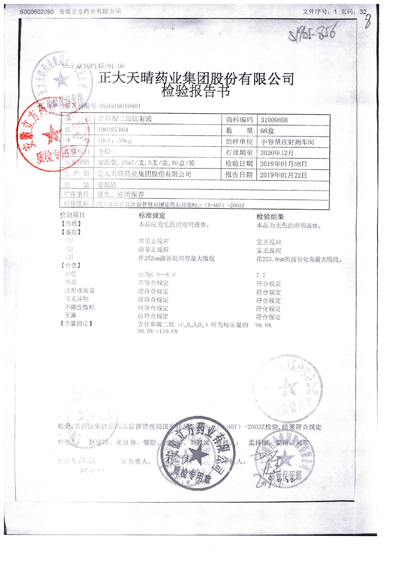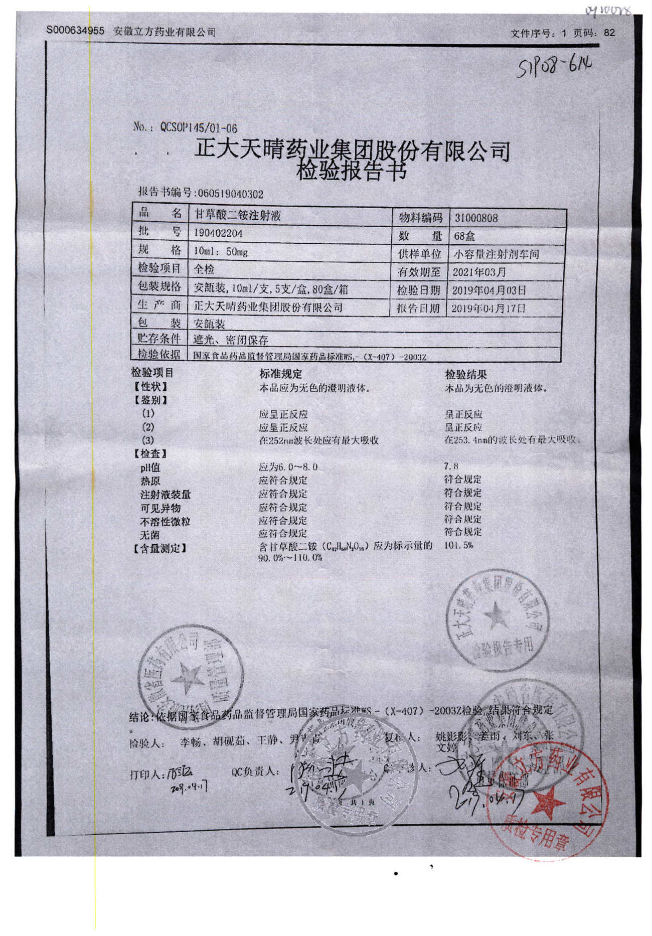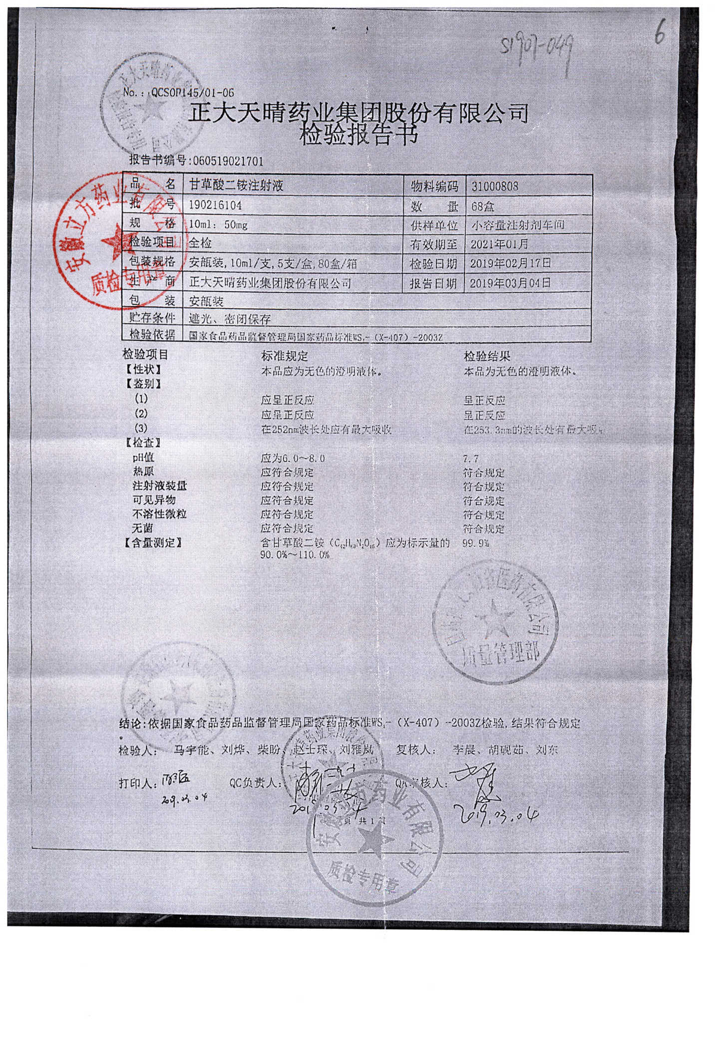 | 甘草酸二胺注射液 | 10ml:50mg | 190218104 | 查看詳情 |