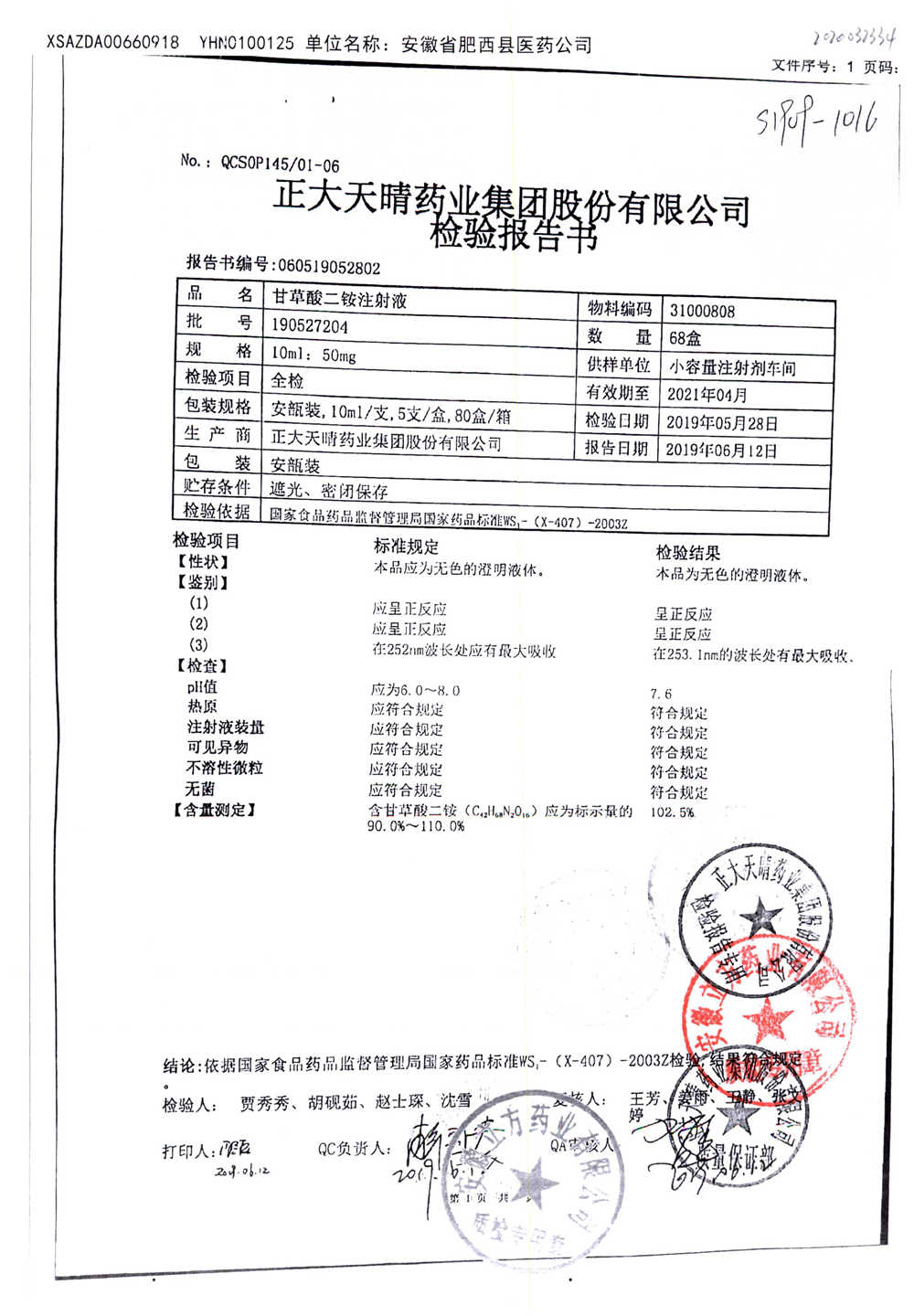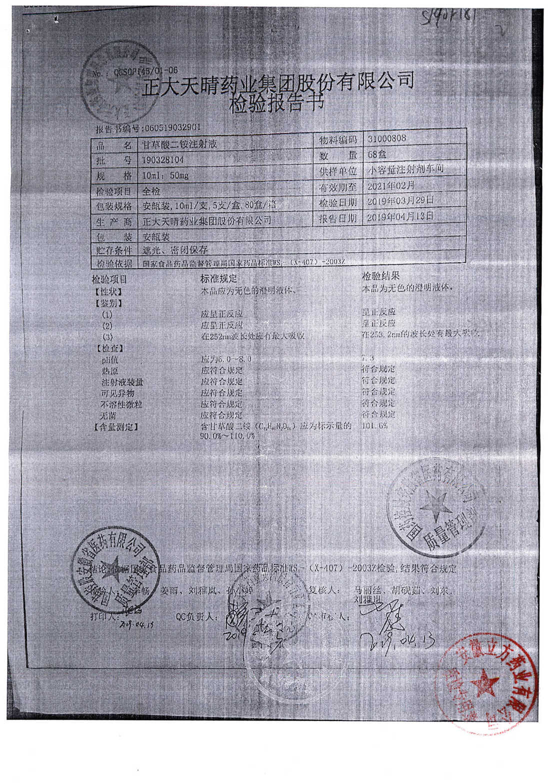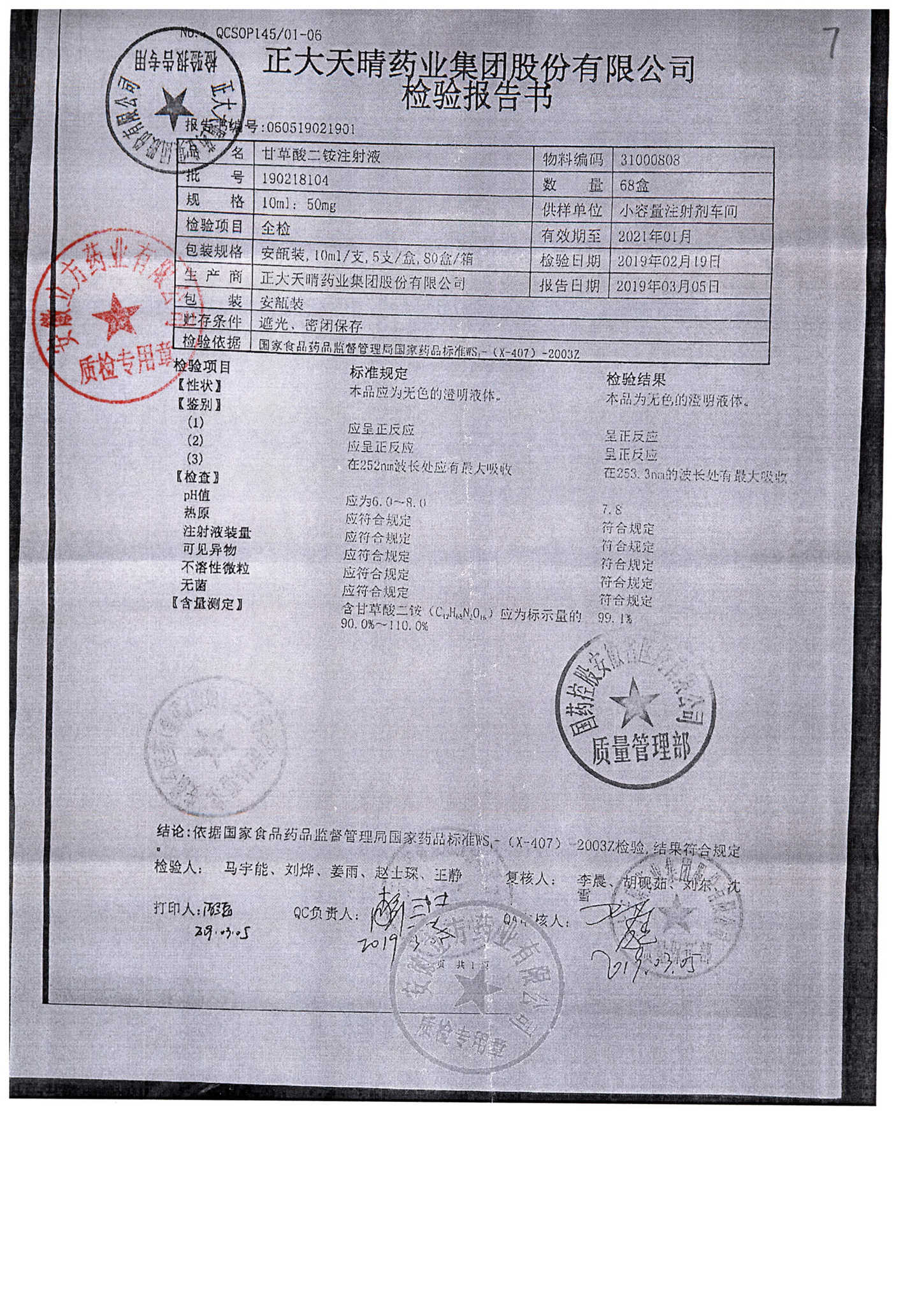 | 甘草酸二胺注射液 | 10ml:50mg | 190527204 | 查看詳情 |