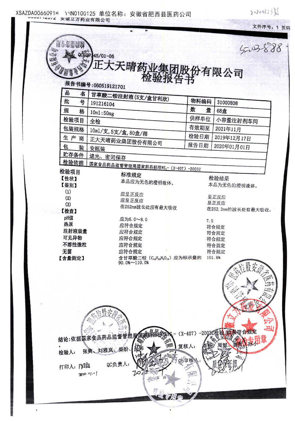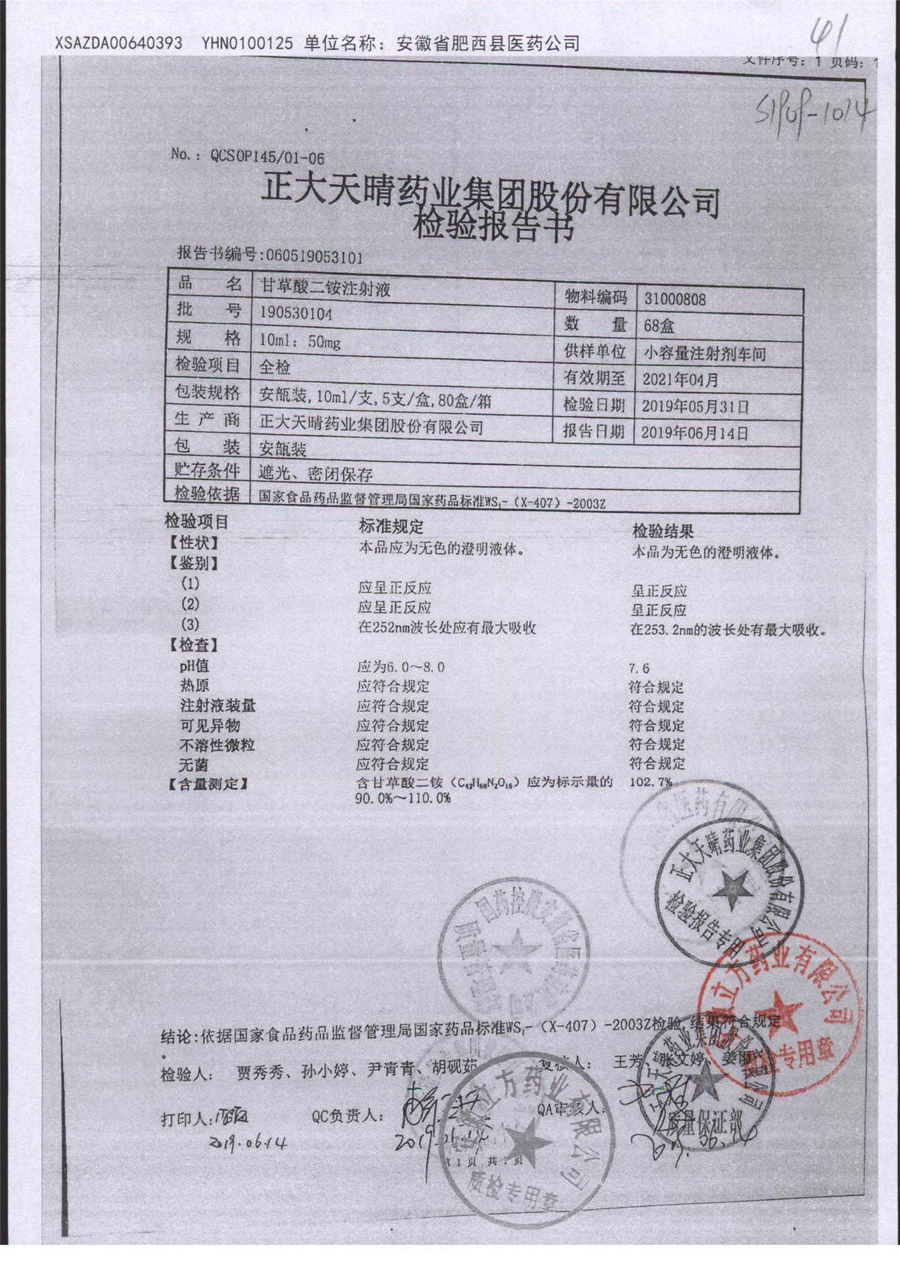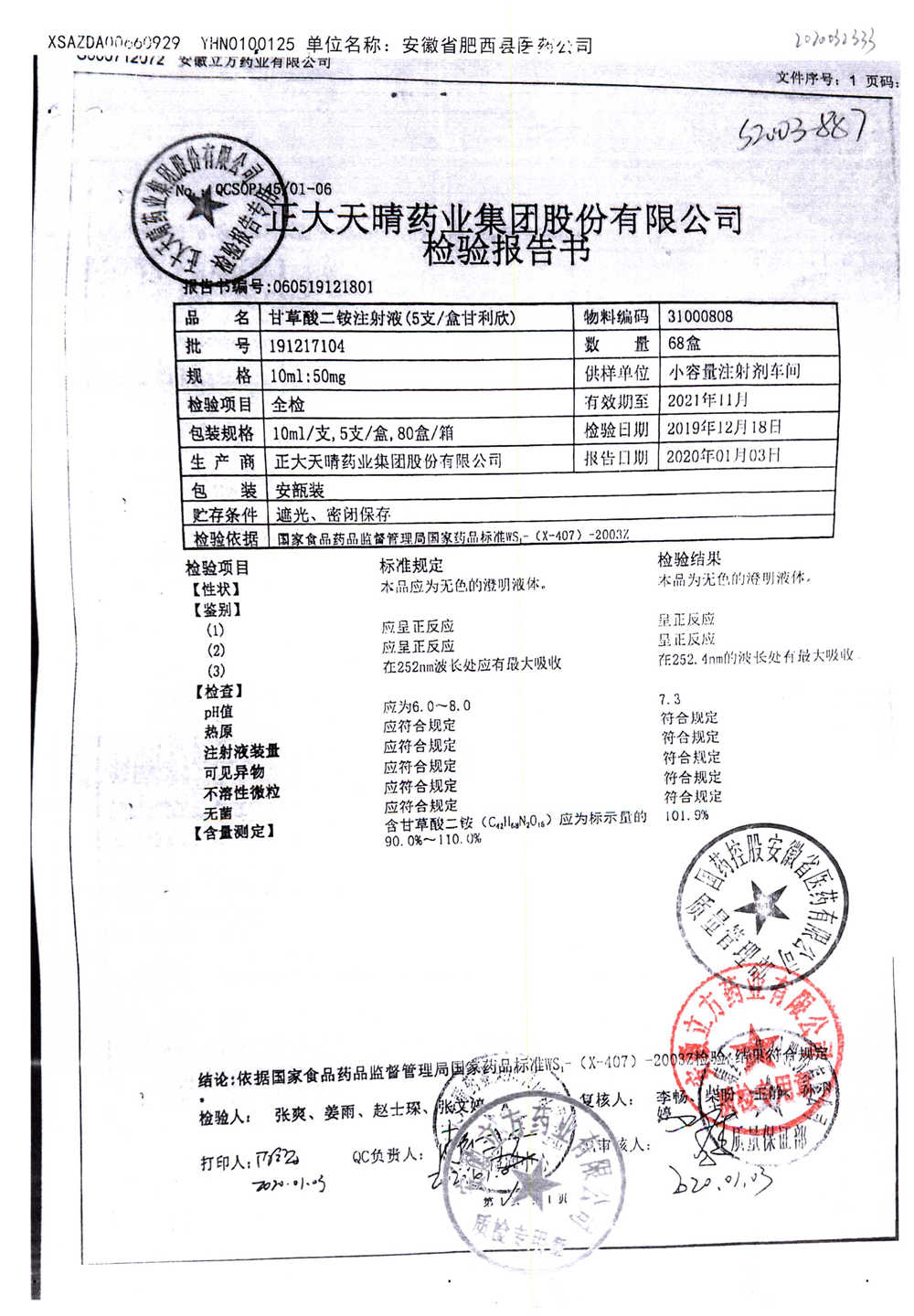 | 甘草酸二胺注射液 | 10ml:50mg | 190527204 | 查看詳情 |
