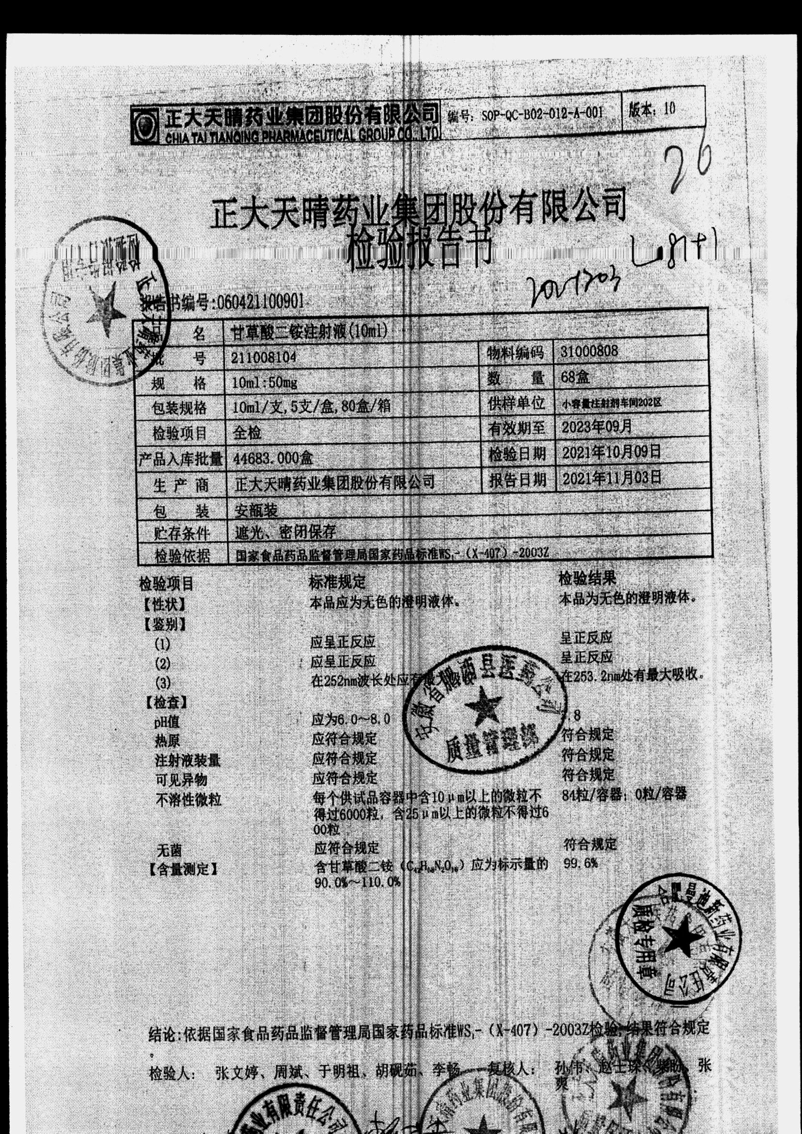 | 甘草酸二胺注射液 | 10ml:50mg | 210908104 | 查看詳情 |
