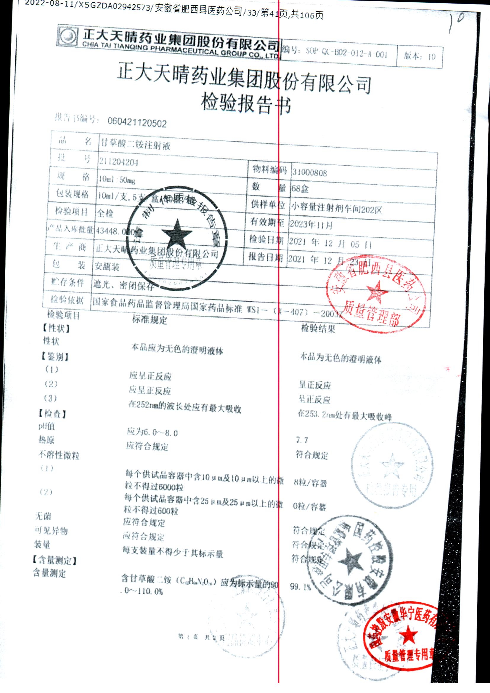| 甘草酸二胺注射液 | 10ml:50mg | 211204204 | 查看詳情 |