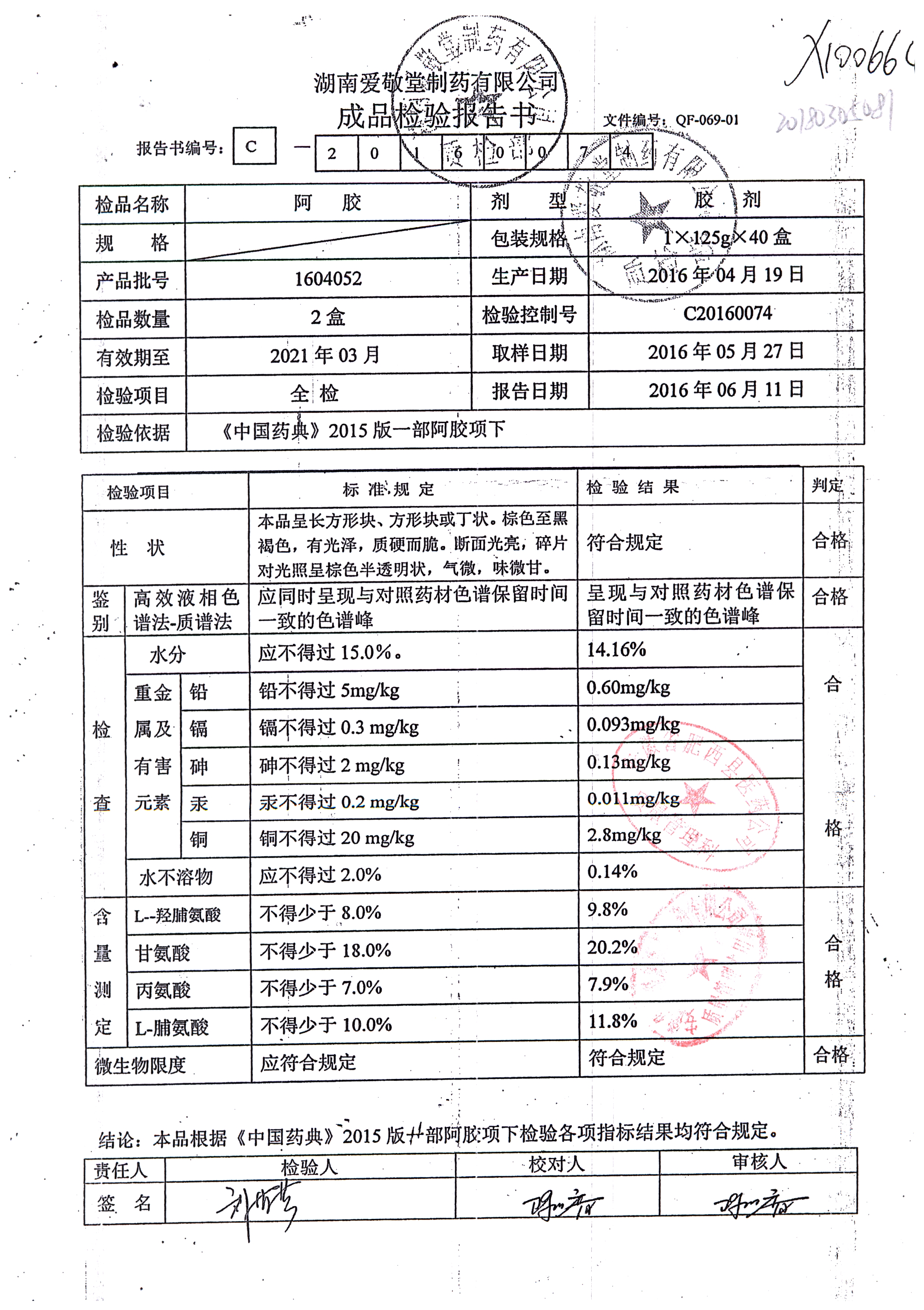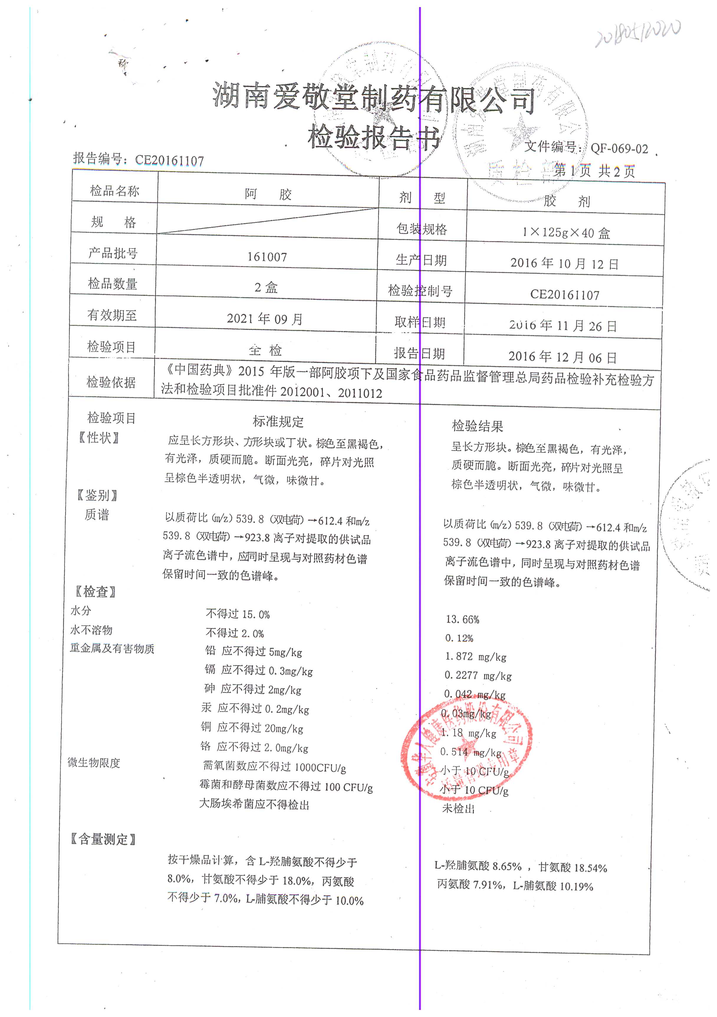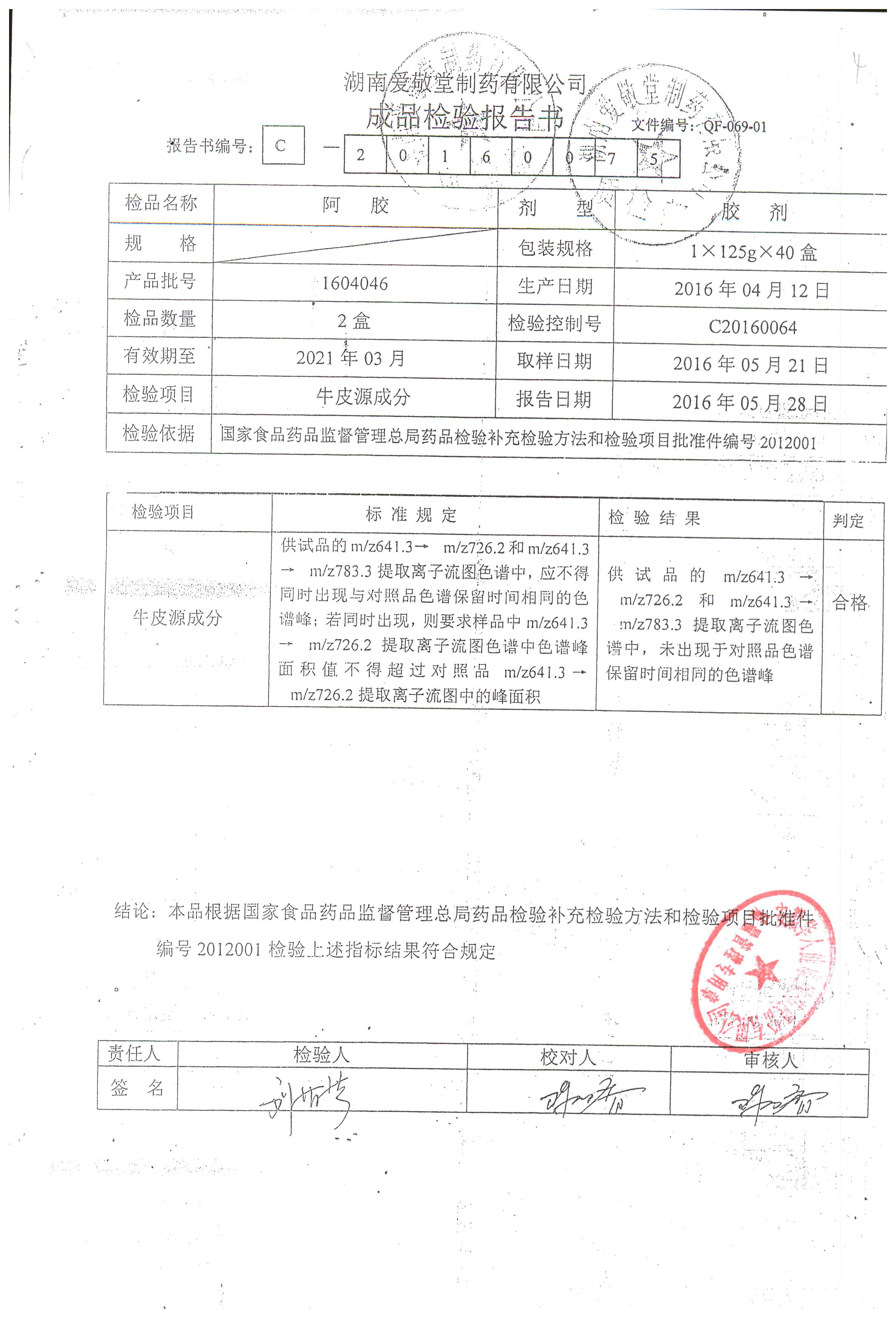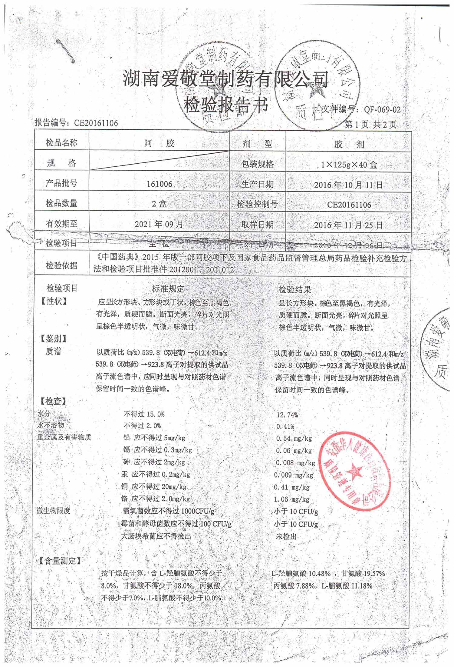 | 阿膠 | 125g/盒 | 161006(2/2) | 查看詳情 |
