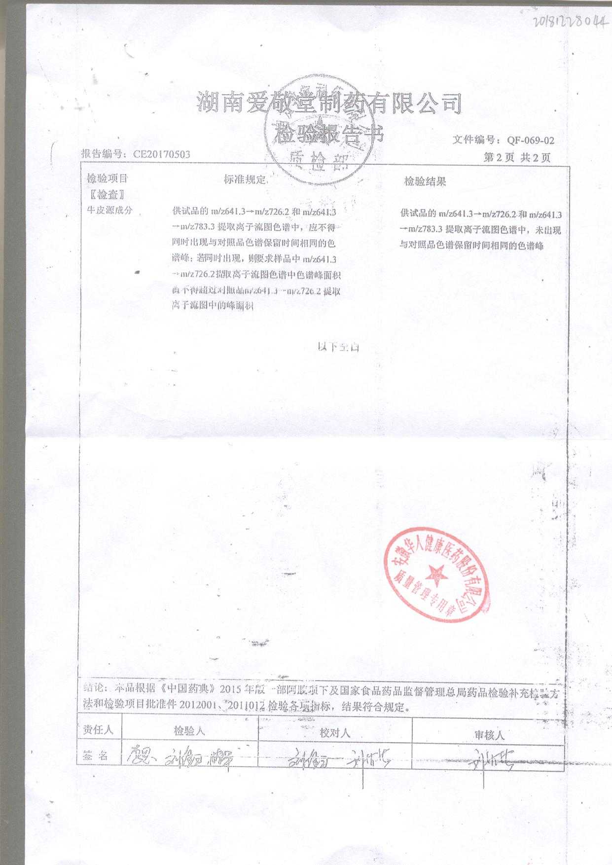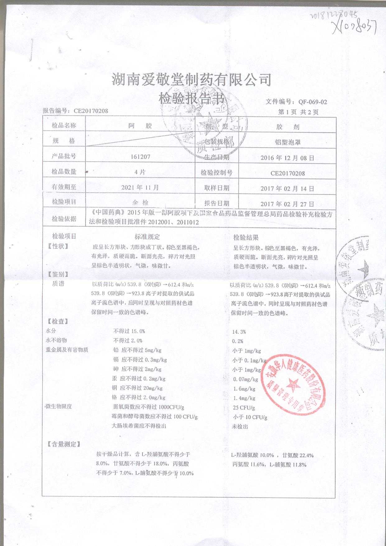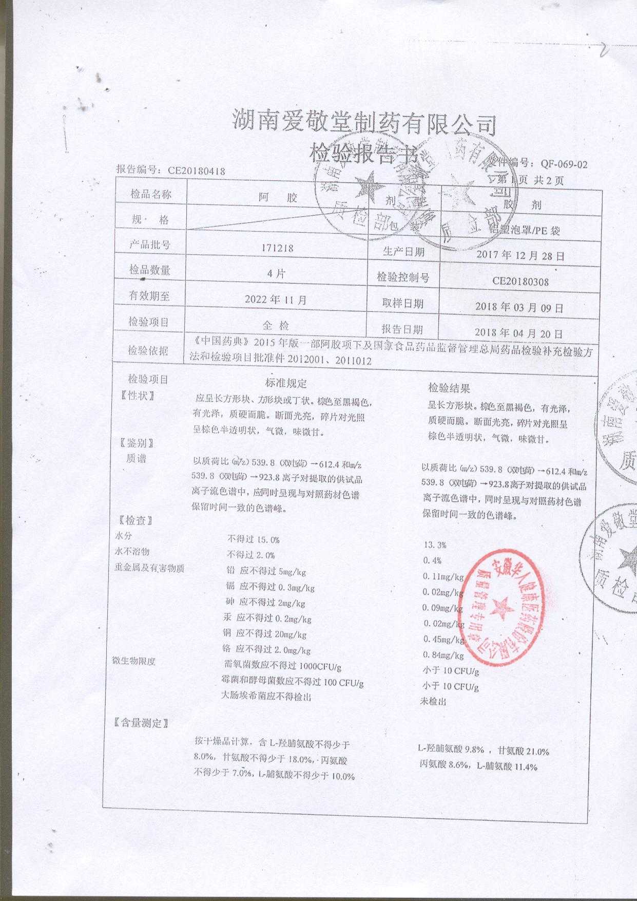 | 阿膠 | 125g/盒 | 171218(2/2) | 查看詳情 |