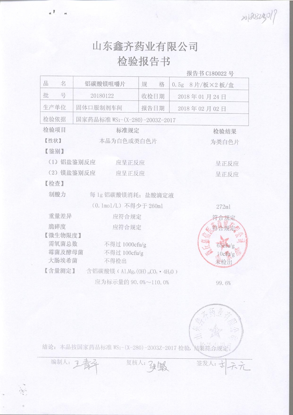 鋁碳酸鎂咀嚼片 0.5g*16s 20180122 查看詳情