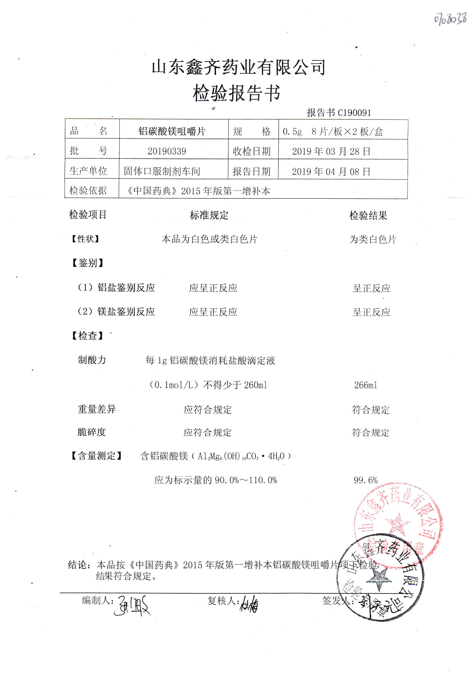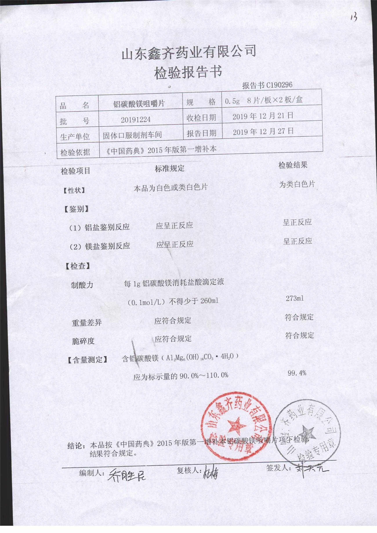 鋁碳酸鎂咀嚼片 0.5g*16s 20191224 查看詳情
