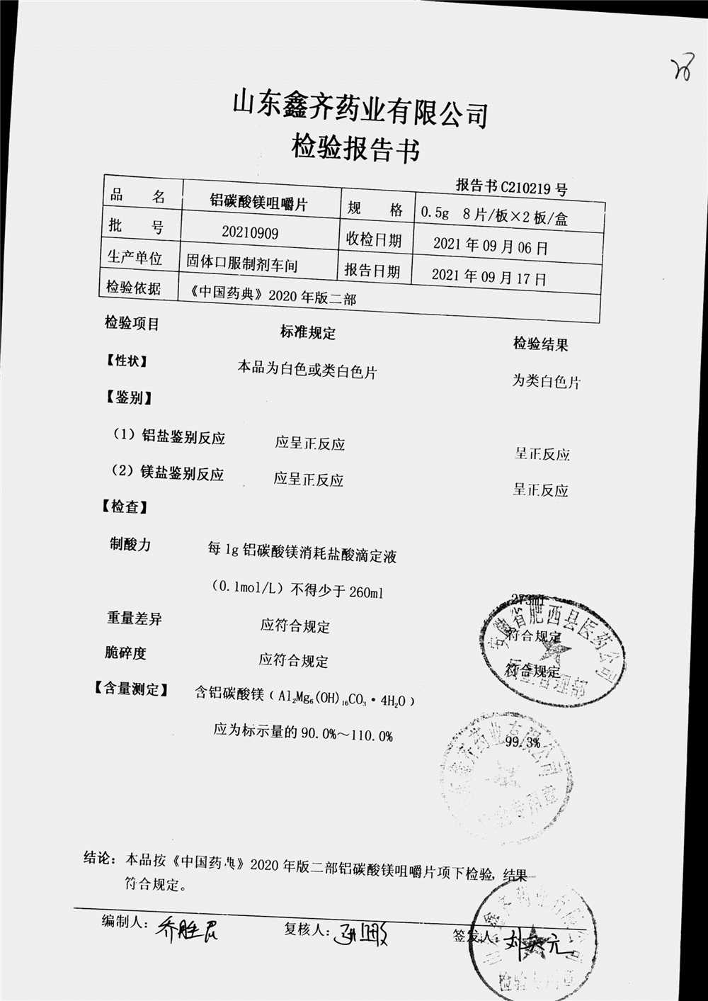 鋁碳酸鎂咀嚼片 0.5g*16s 20210909 查看詳情