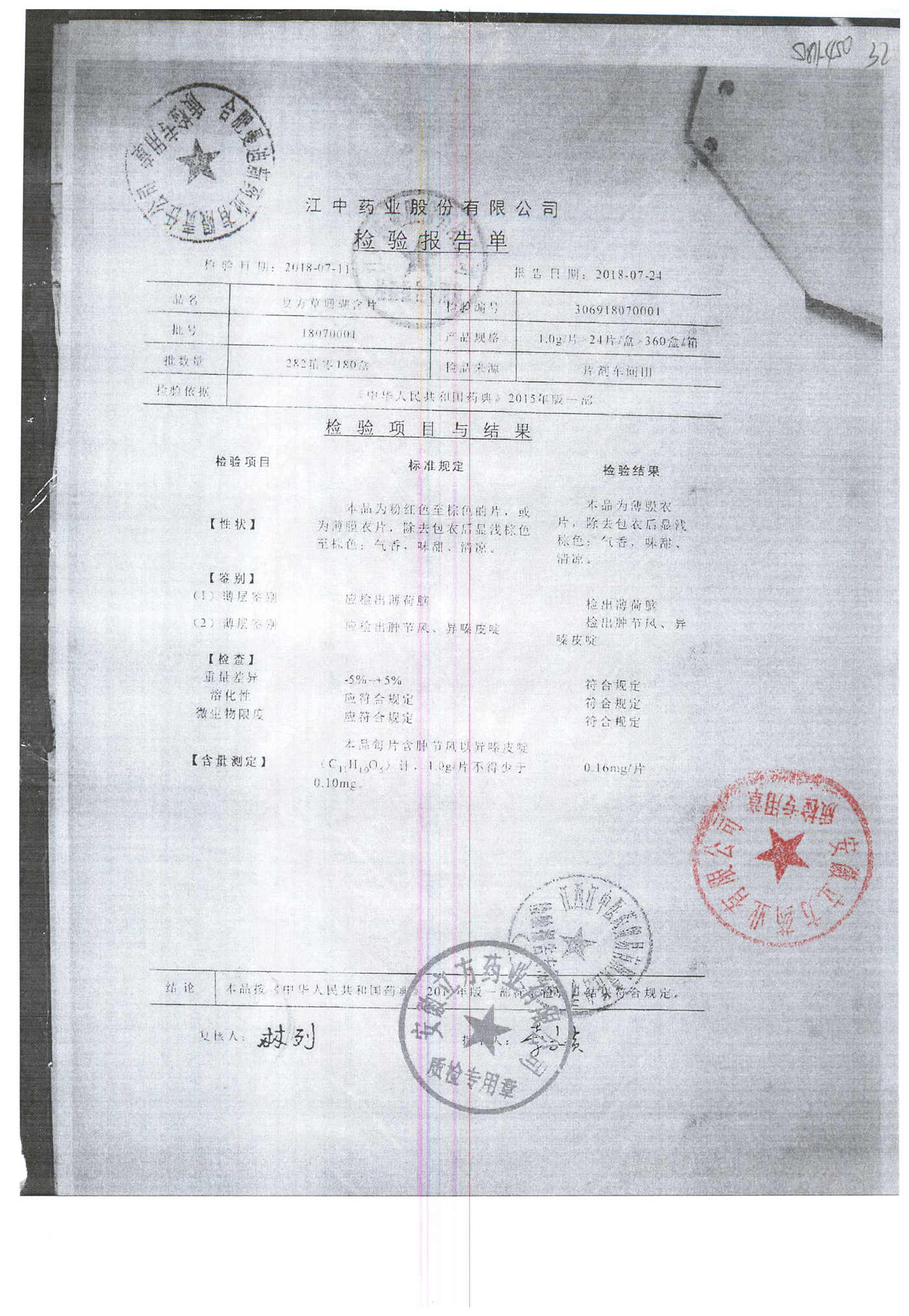 | 名稱(chēng) | 規(guī)格 | 批號(hào) | 藥檢報(bào)告 |
