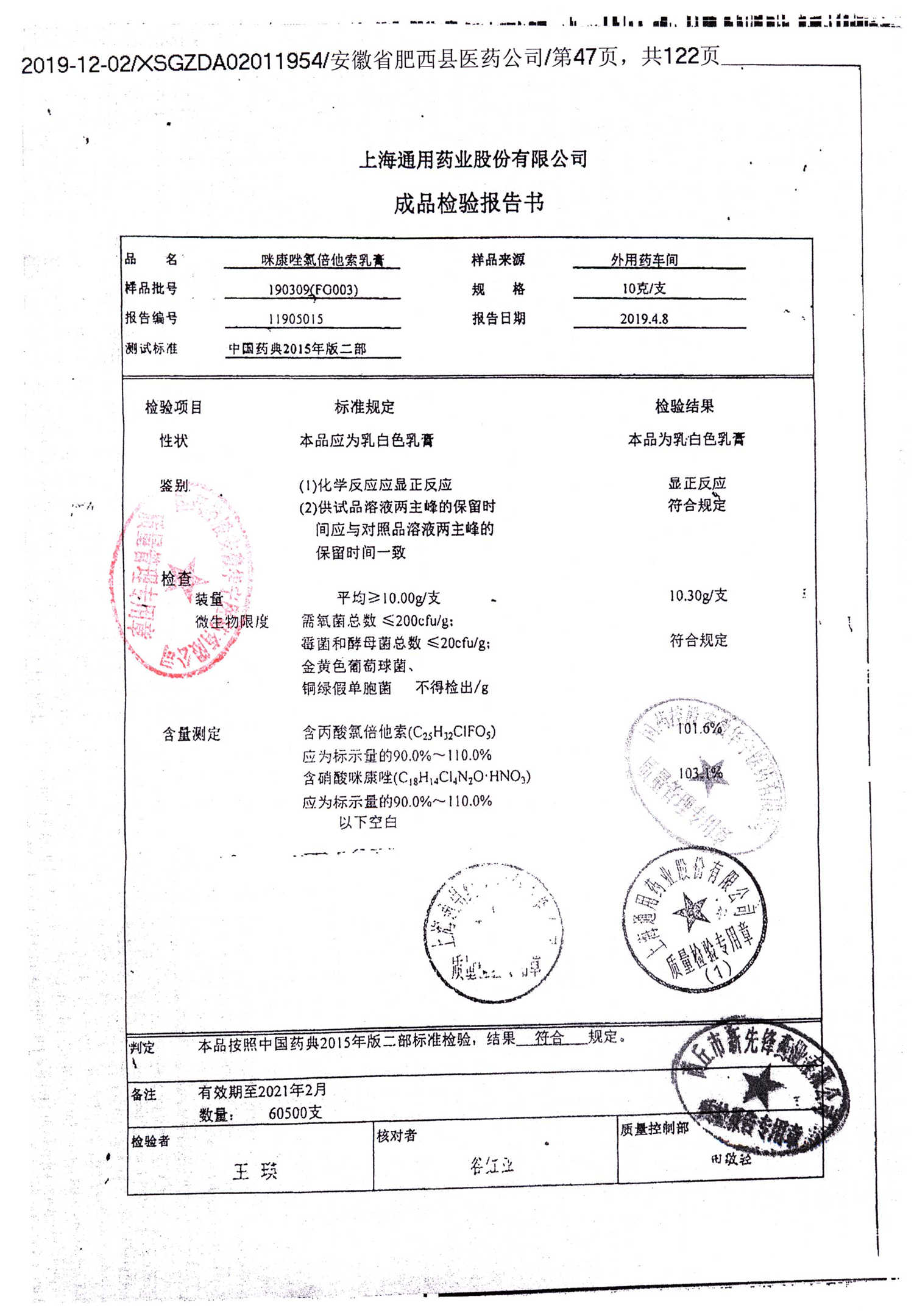 | 咪康唑氯倍他索乳膏 | 10g | 210401 | 查看詳情 |