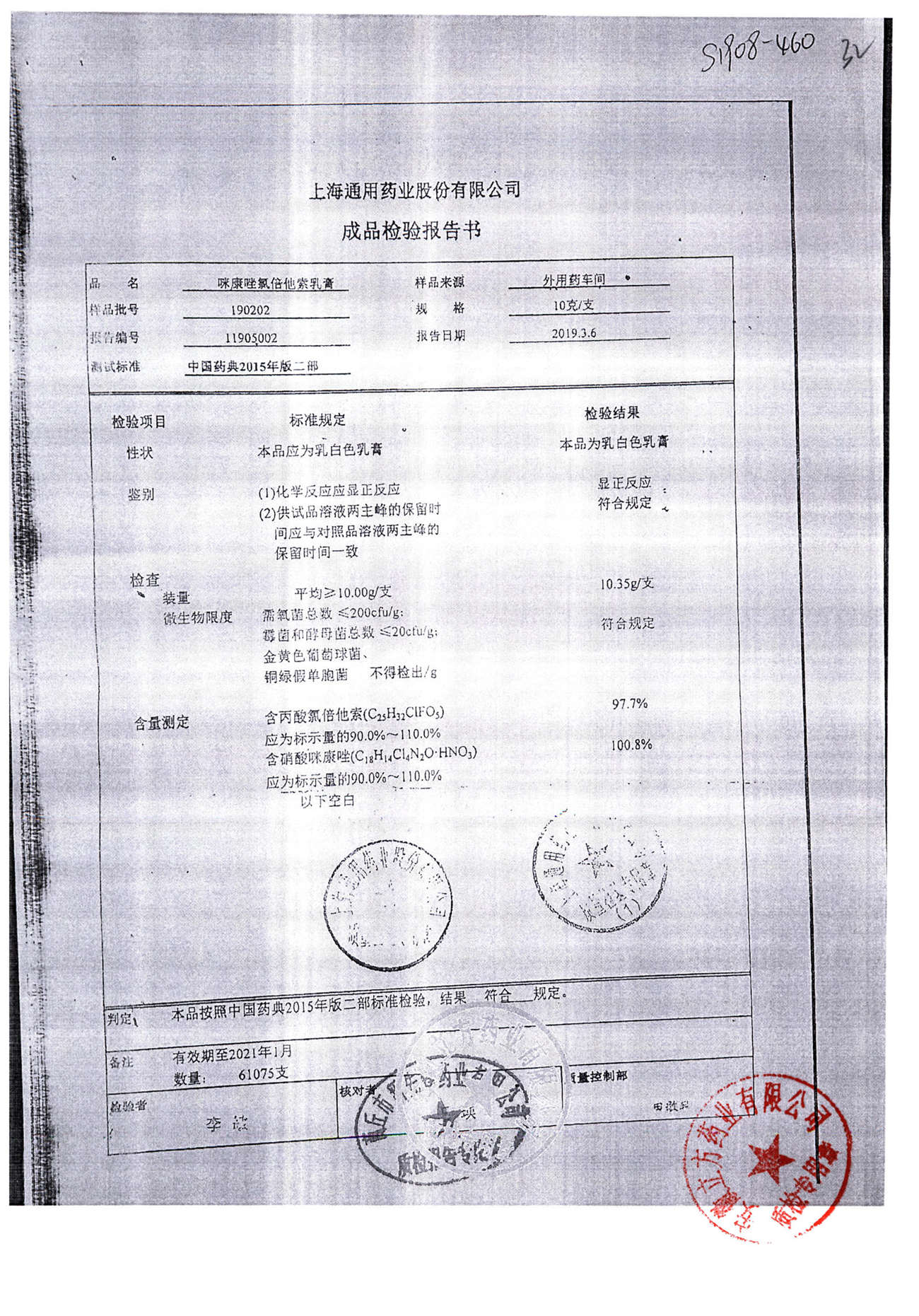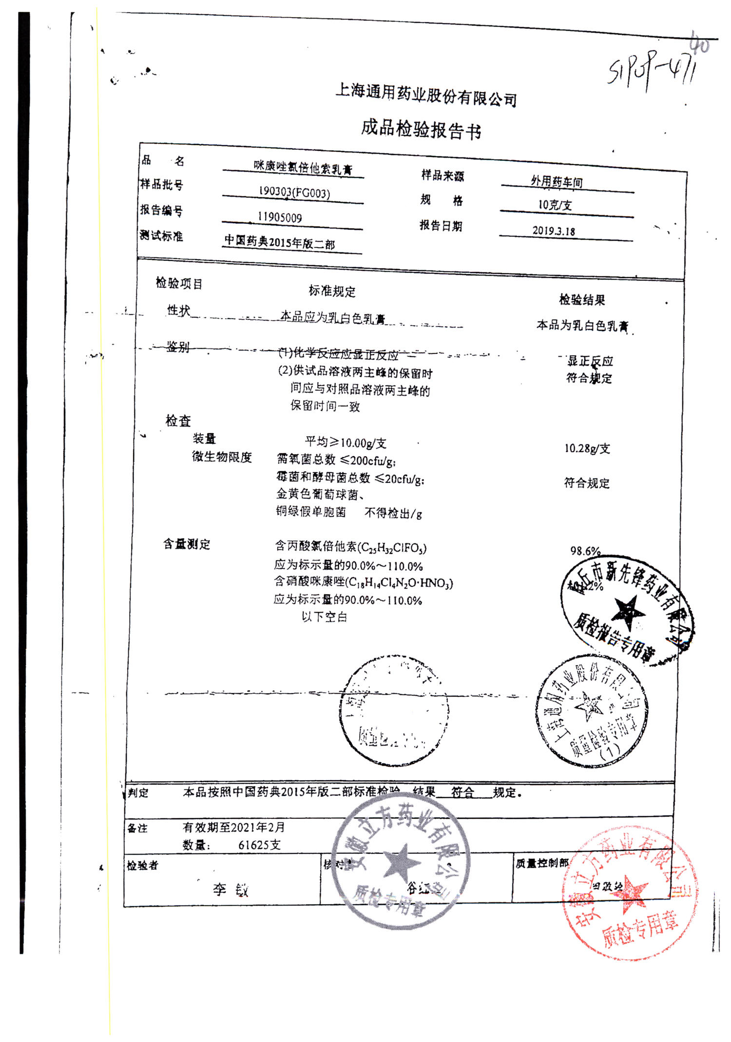 | 咪康唑氯倍他索乳膏 | 10g | 180605 | 查看詳情 |