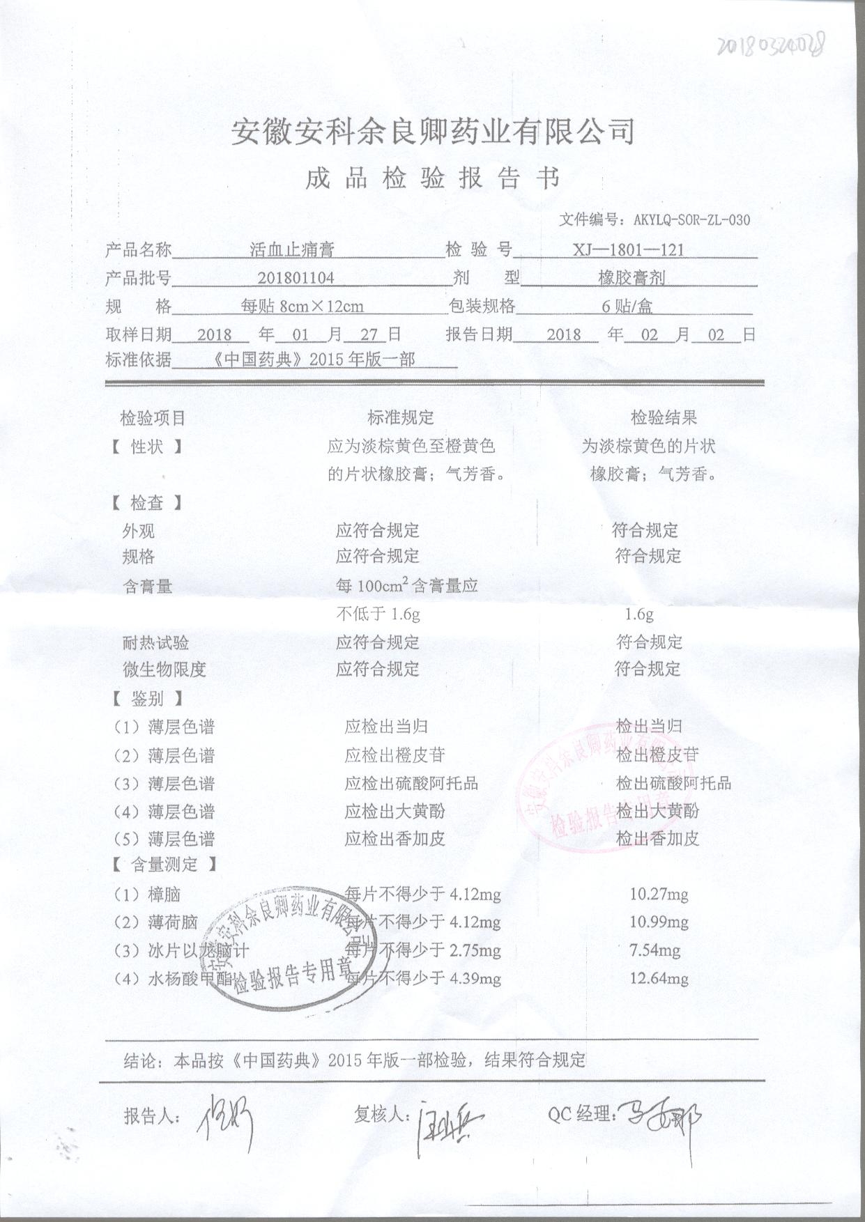 | 活血止痛膏 | 8cm*12cm*6貼 | 20190402 | 查看詳情 |