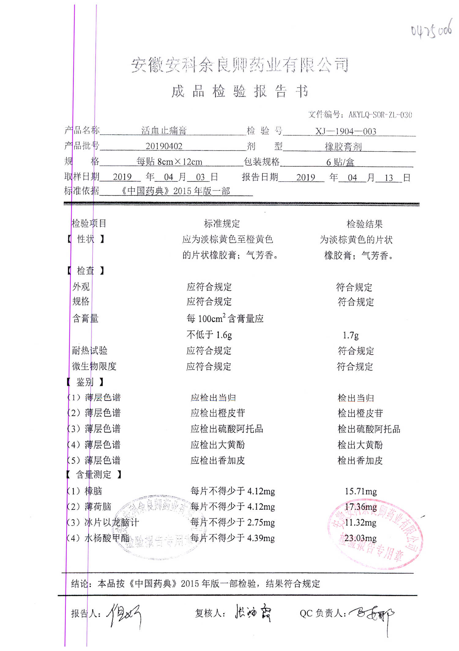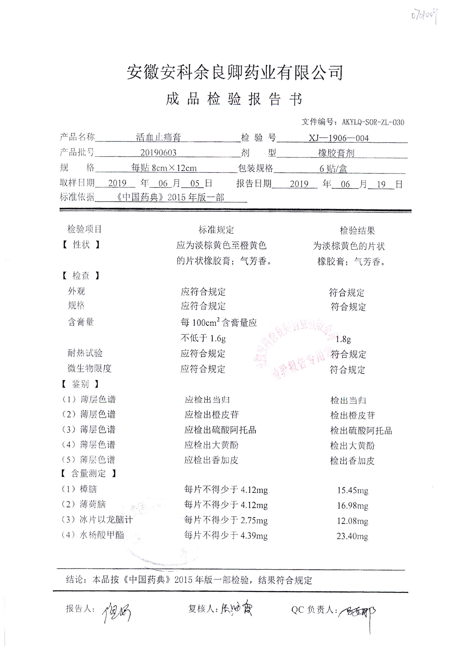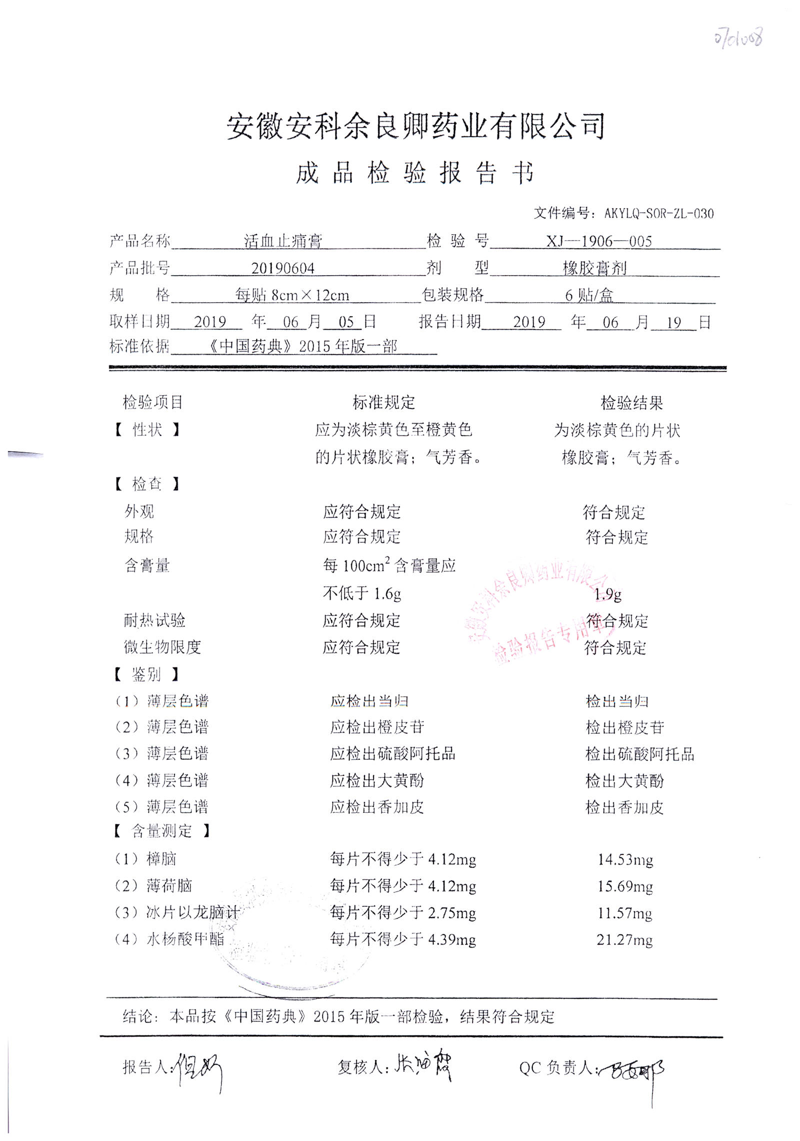 | 活血止痛膏 | 8cm*12cm*6貼 | 20190604 | 查看詳情 |