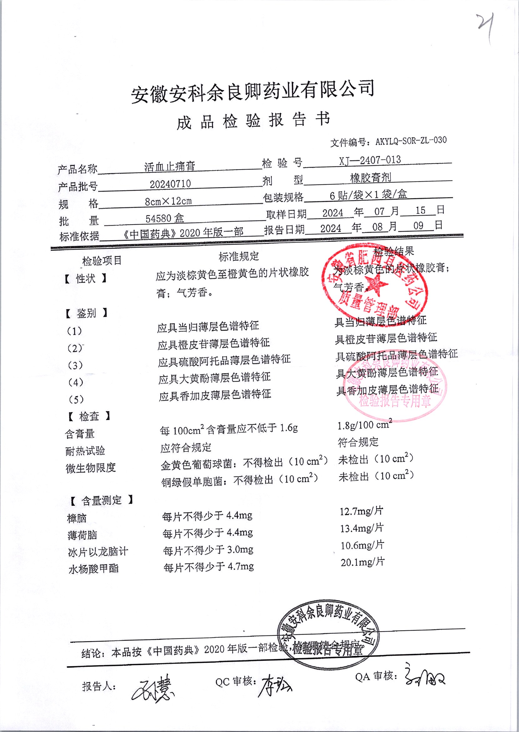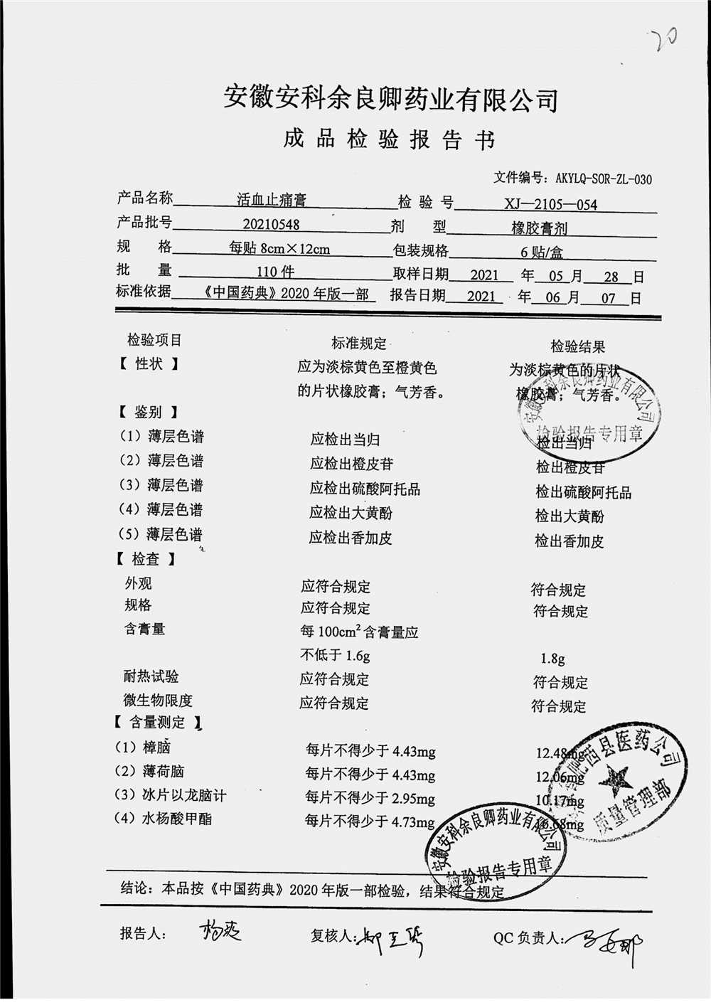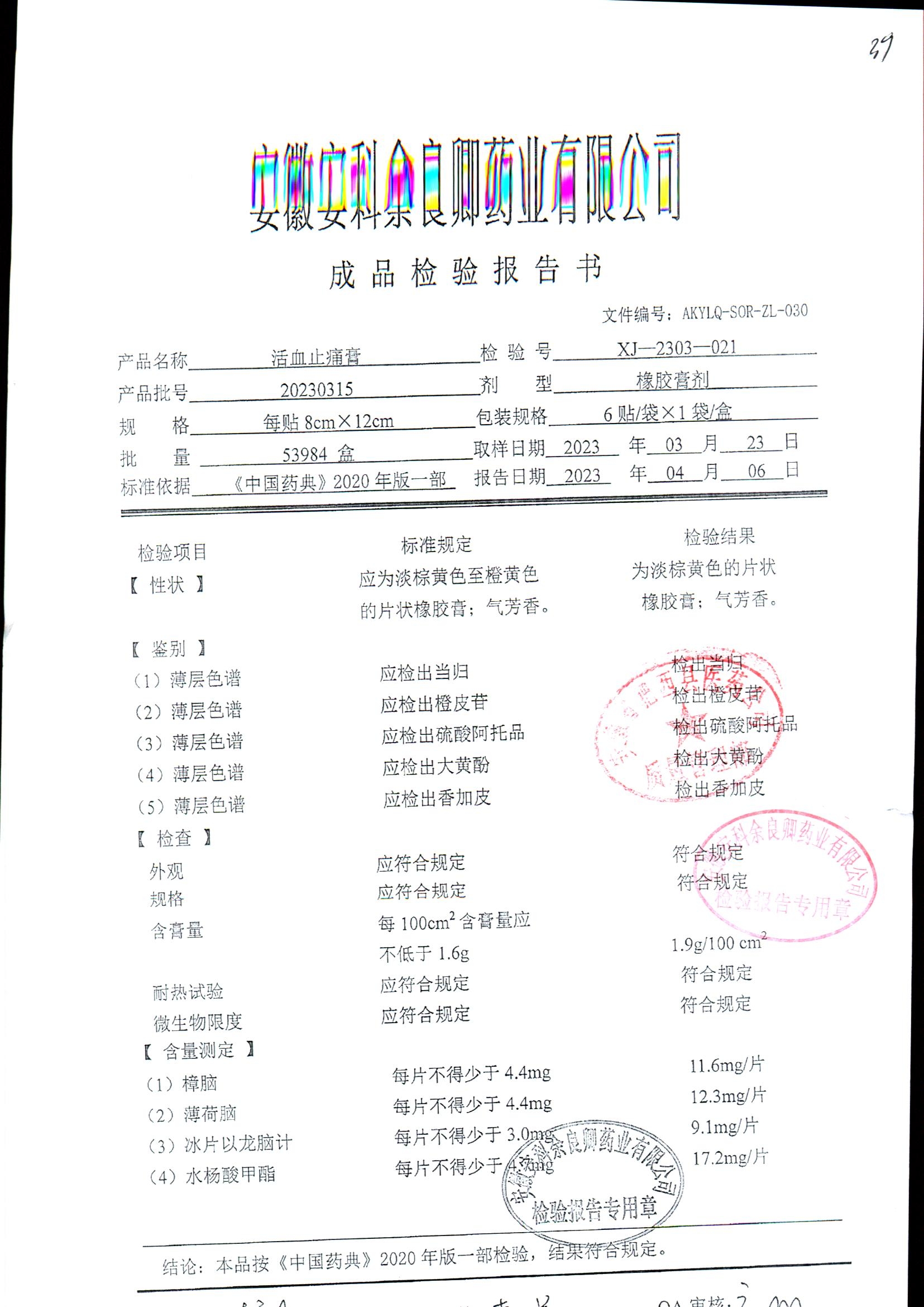 | 活血止痛膏 | 8cm*12cm*6貼 | 20211027 | 查看詳情 |