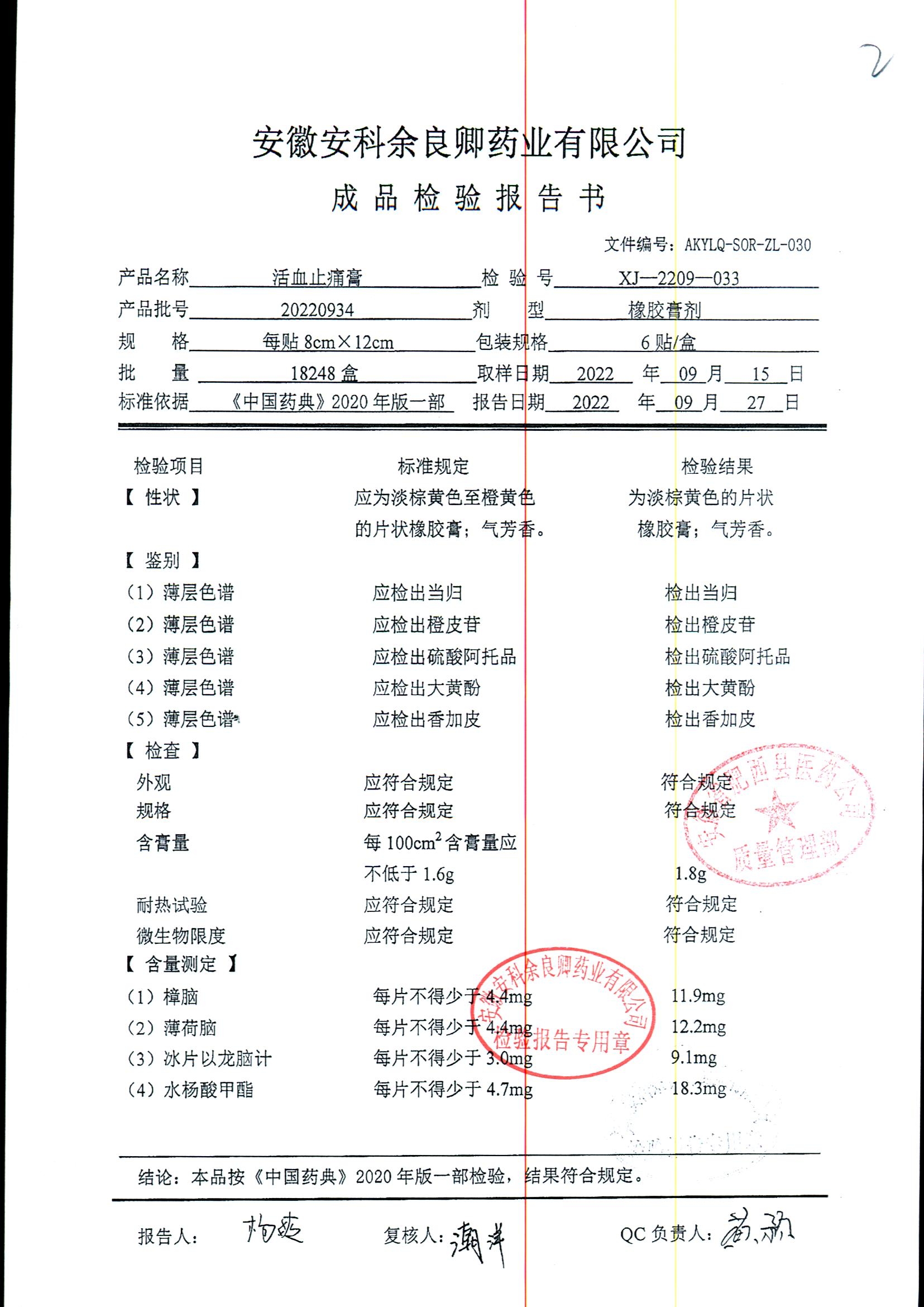| 活血止痛膏 | 8cm*12cm*6貼 | 20220314 | 查看詳情 |