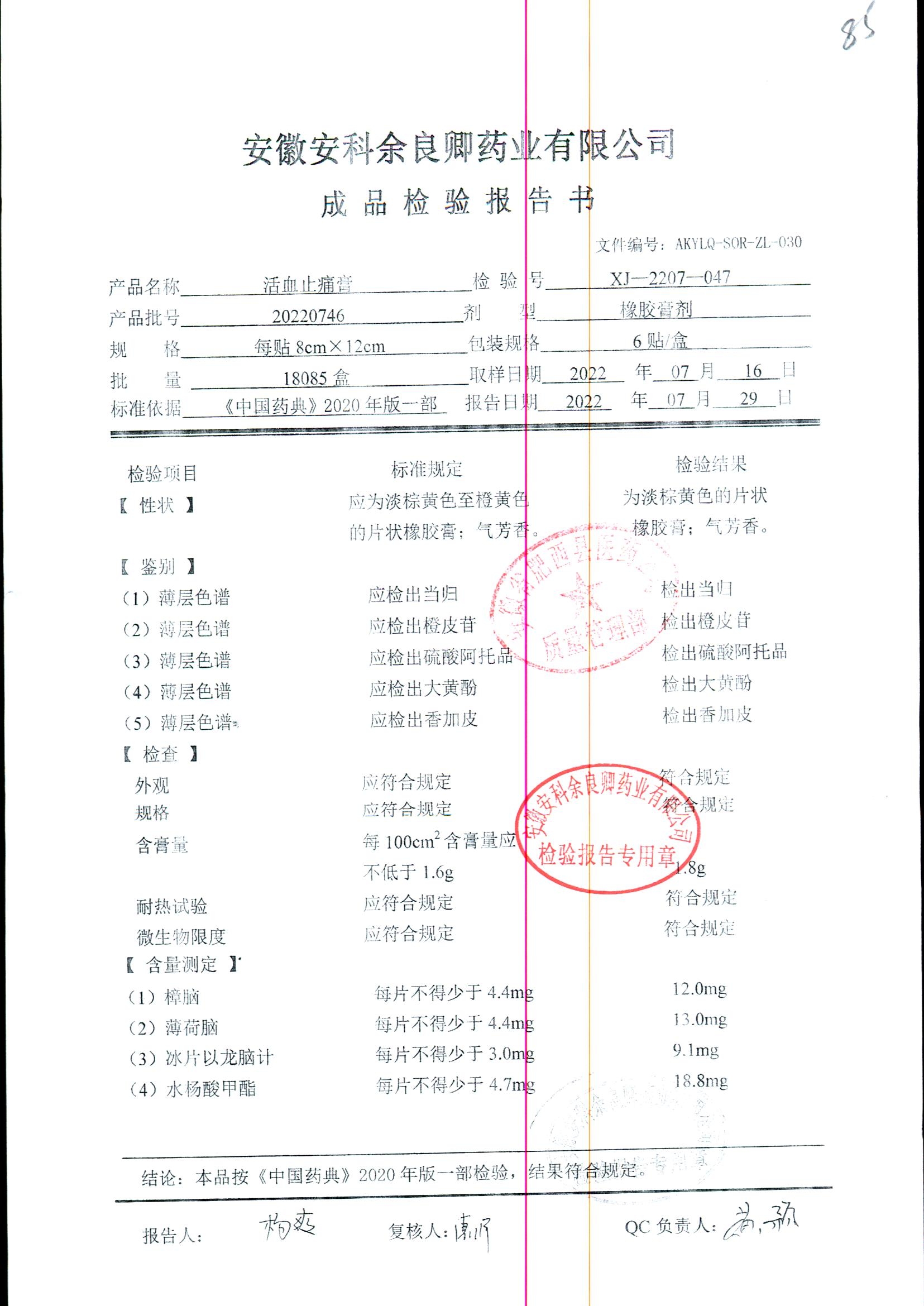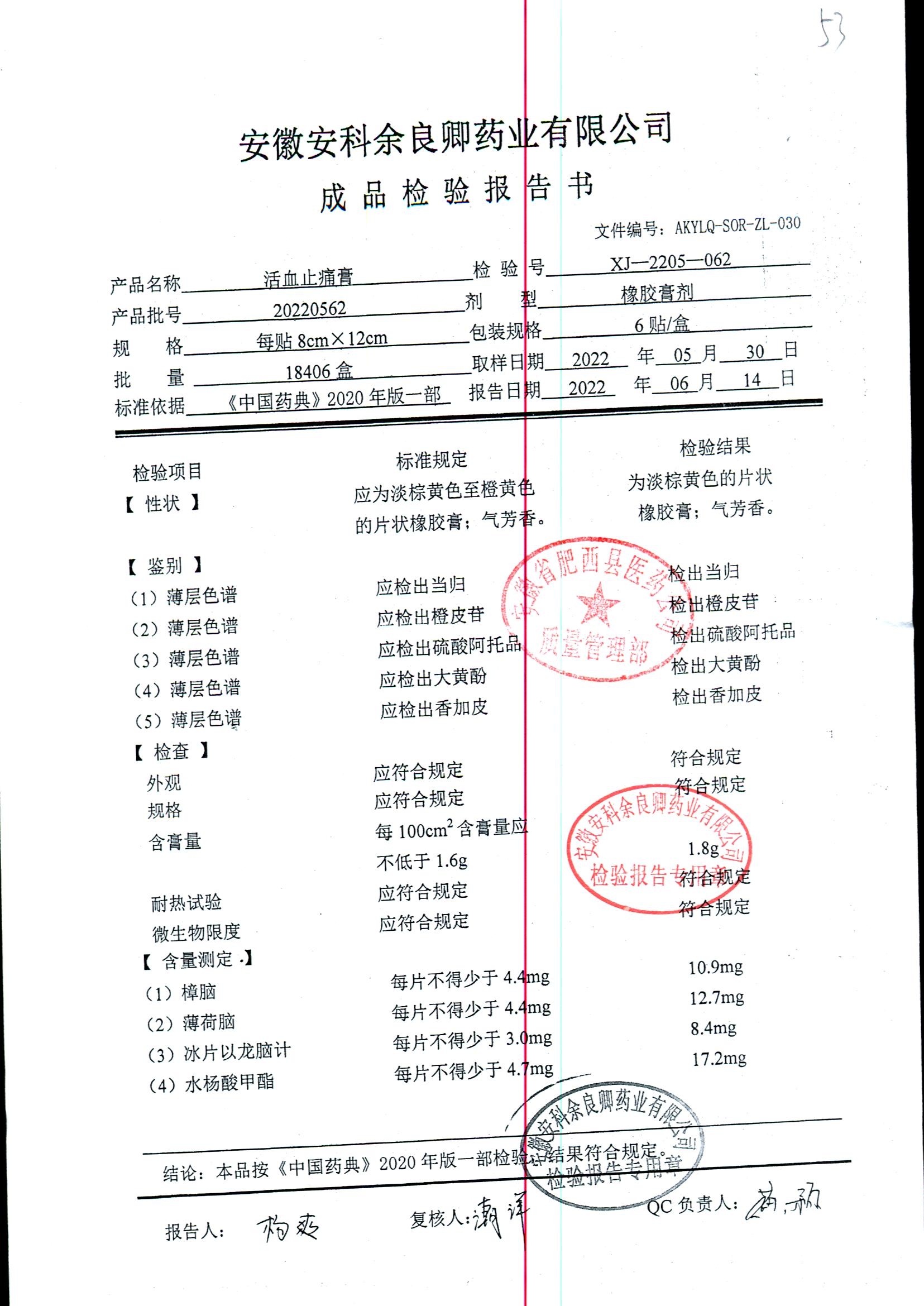 | 活血止痛膏 | 8cm*12cm*6貼 | 20220804 | 查看詳情 |