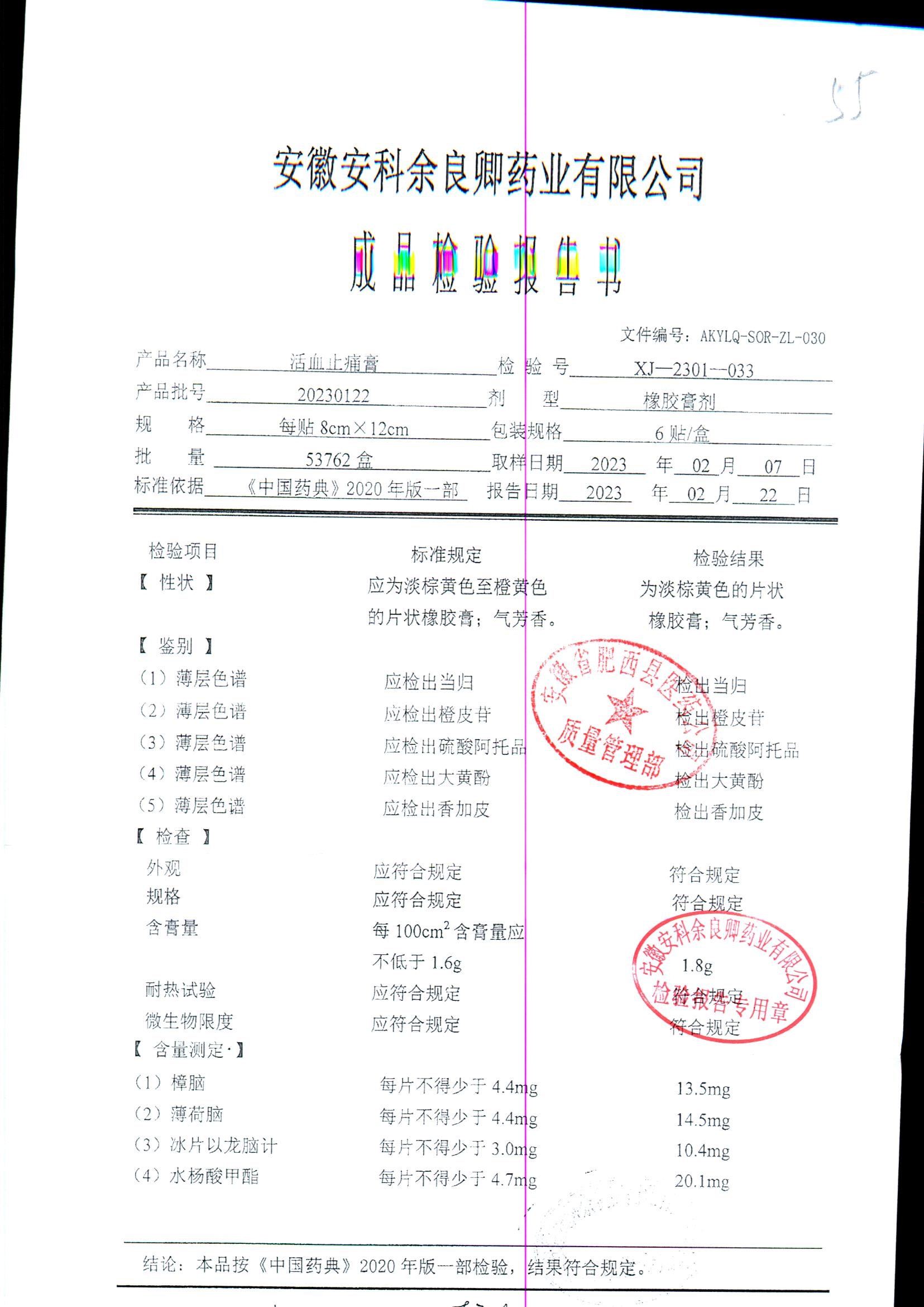 | 活血止痛膏 | 8cm*12cm*6貼 | 20230122 | 查看詳情 |