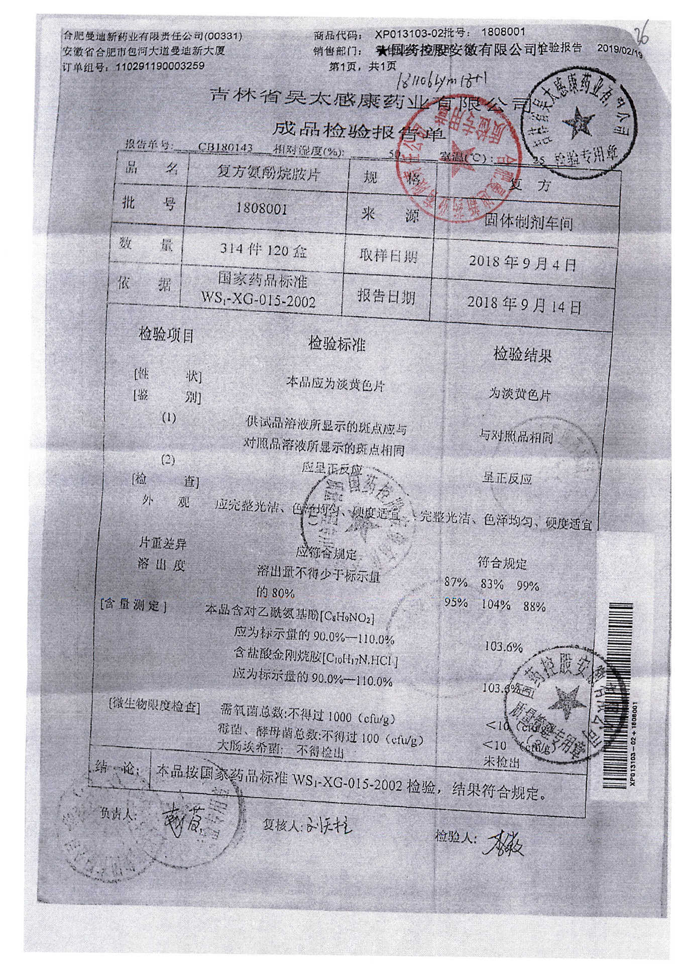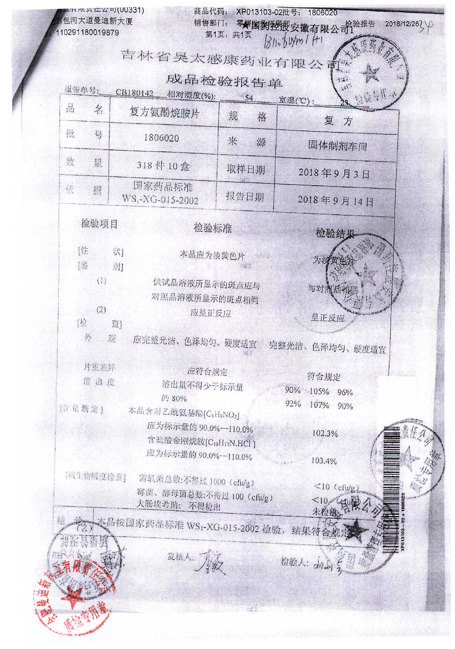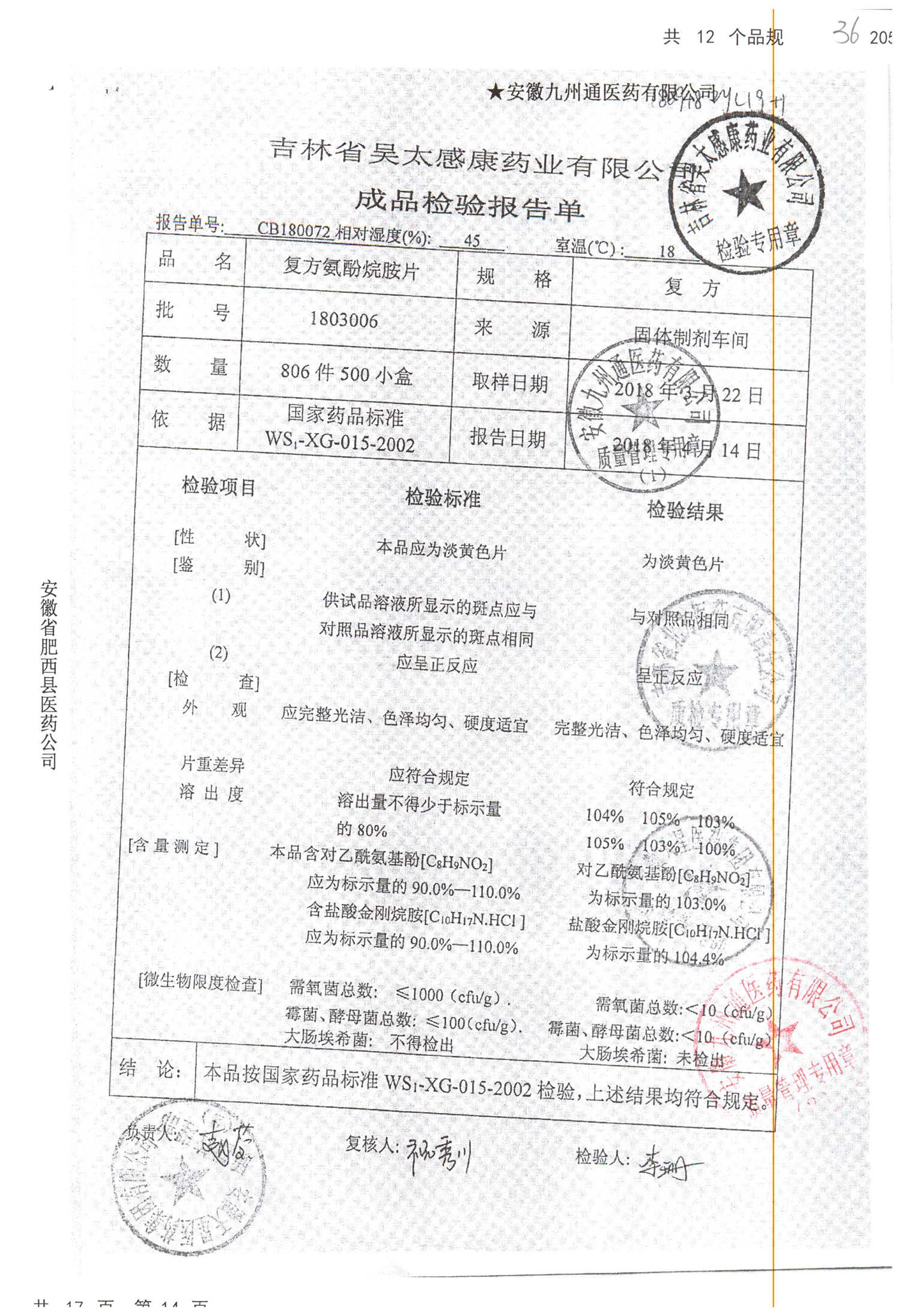 | 復(fù)方氨酚烷胺片 | 復(fù)方 | 1808001 | 查看詳情 |