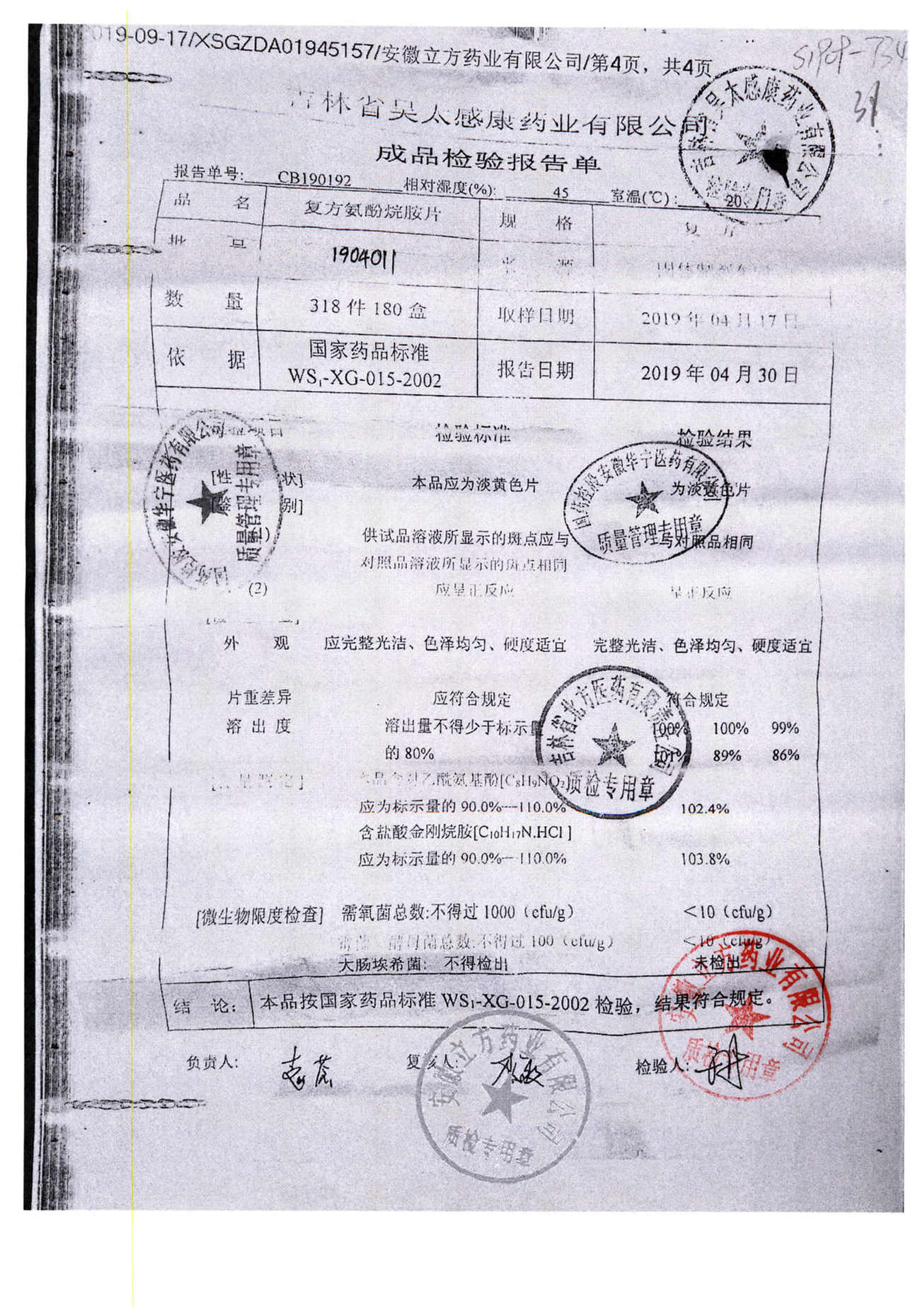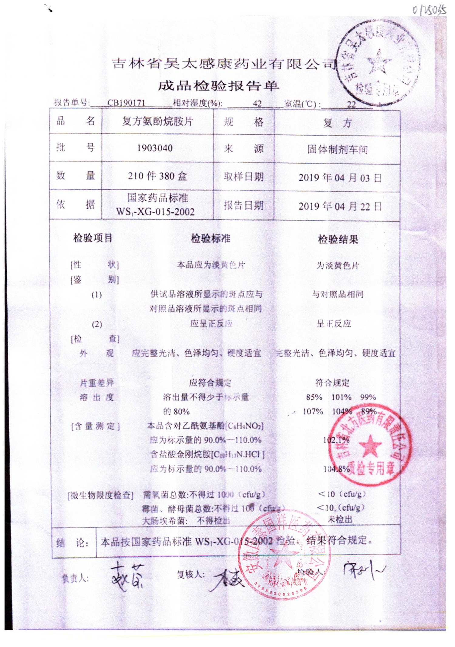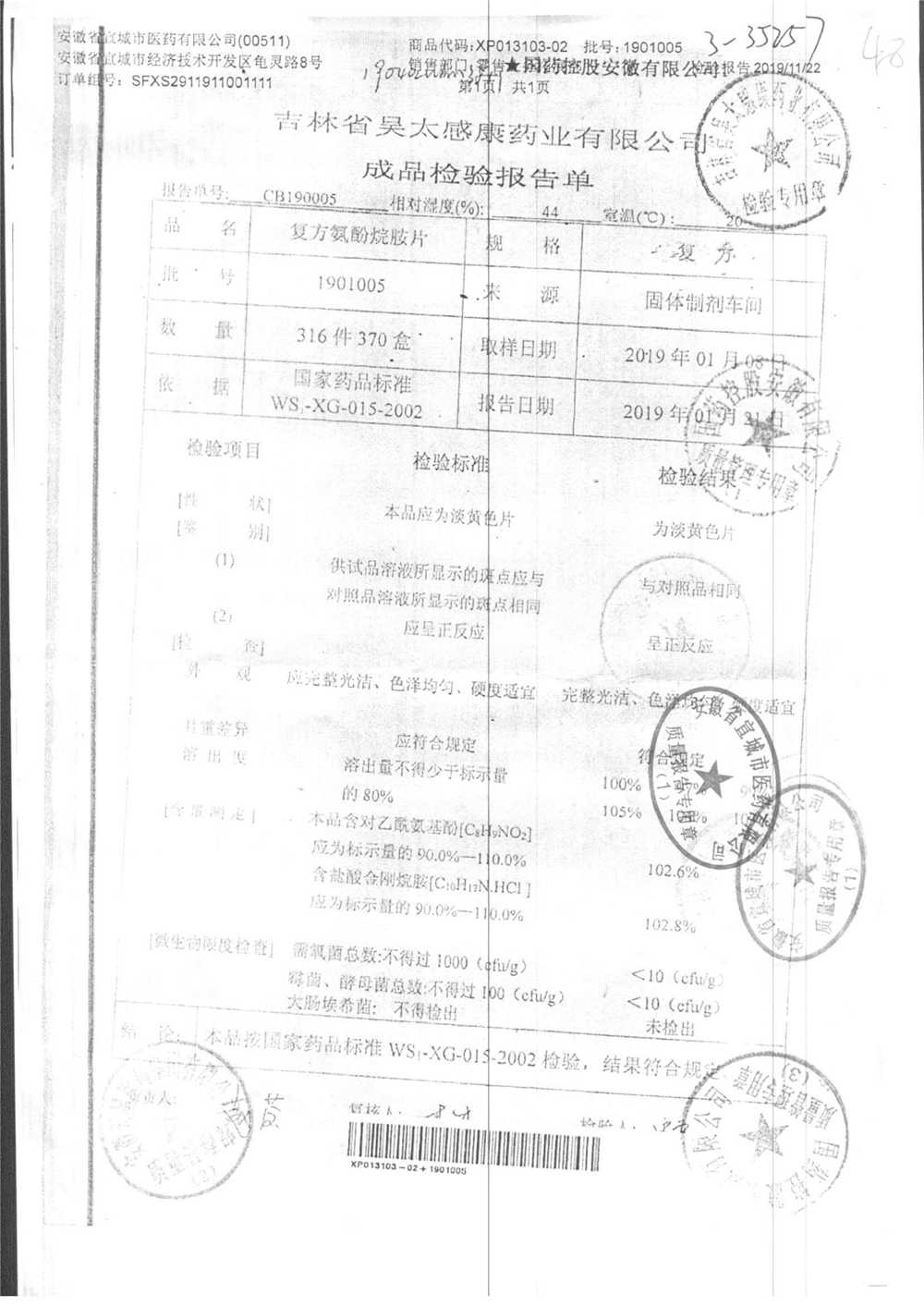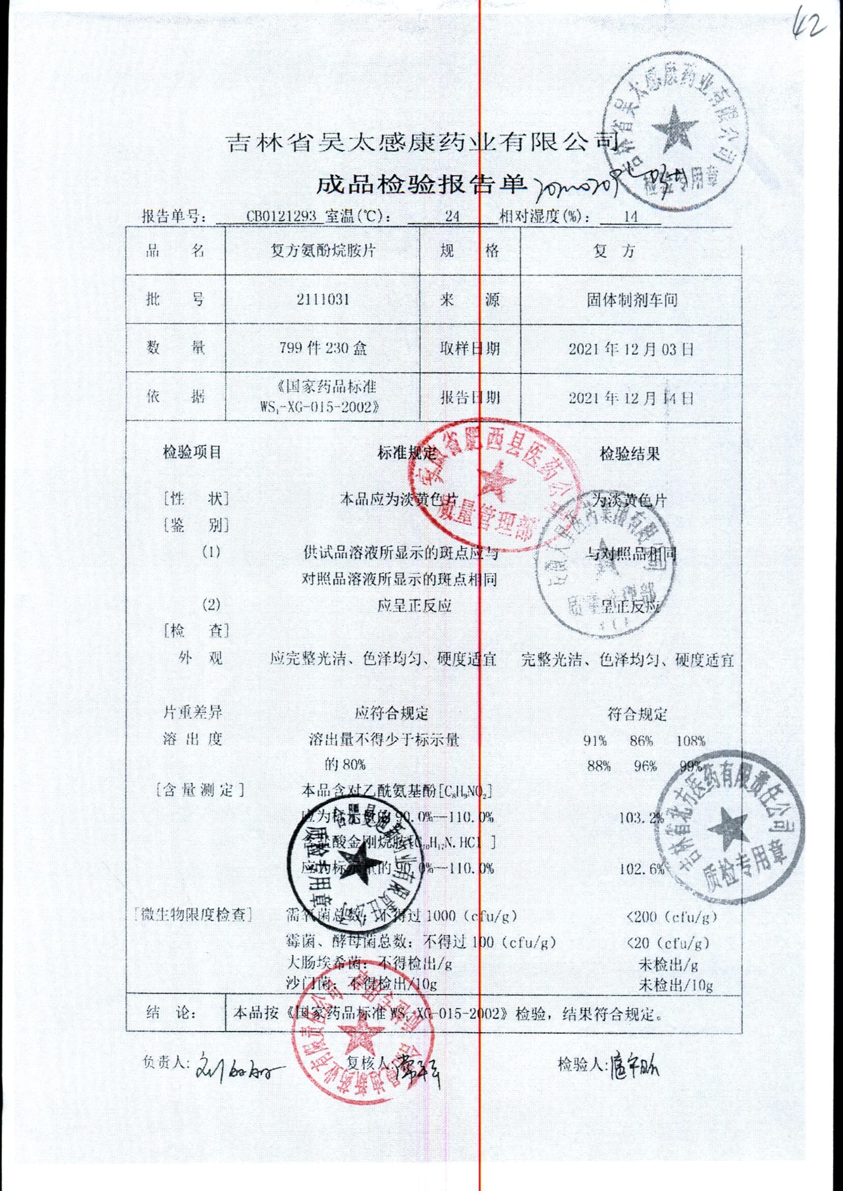 | 復(fù)方氨酚烷胺片 | 復(fù)方 | 1904011 | 查看詳情 |