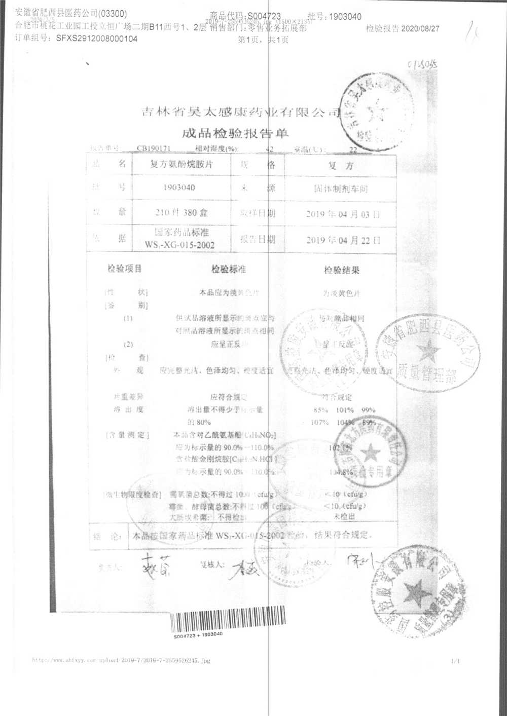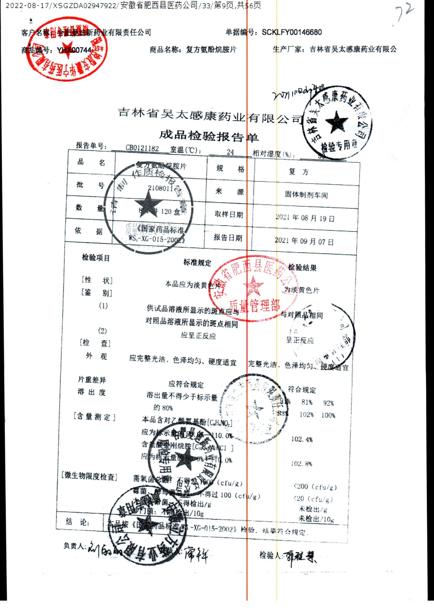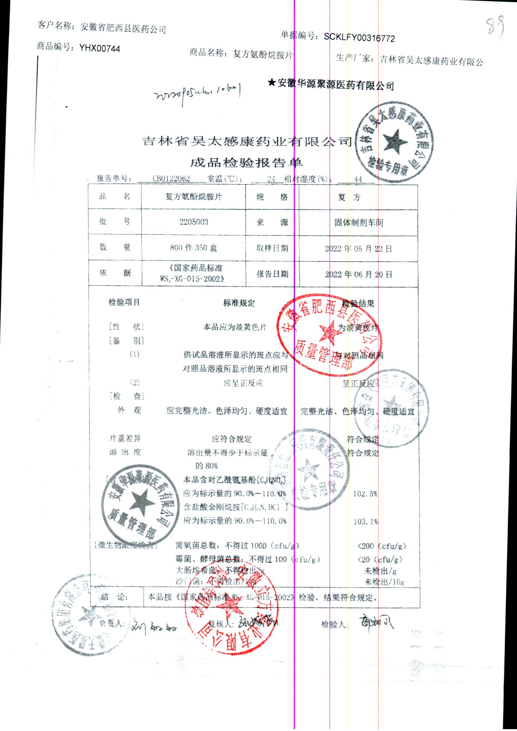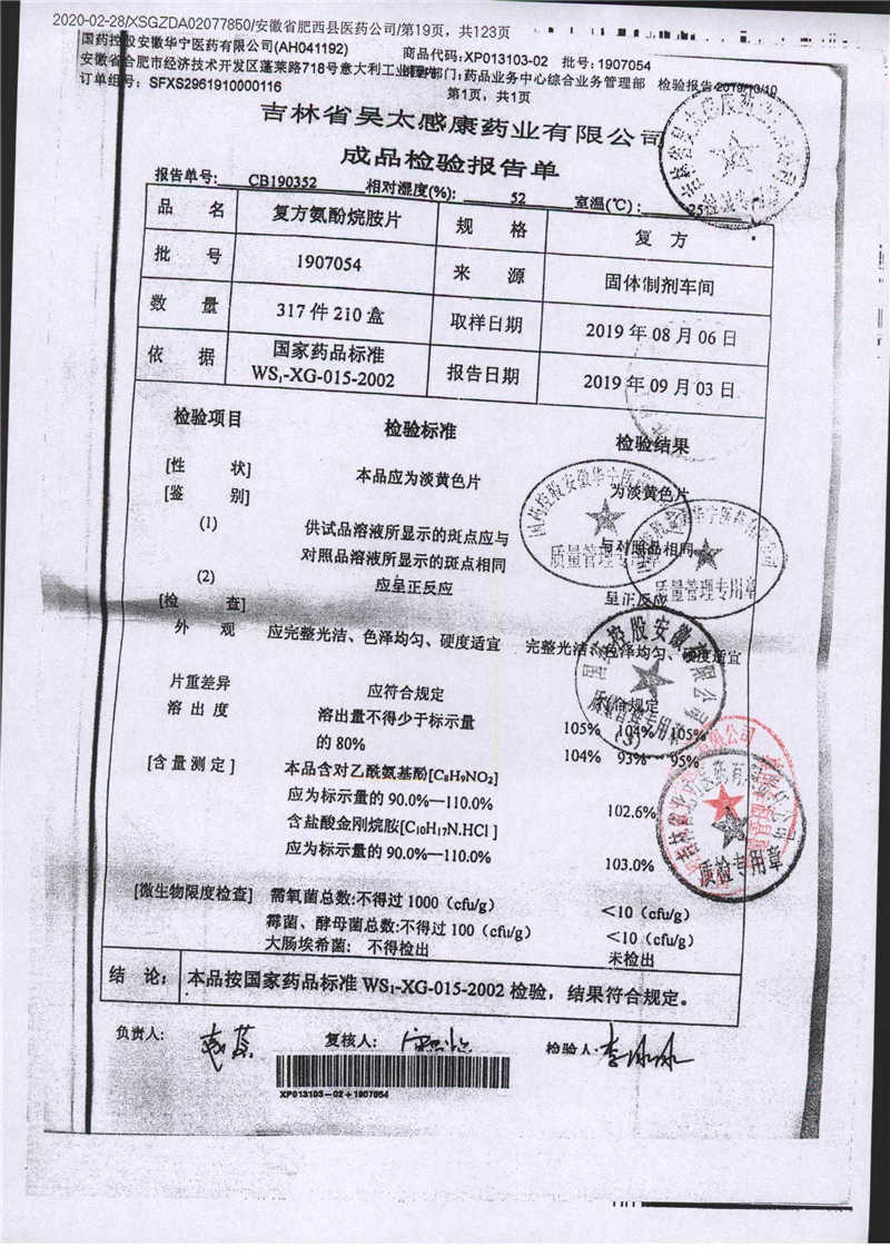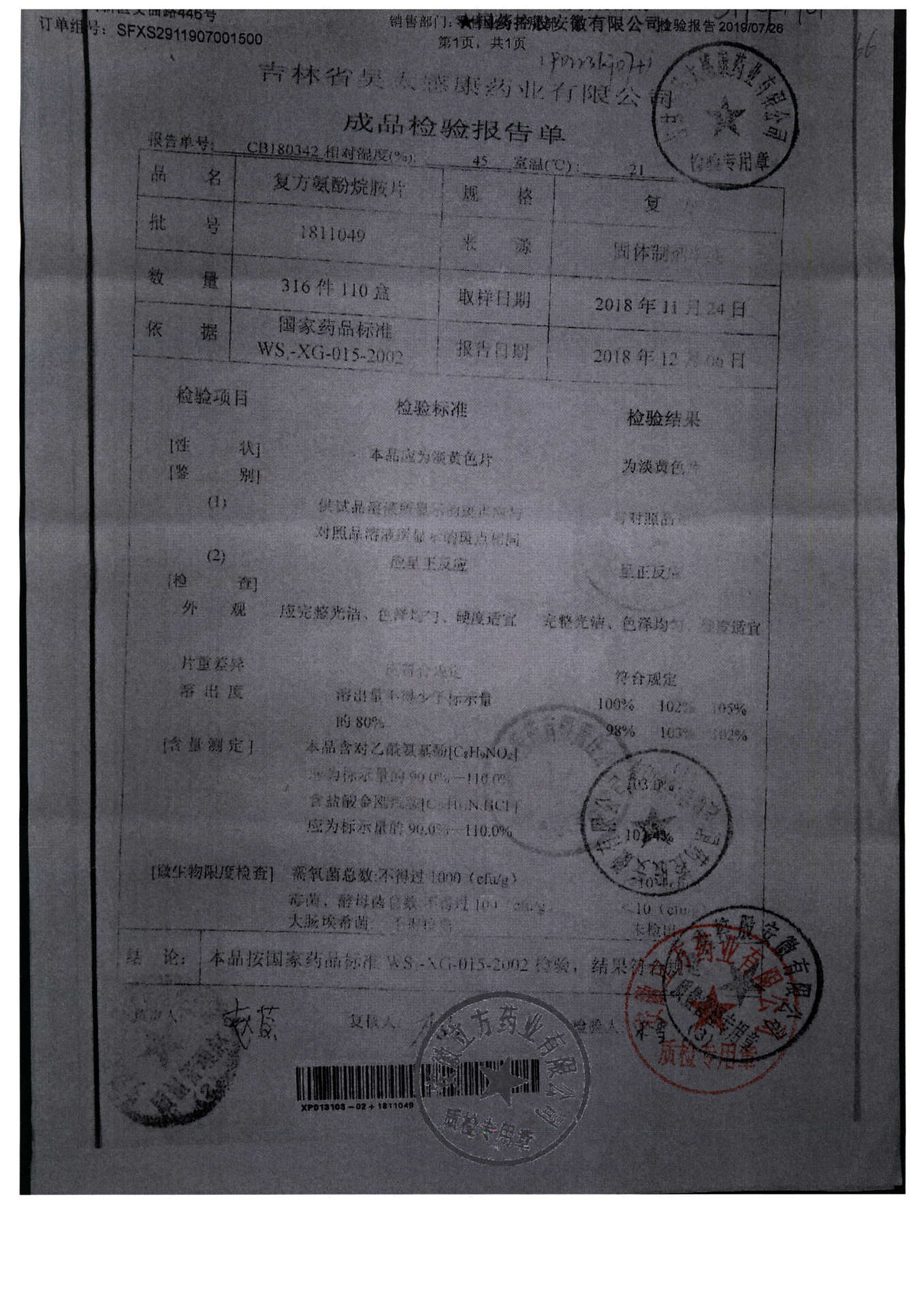 | 復(fù)方氨酚烷胺片 | 復(fù)方 | 1904011 | 查看詳情 |
