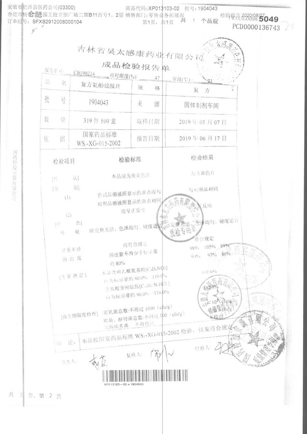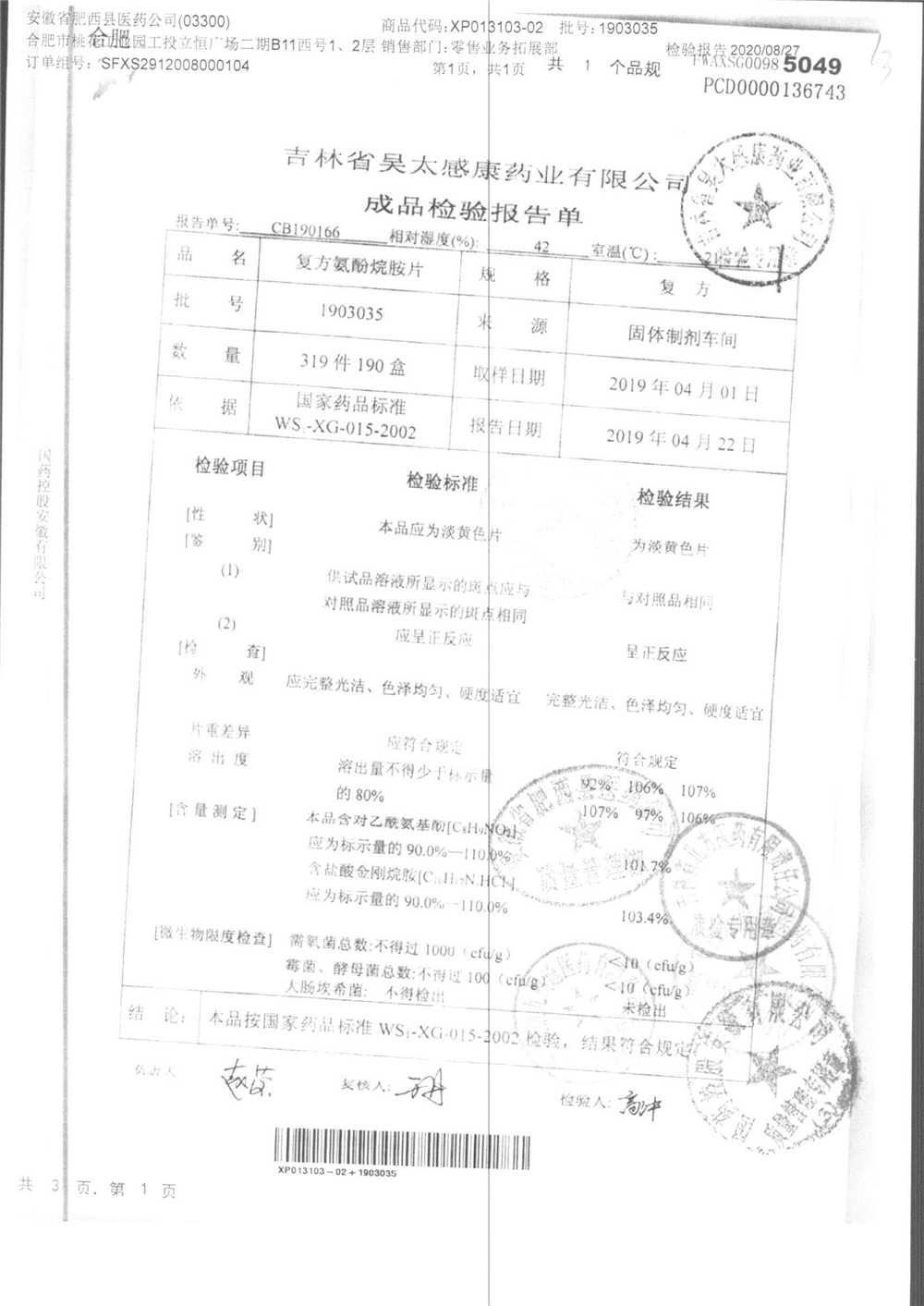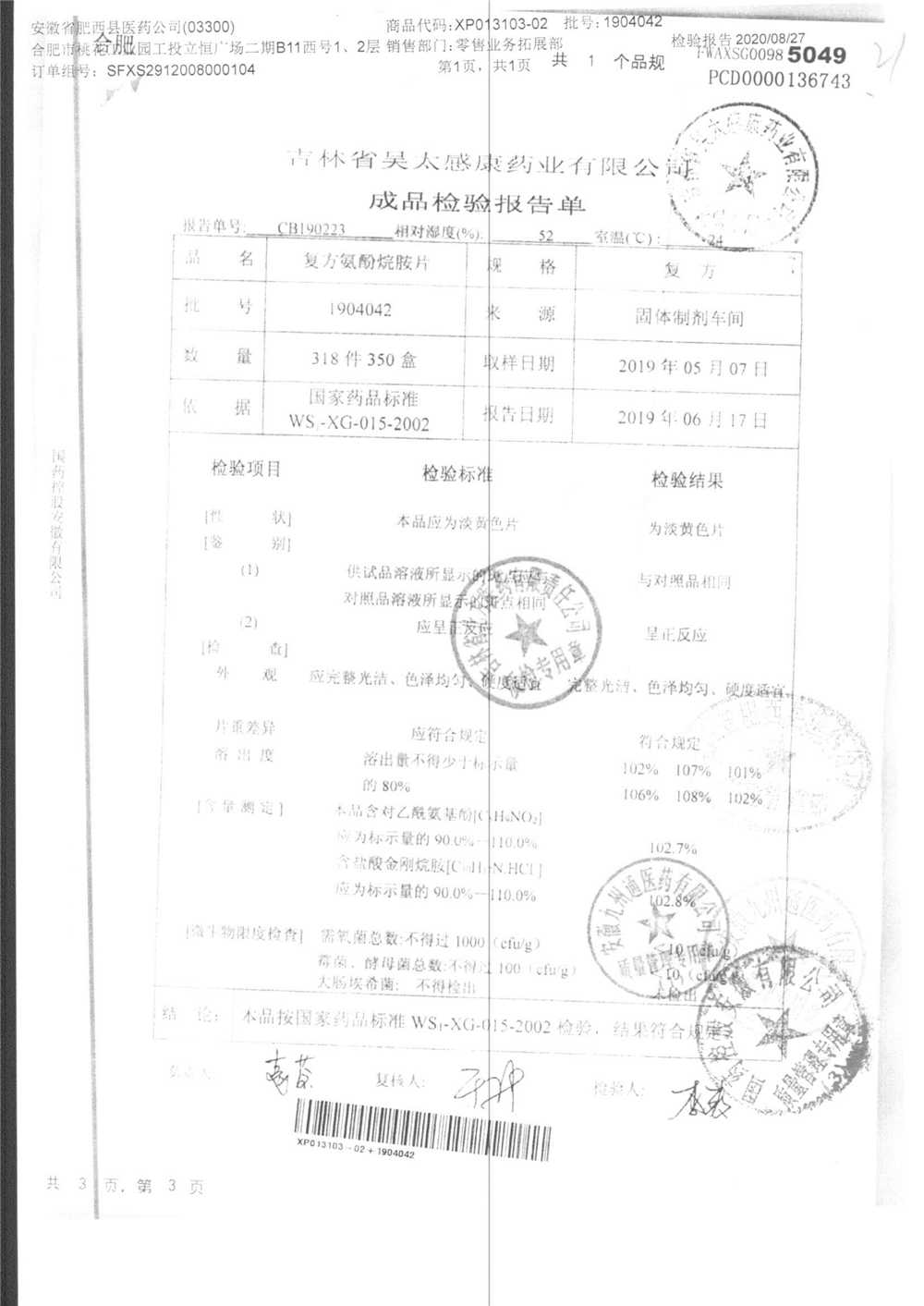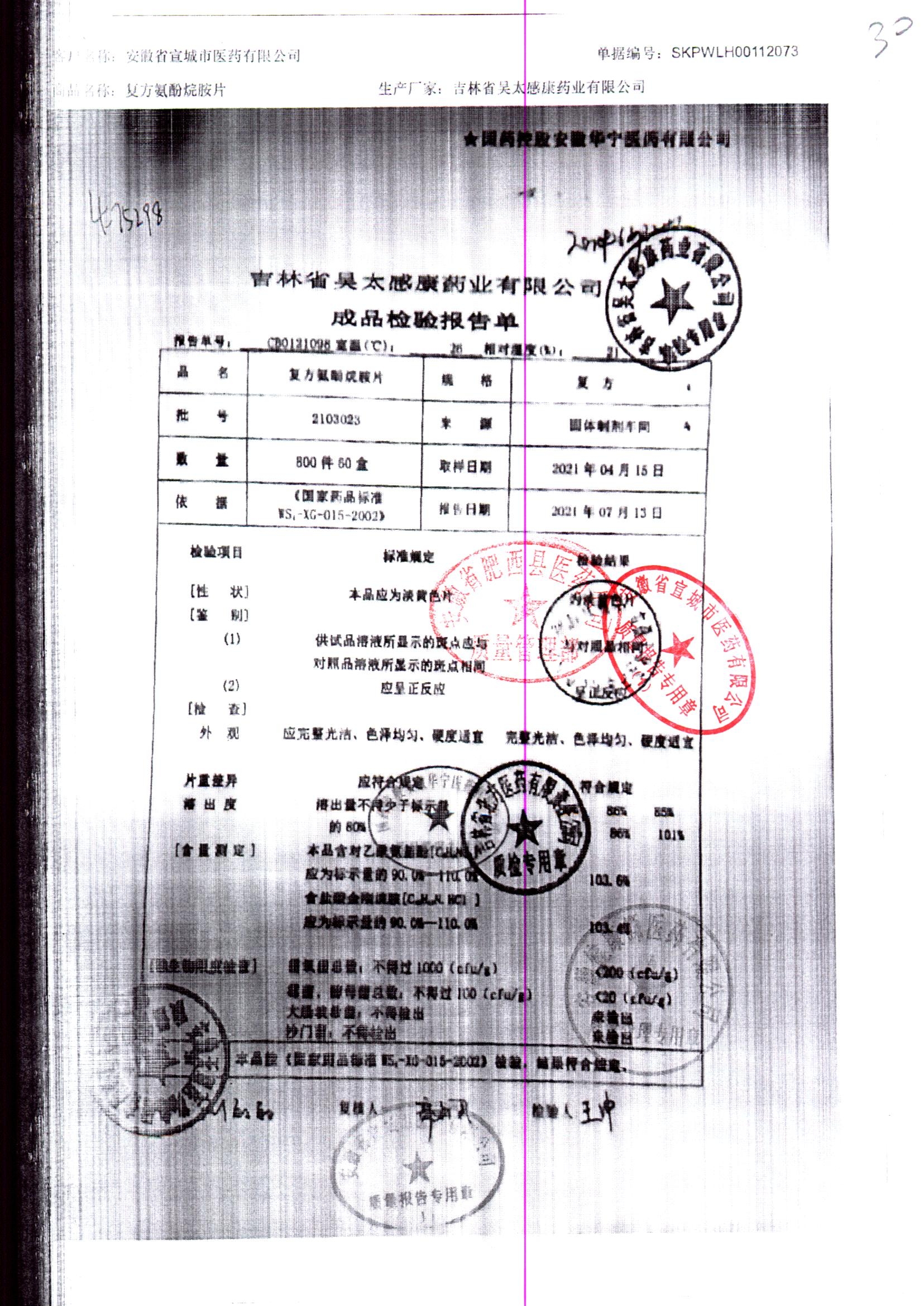 | 復(fù)方氨酚烷胺片 | 復(fù)方 | 1904011 | 查看詳情 |