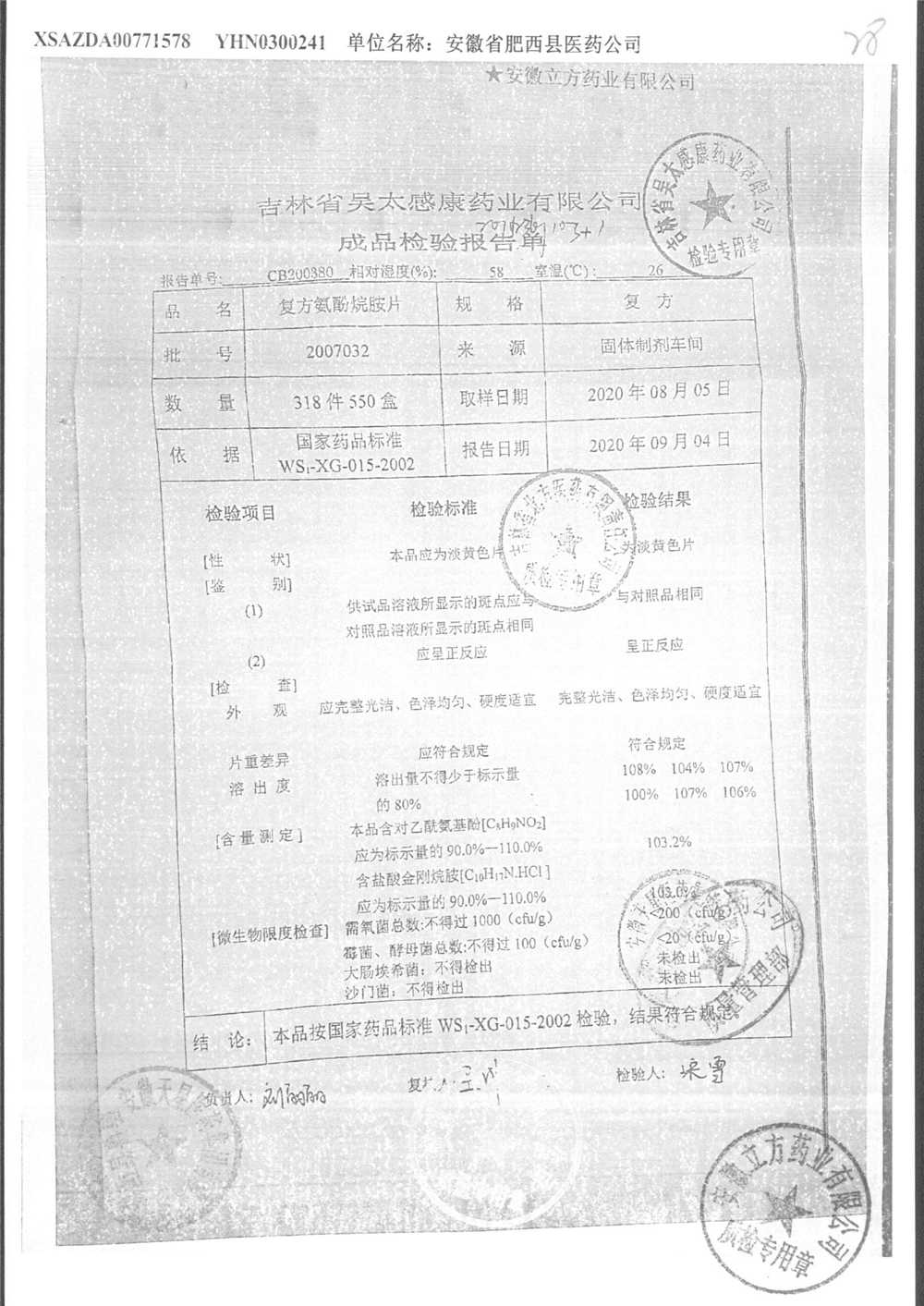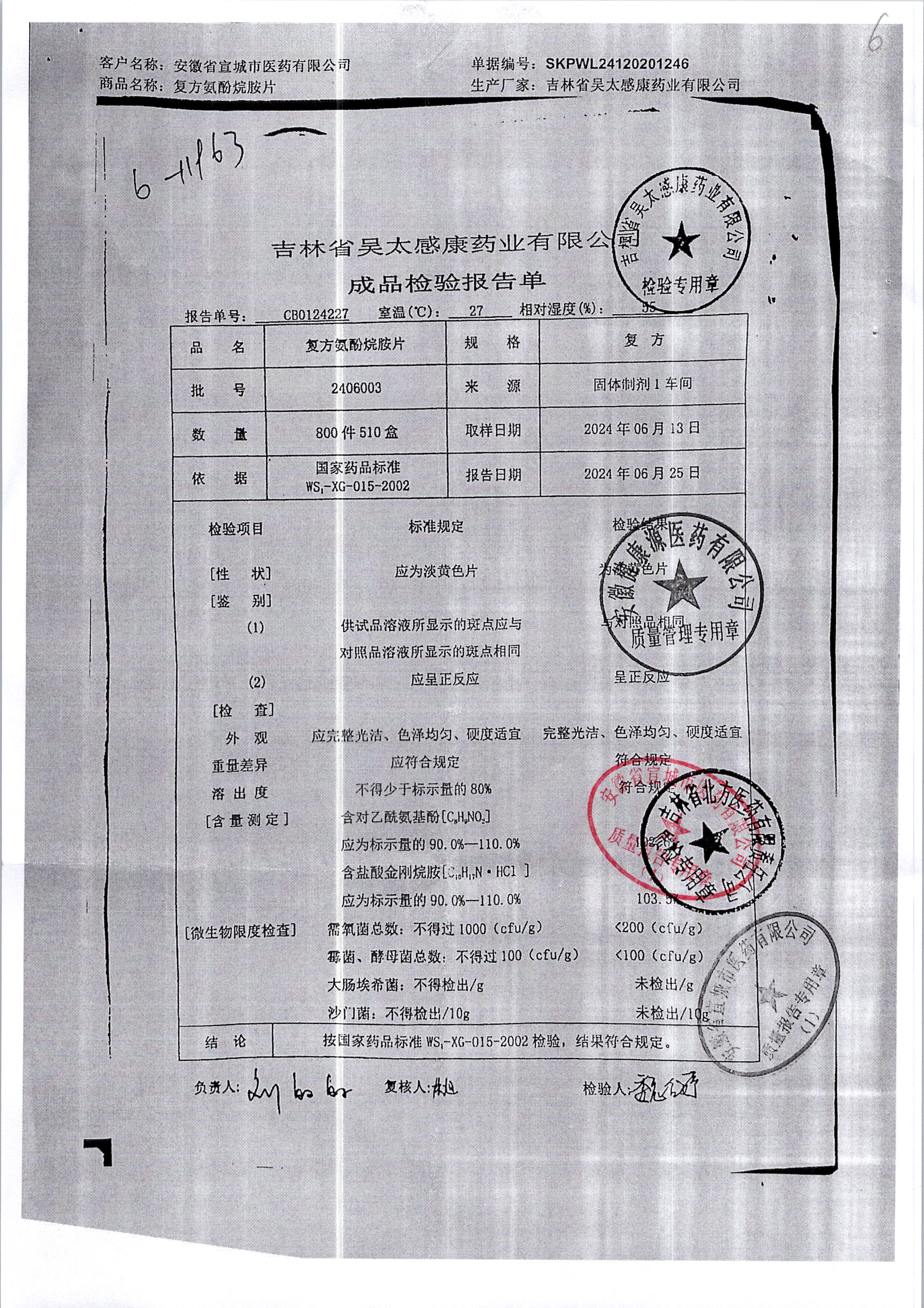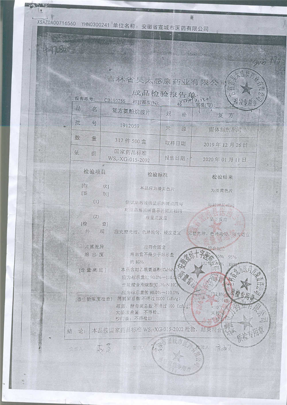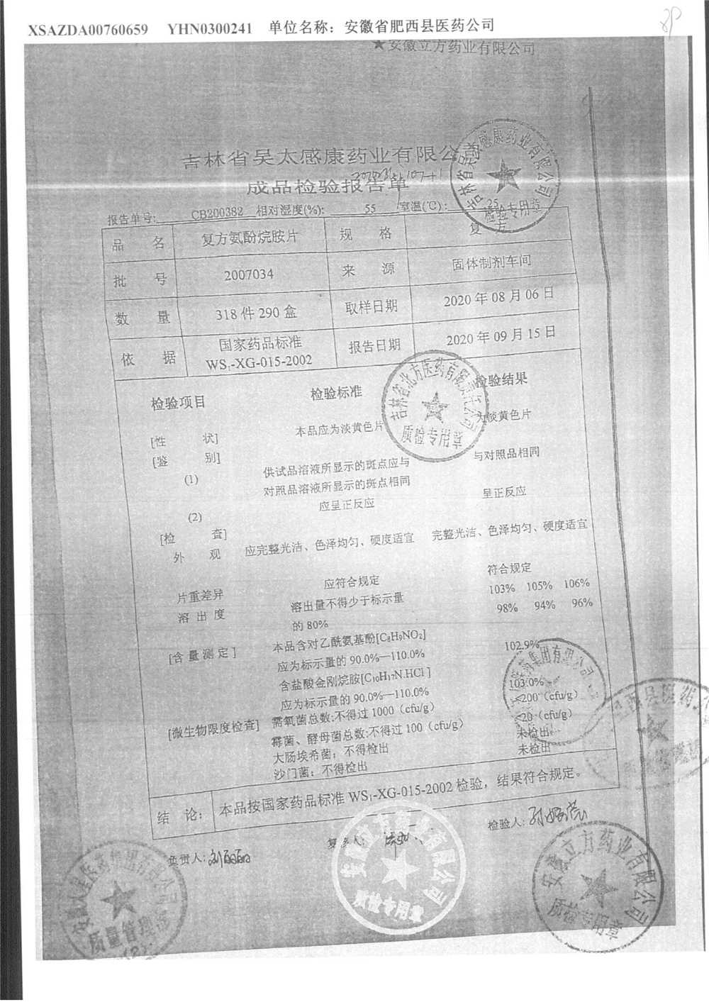 | 復(fù)方氨酚烷胺片 | 復(fù)方 | 2001026 | 查看詳情 |