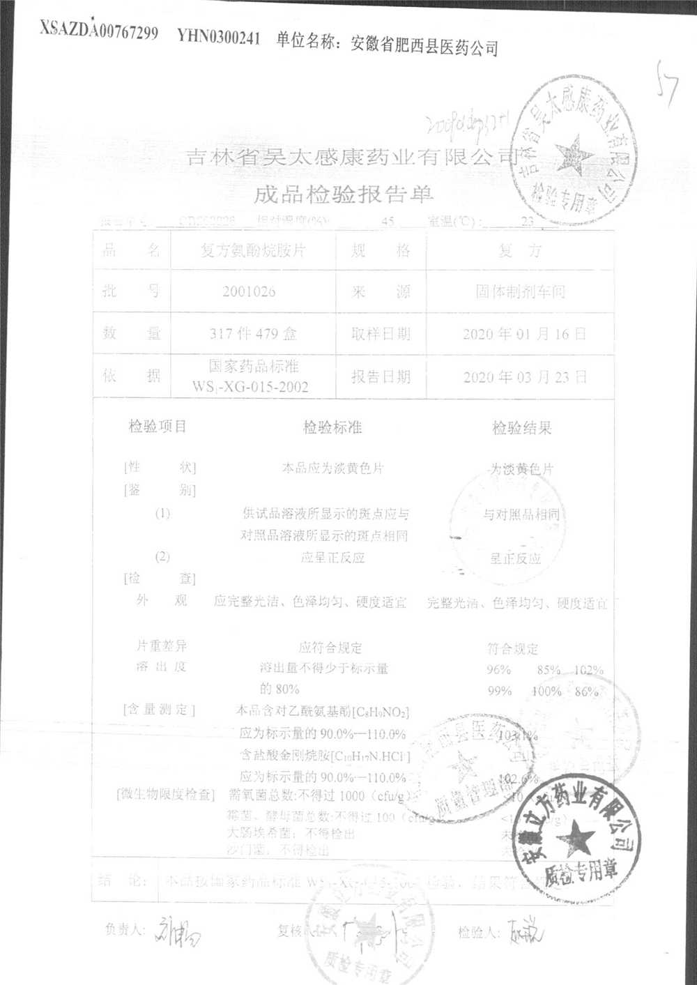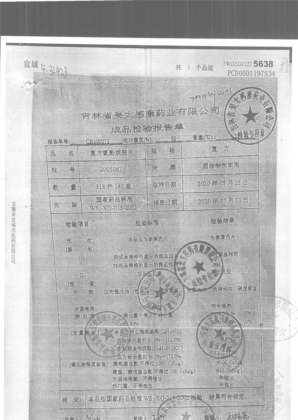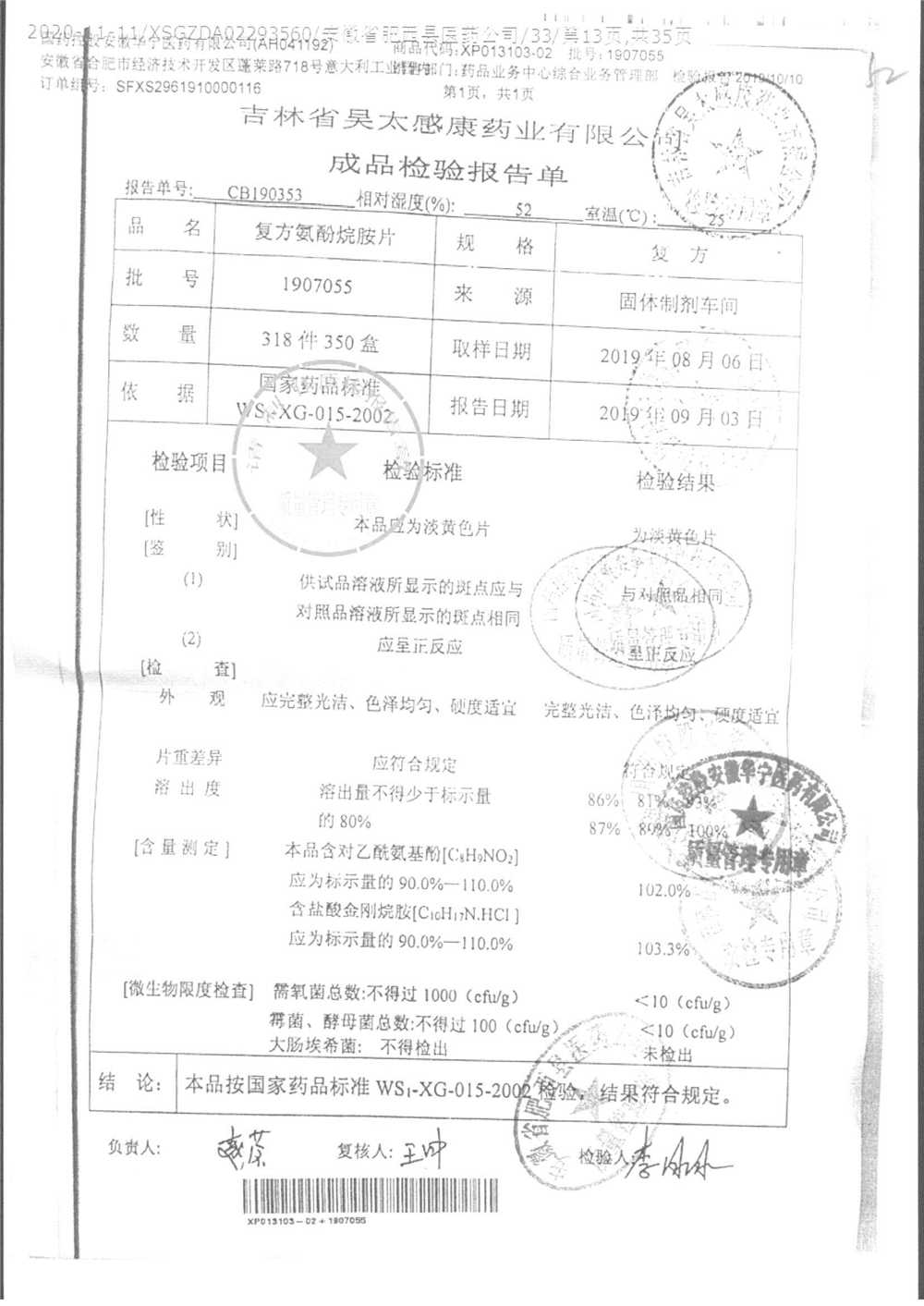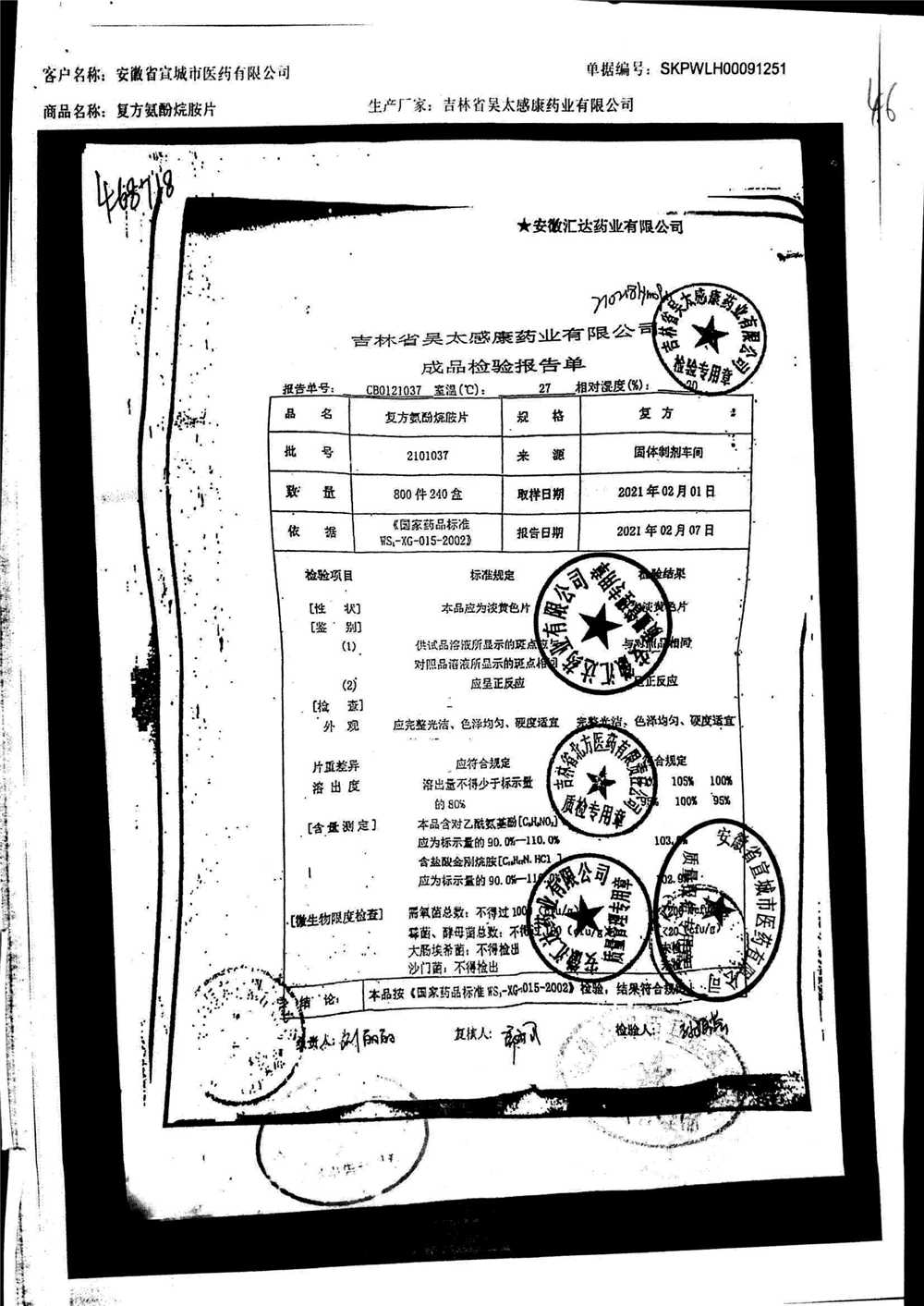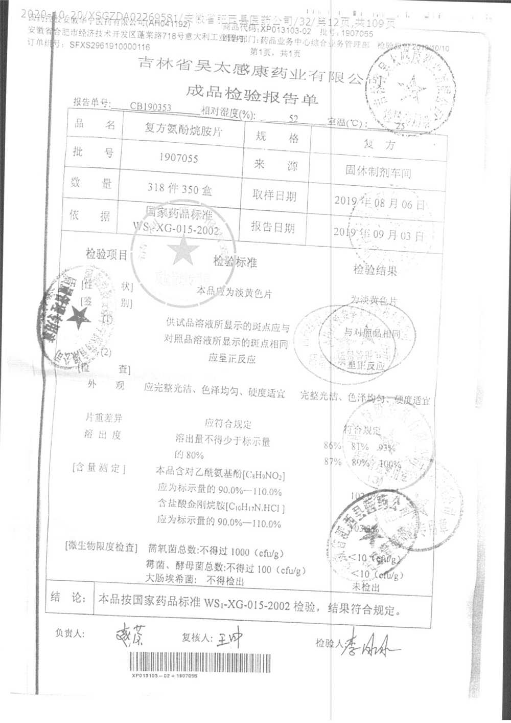 | 復(fù)方氨酚烷胺片 | 復(fù)方 | 2001026 | 查看詳情 |